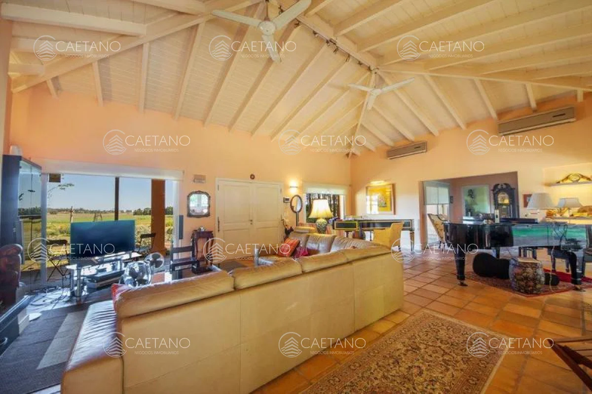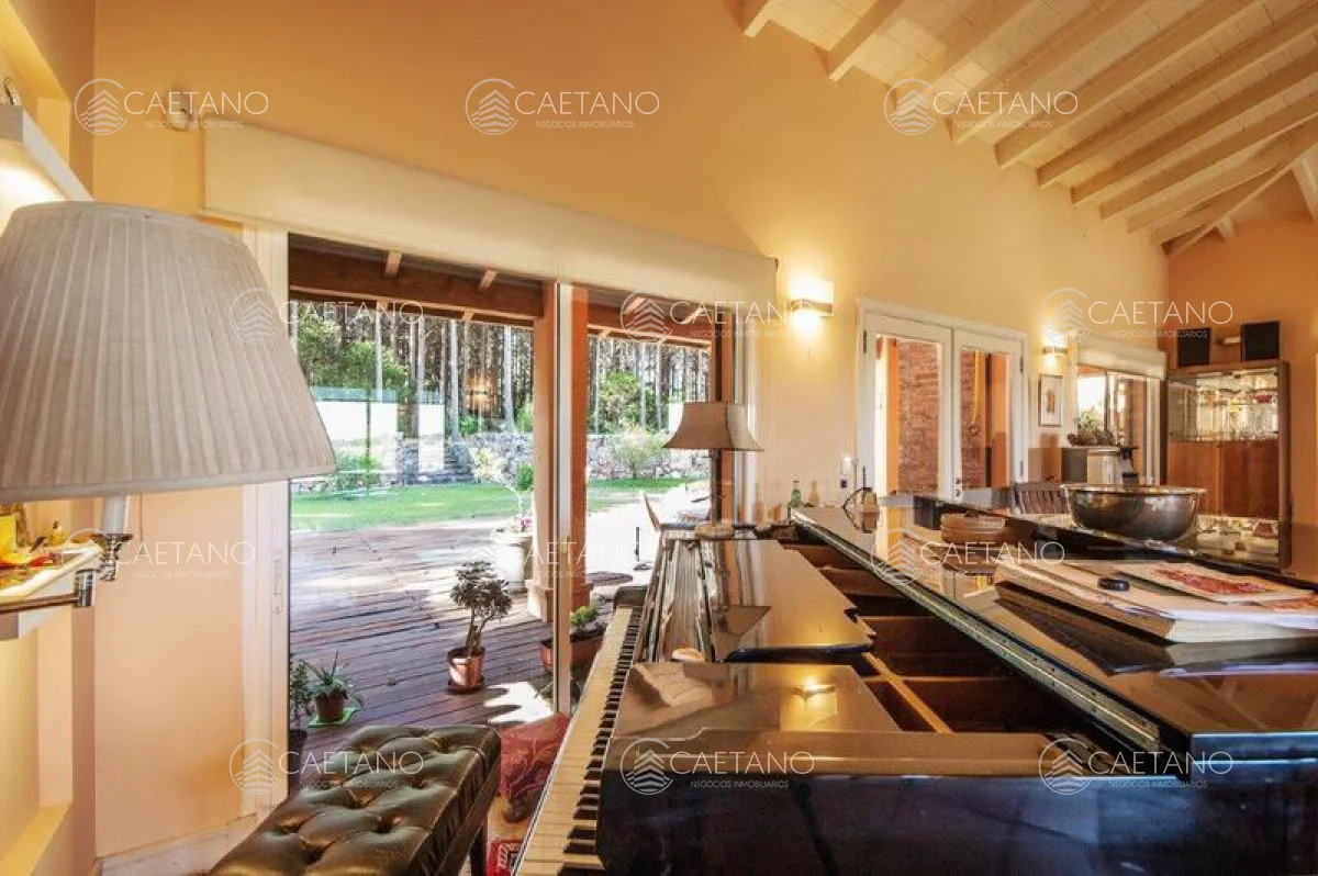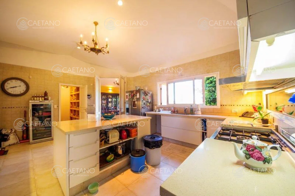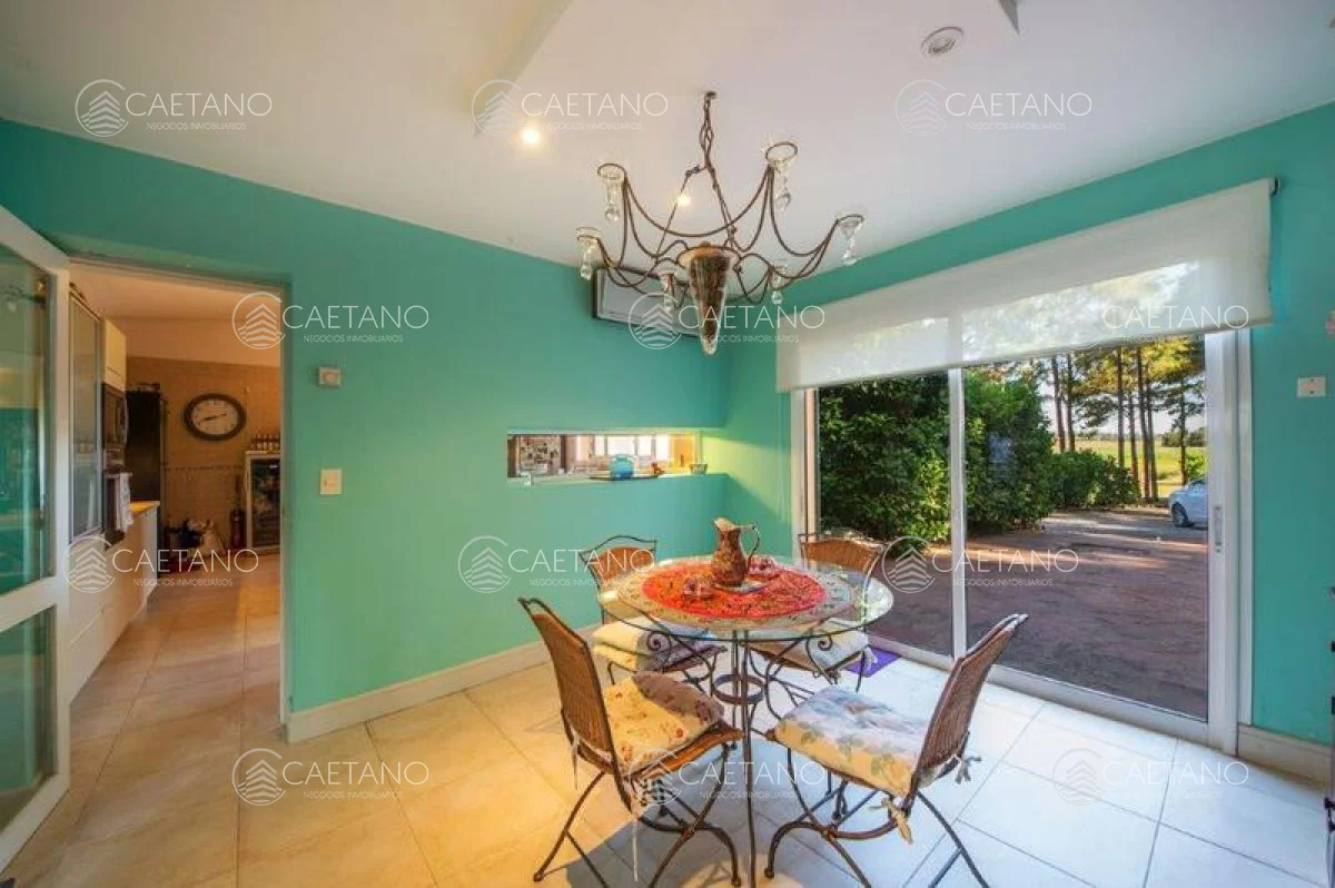 La casa principal tiene 4 dormitorios en suite, gran living, comendor, toilette, cocina, comedor diario, alacena y servicio.