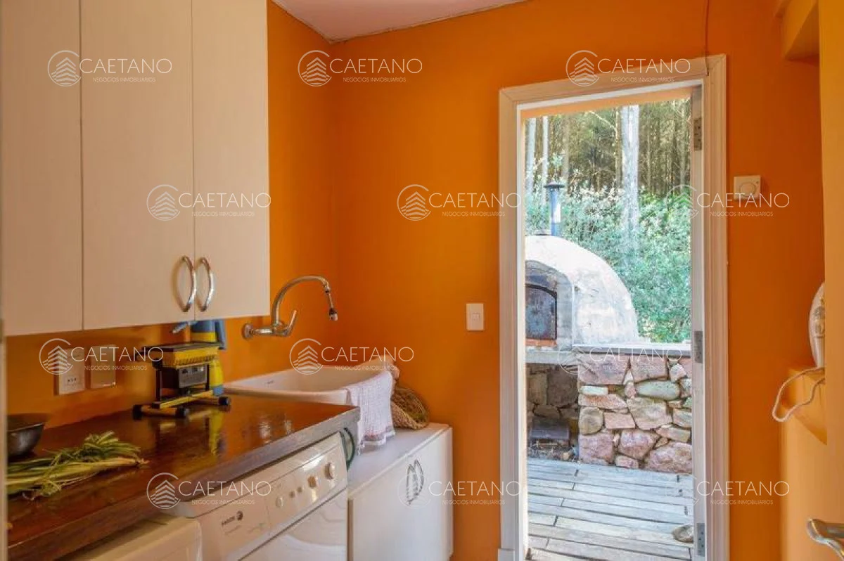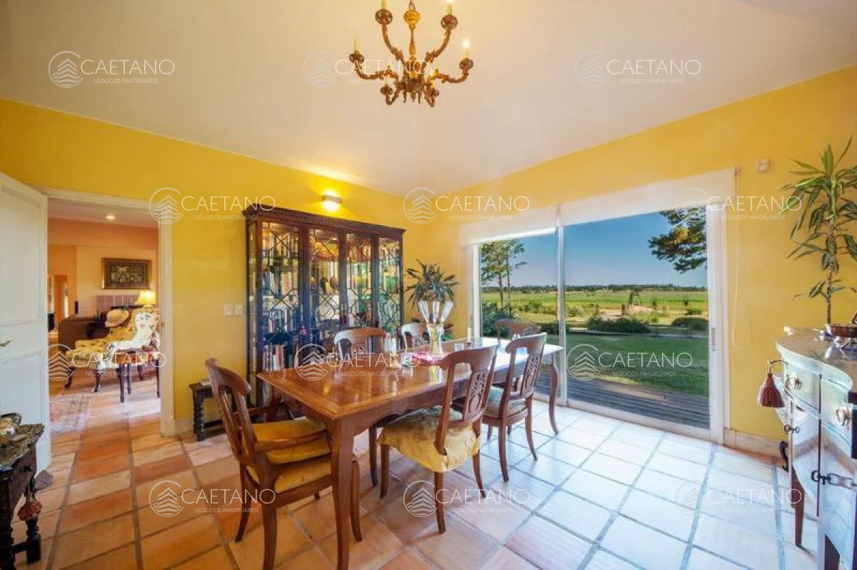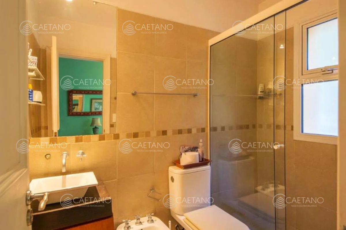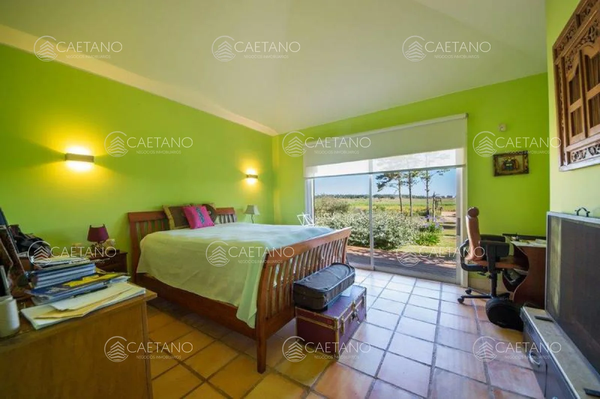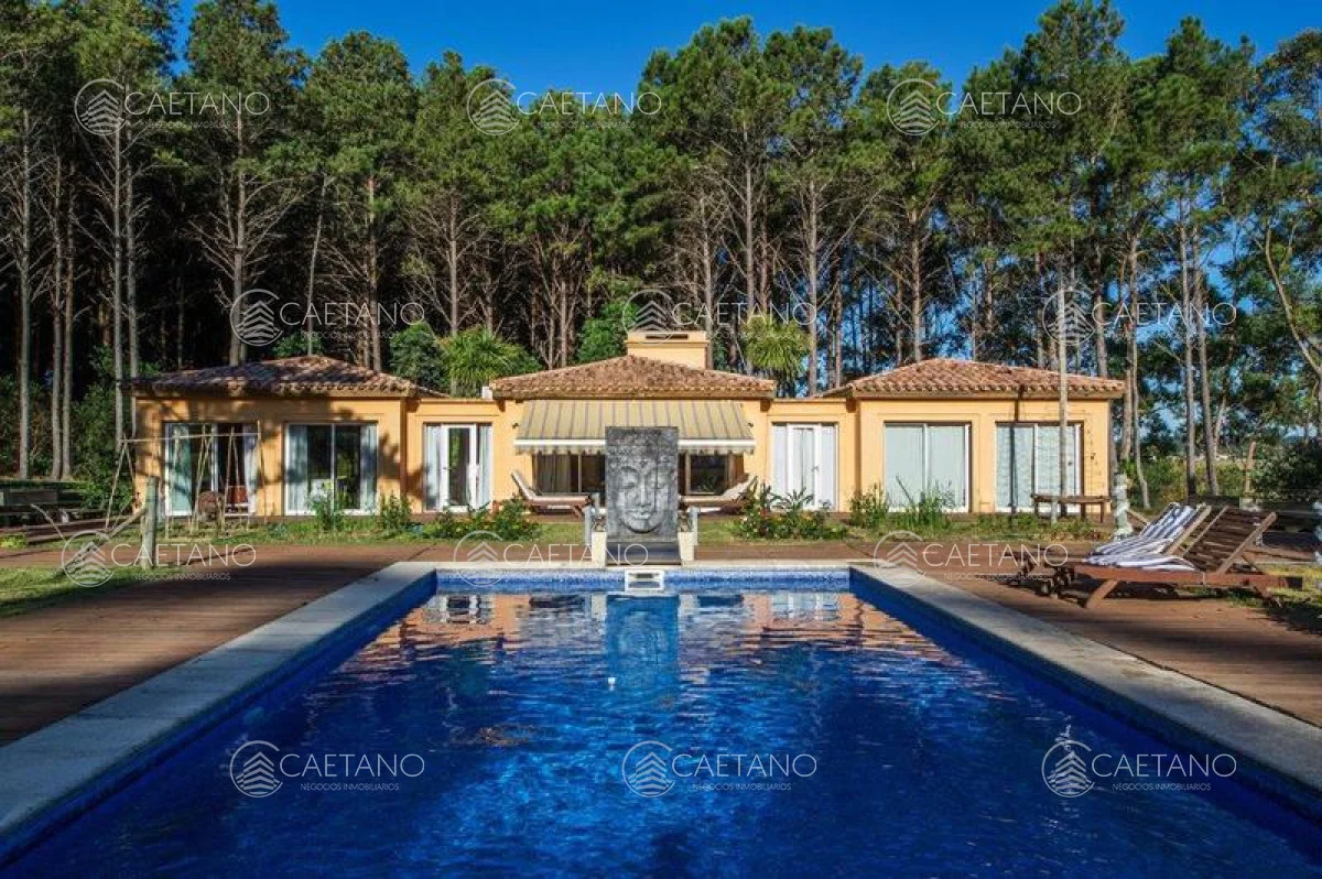 La casa principal tiene 4 dormitorios en suite, gran living, comendor, toilette, cocina, comedor diario, alacena y servicio.