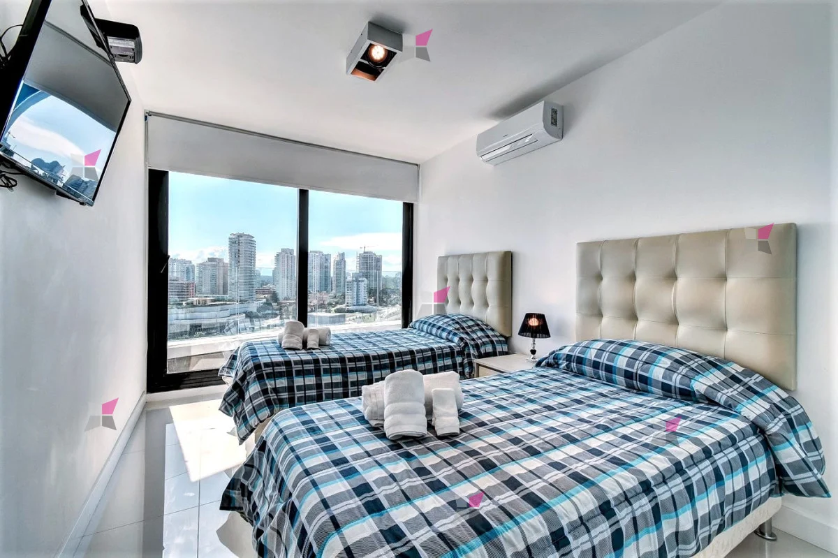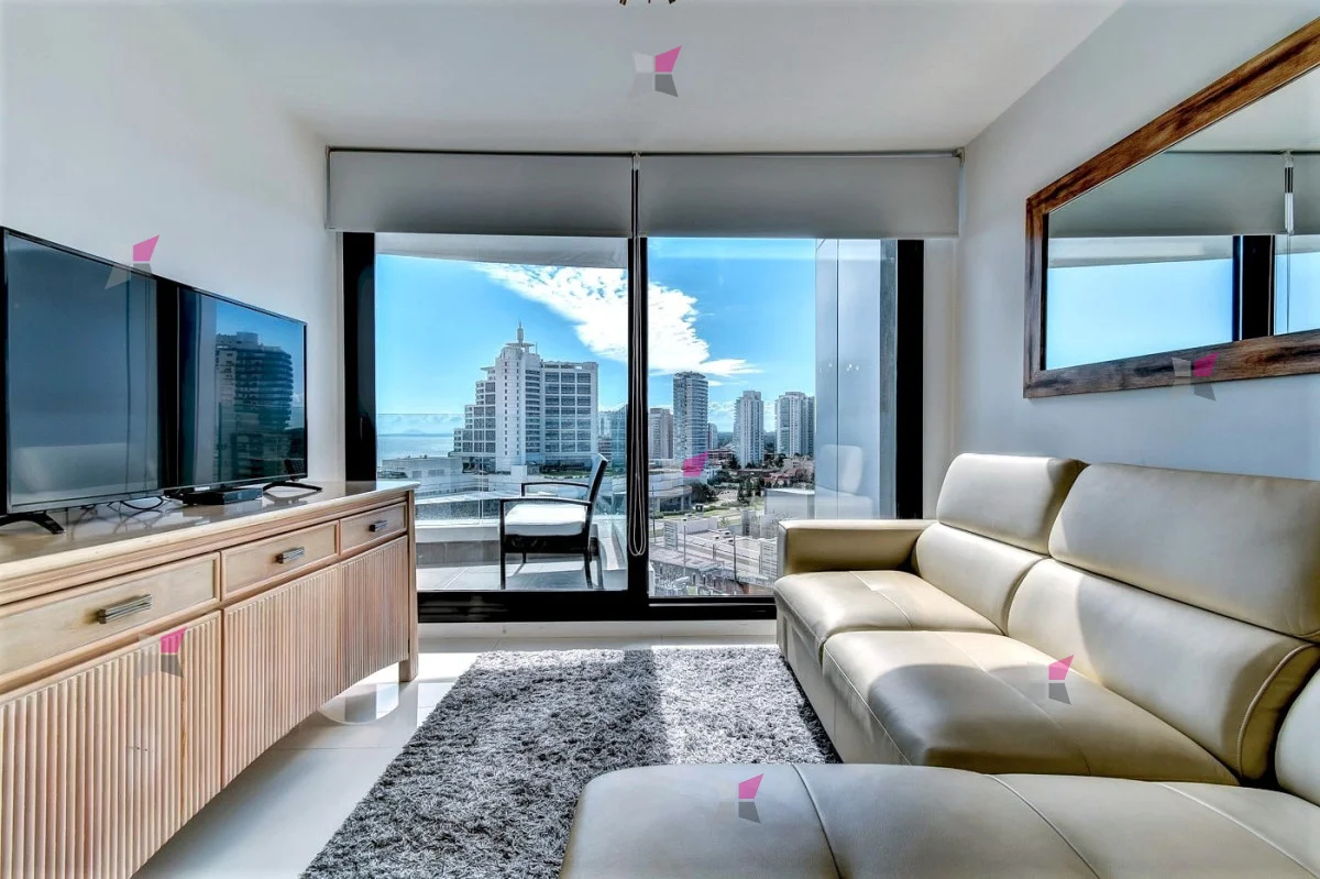 Departamento de dos dormitorios en torre con la vista a la salvaje playa brava y a la misma vez a la tranquilidad de la mansa con los atardeceres más lindos de Punta del Este.