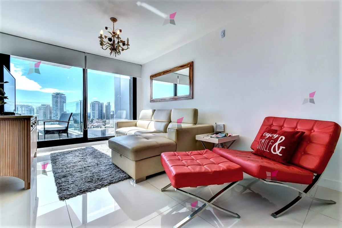 Cuenta con un living comedor amplio y luminoso con muy buen amueblamiento moderno, con salida a la terraza para disfrutar de una muy buena puesta al sol.