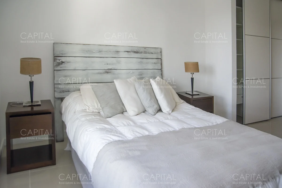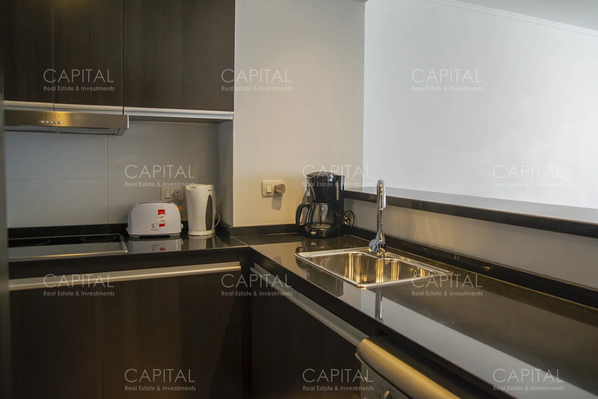 Living-comedor con cocina americana completamente equipada: Anafe, Microondas, Lavarropas, Heladera Con Freezer, Licuadora, Tostadora, Exprimidora, Cafetera, T.V., Placard en dormitorios, Campana, Horno, Placard en cocina, entre otros.