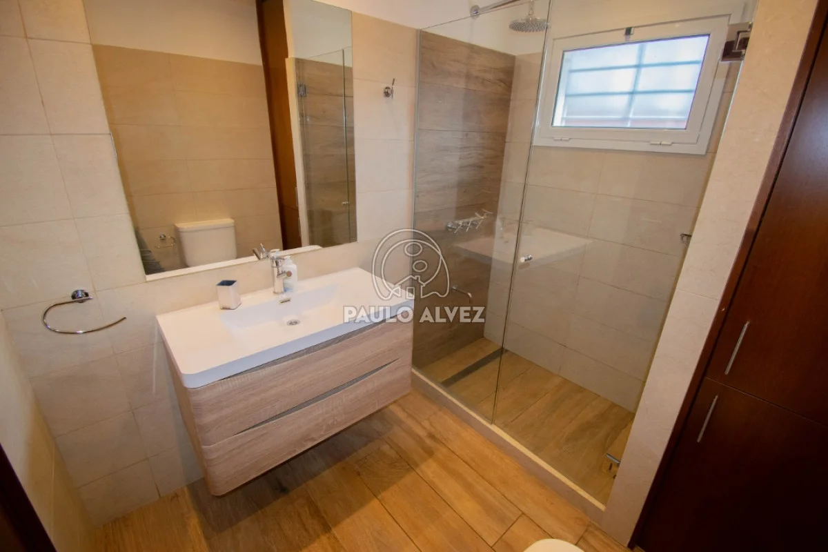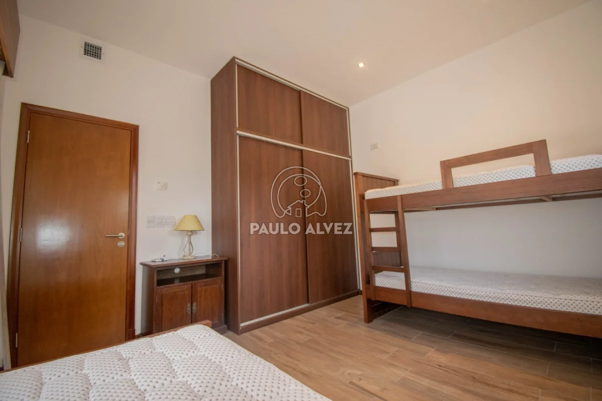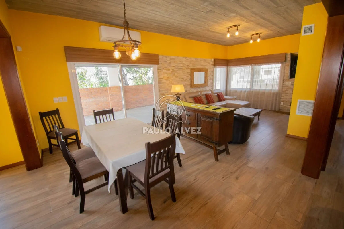 Excelente propiedad, ubicada en Playa Grande a tan solo 100 metros del mar. Emplaza sobre terreno de 552m², 180m² edificados. Construcción tradicional, doble pared de ladrillo, ticholo en interior. Aberturas en maderas, aluminio y pisos de porcelanato más losa radiante. Planta baja Living-Comedor con estufa de alto rendimiento, cocina semi-definida con barra desayunador, muebles bajo y sobre mesada en madera. Pasillo distribuidor hacia primer dormitorio y baño completo. Barbacoa cerrada con parrillero y baño social. En planta alta, dos dormitorios más baño completo. El principal con balcón. Acceso a amplia terraza con vista al mar y al cerro San Antonio. Consulte por más información.