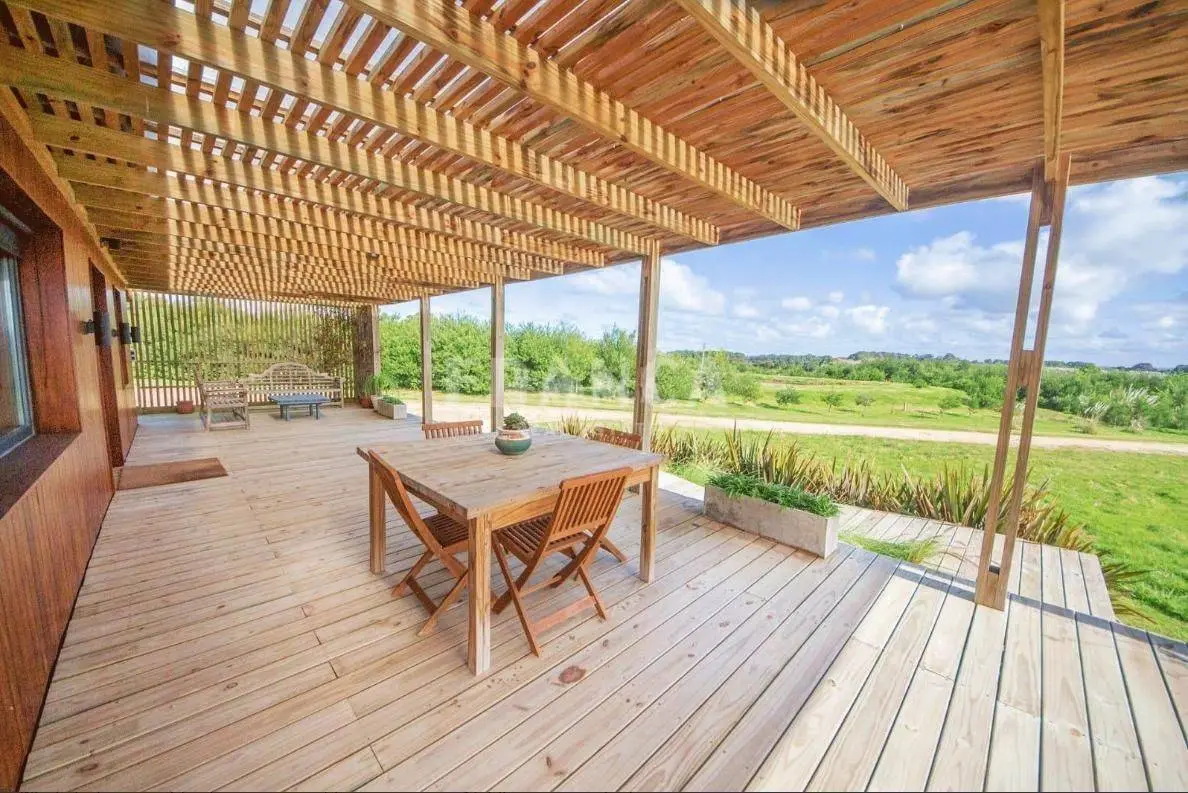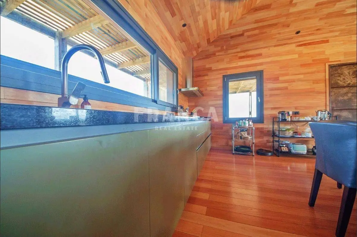 La casa principal tiene 150 m2 y 90 m2 de galeria con vistas muy lindas desde todos los rincones. Cuenta con un amplio living comedor y una cocina muy completa, además de un espacio cerrado de lavadero super práctico. El dormitorio es bien espacioso y cuenta con dos cómodos vestidores y dos baños. Todos los espacios poseen una luz natural muy linda.