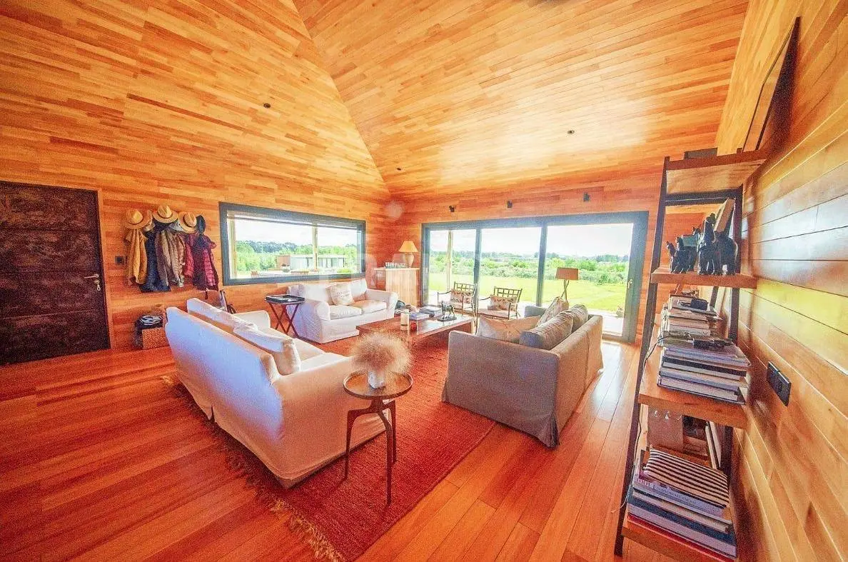 Casa revestida en lapacho ubicado en zona del golf y a minutos de la playa. Terreno de 6450 mts en zona muy tranquila.