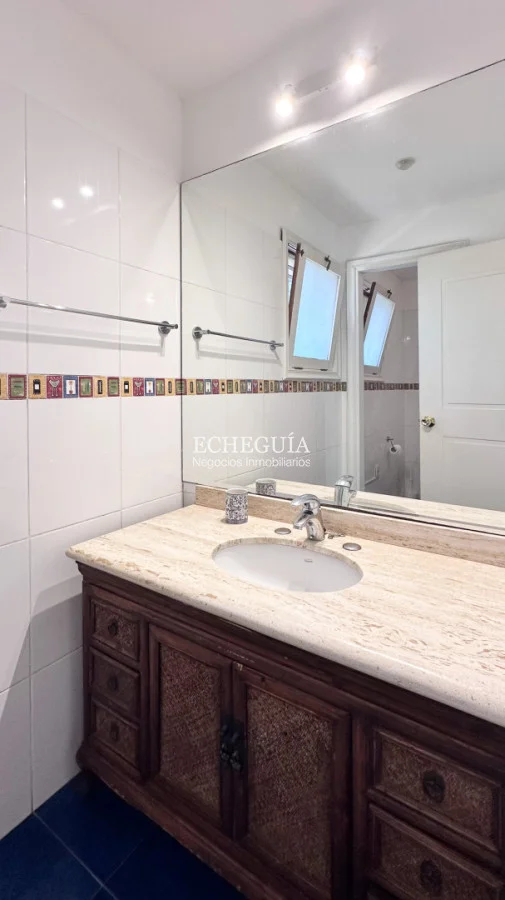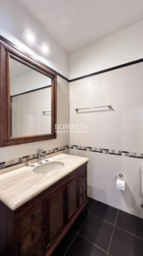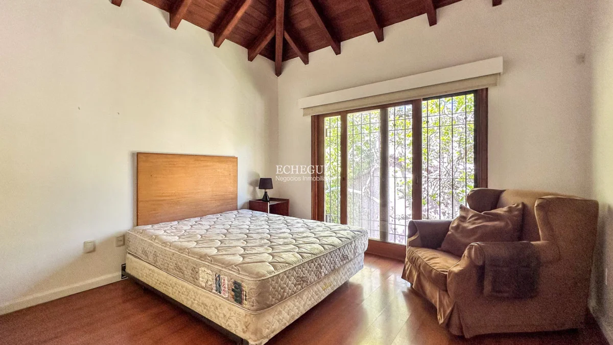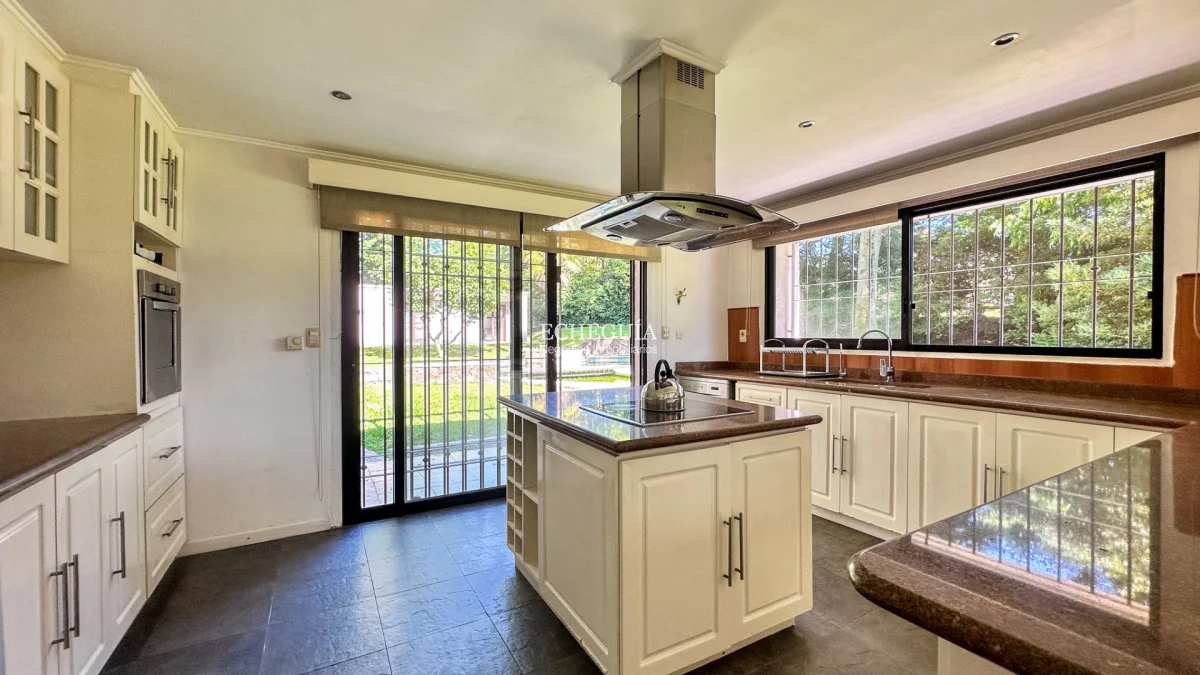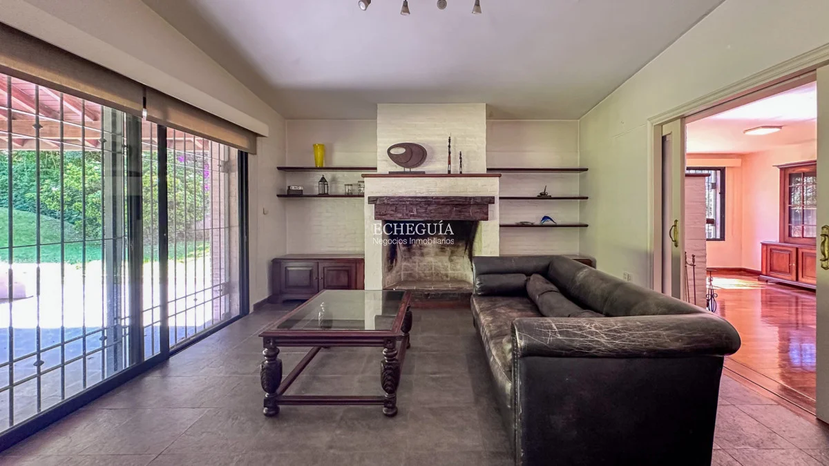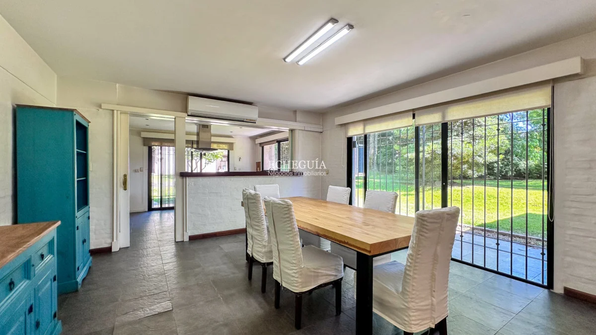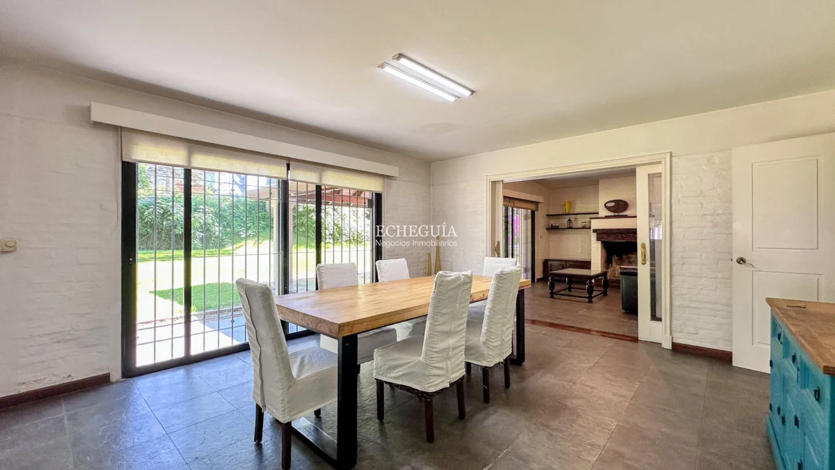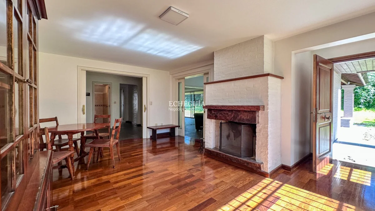 Construcción tradicional, de espacios amplios y luminosos, brindando comodidad en cada ambiente, se distribuye en hall de ingreso hacia área de estar con doble circulación y estufa a leña, conectando con área de living con segunda estufa a leña, aire acondicionado y salida a jardín, comedor definido y cocina amplia, completa y con barra. Gran suite y baño completo adicional en planta baja, amplia área de distribución y garage para 2 vehículos grandes. Losa radiante en todos los ambientes.