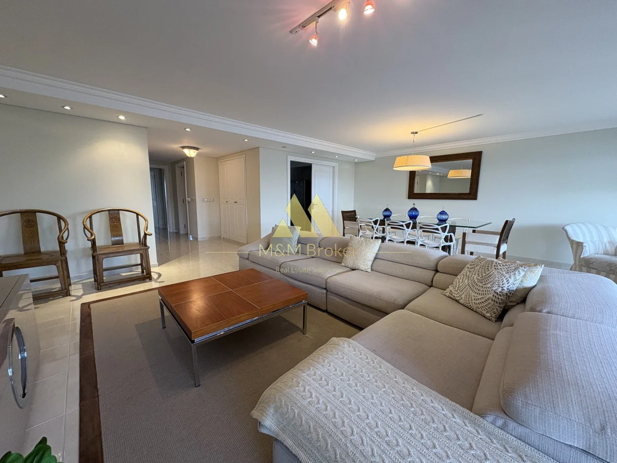 Se destaca su amplitud y luminosidad en toda el área del departamento, living, comedor, con terraza al frente, cocina funcional completamente equipada, dependencia de servicio completa o 5to. dormitorio, 4 suites con vista, palier privado; garaje doble.