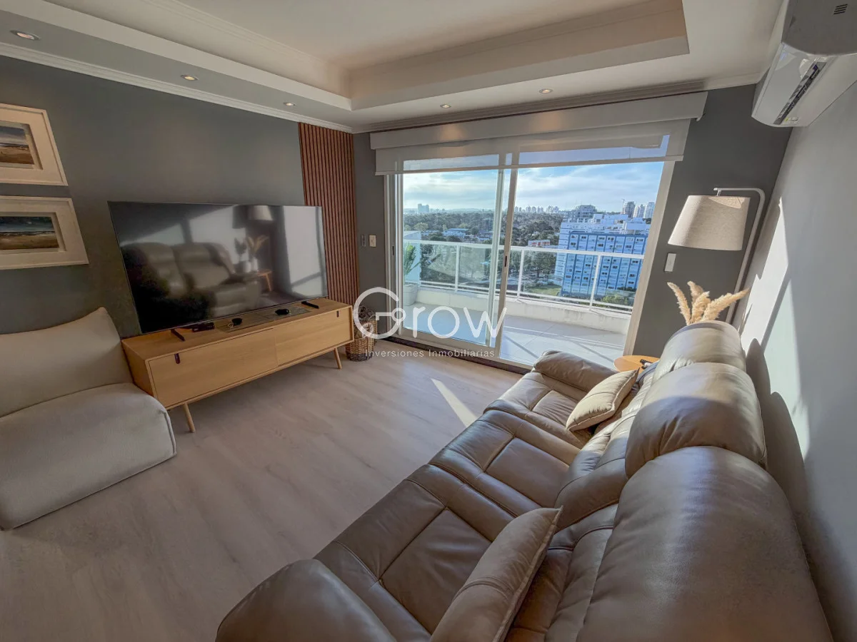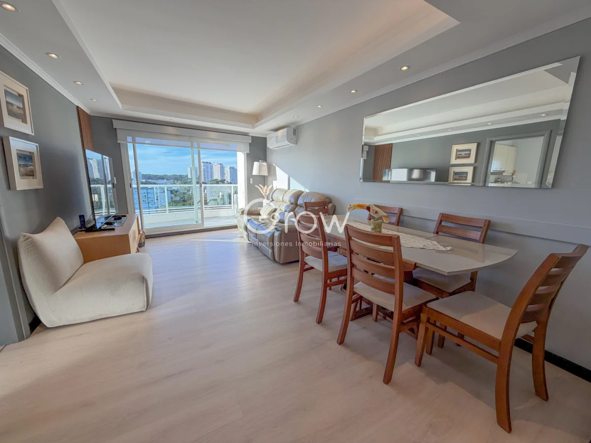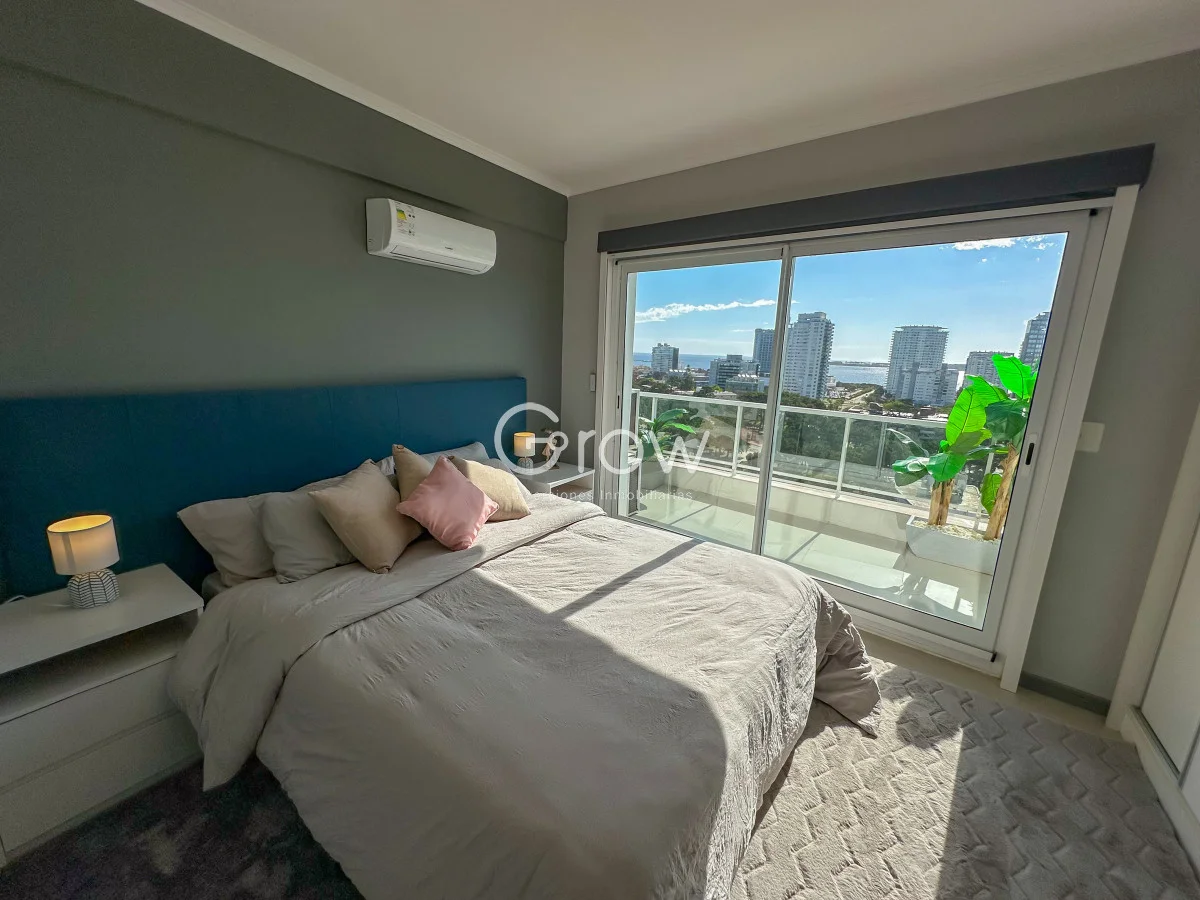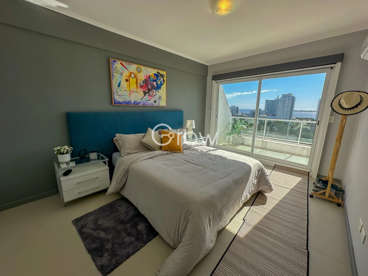 Finamente equipado en edificio con amplios servicios. Orientado estratégicamente hacia la playa Mansa y puesto de sol, ideal para disfrutar todo el año, cómodo living comedor, 3 dormitorios, 2 baños completos, 1 de ellos en suite, acceso al balcon desde todos los ambientes, hermosa cocina definida totalmente equipada y parrillero propio en la balcon. Garage ubicado en el subsuelo del edificio. Cortinas automatizas, aire acondicionado en todos los amebientes. Ventanas con DVH.