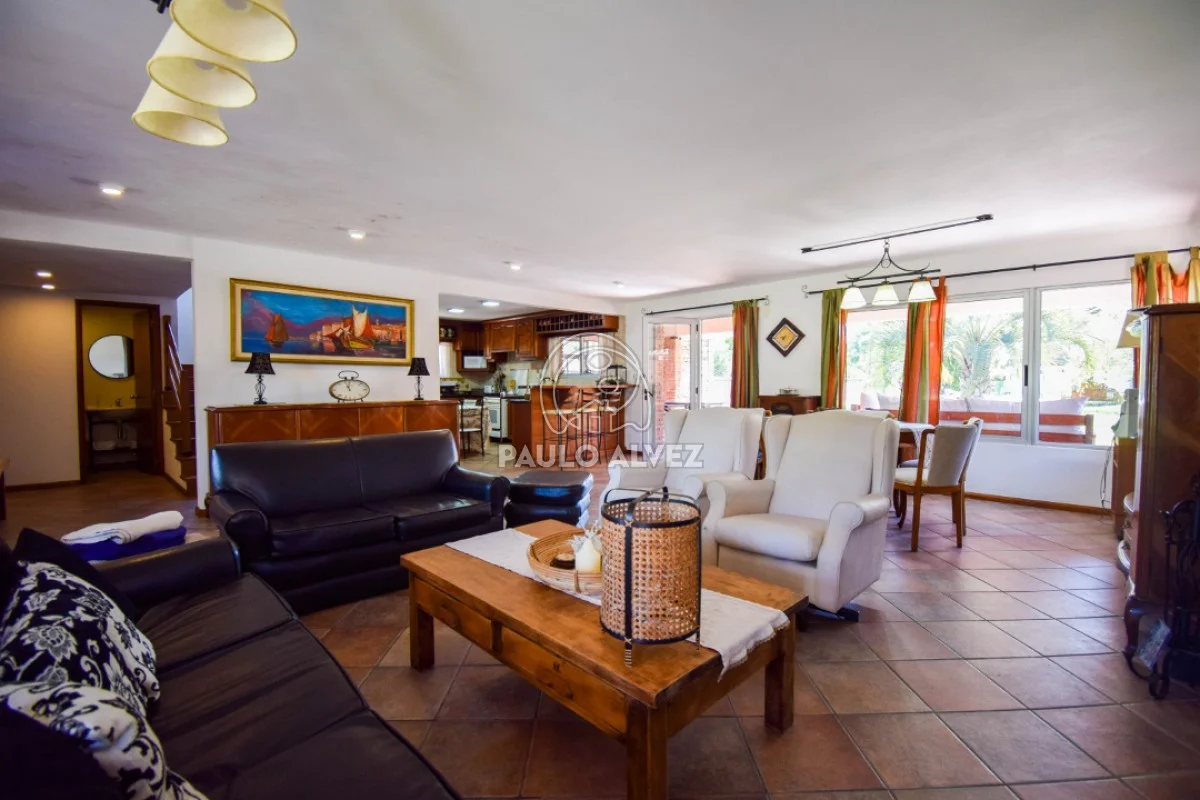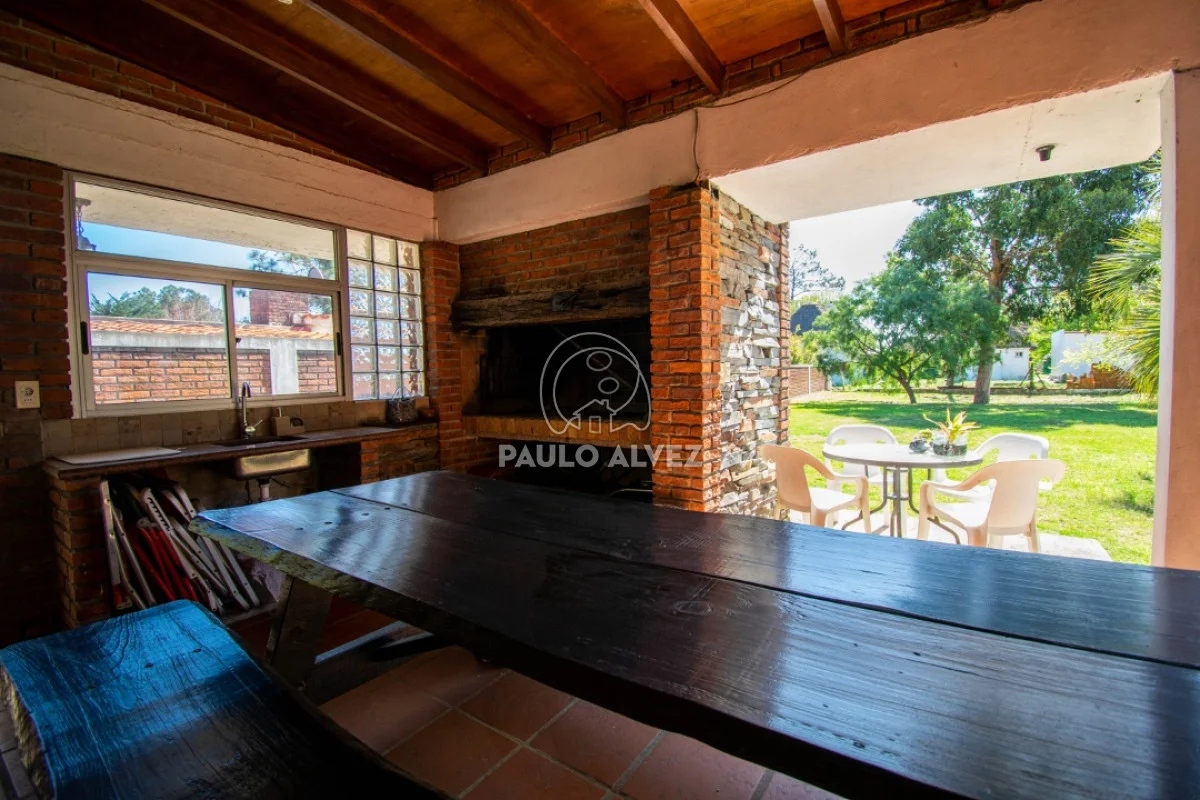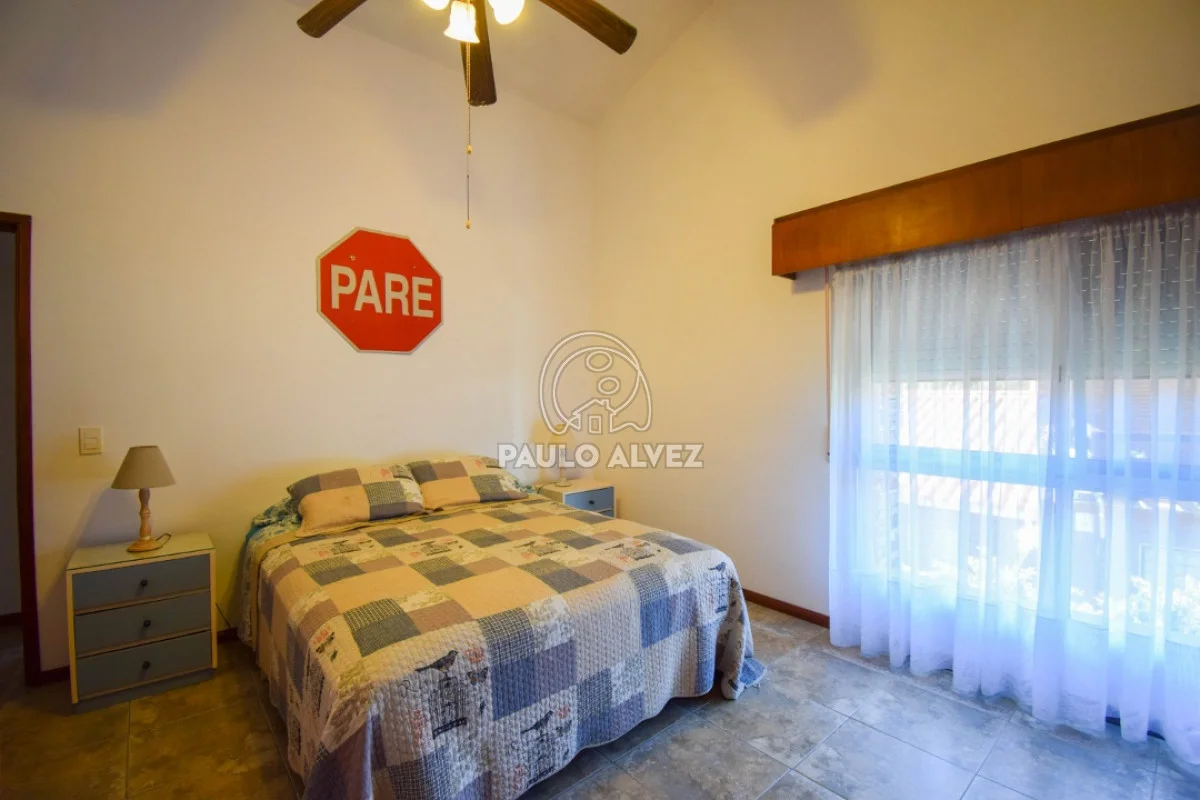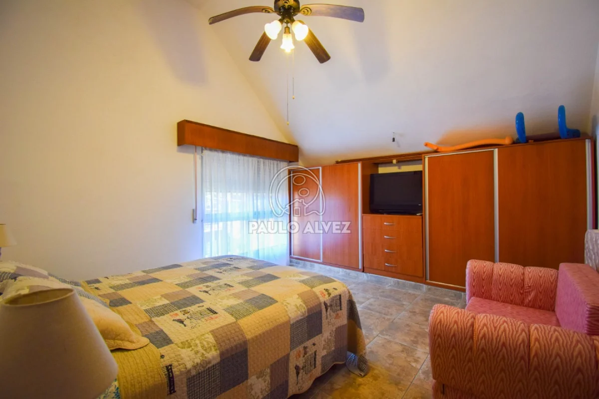 Propiedad de alto porte y excelente calidad constructiva. Ubicada en Barrio Portales, a solo 200 metros del mar. Emplazada en un predio de 850m². Construcción tradicional de 203m², con doble pared de ladrillo, techo de losa, piso se ceramica. Distribuida en dos plantas, planta baja living comedor con estufa a leña, cocina con muebles bajo mesada y aereo, semi definida por barra desayunador y baño social. Planta alta cuenta con tercer baño completo, cuatro espaciosos dormitorios, el primero con cama matrimonial baño en suite, el segundo con tres camas de una plaza, el tercero con cama matrimonial y el cuarto con cama matrimonial, todos cuentan con aire acondionado y placares empotrados. En el exterior parque enjardinado de gran tamaño, arbolado y totalmente cercado. Consulte para coordinar una visita.