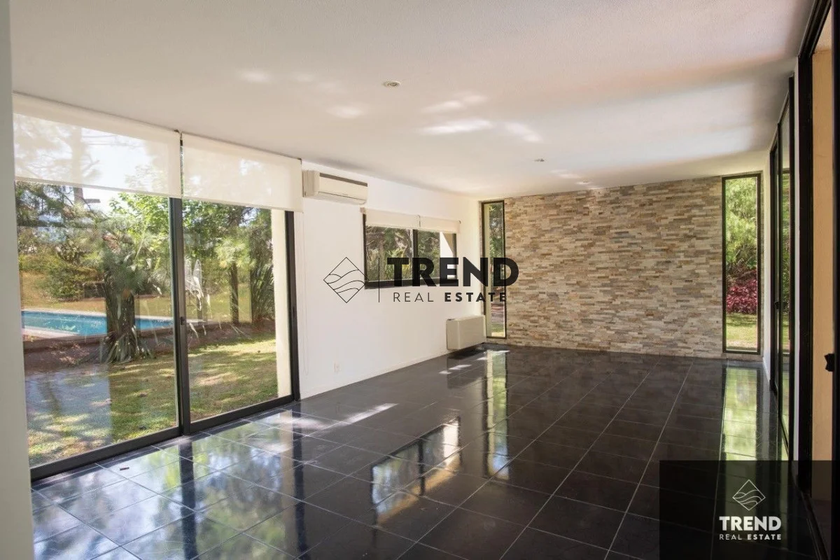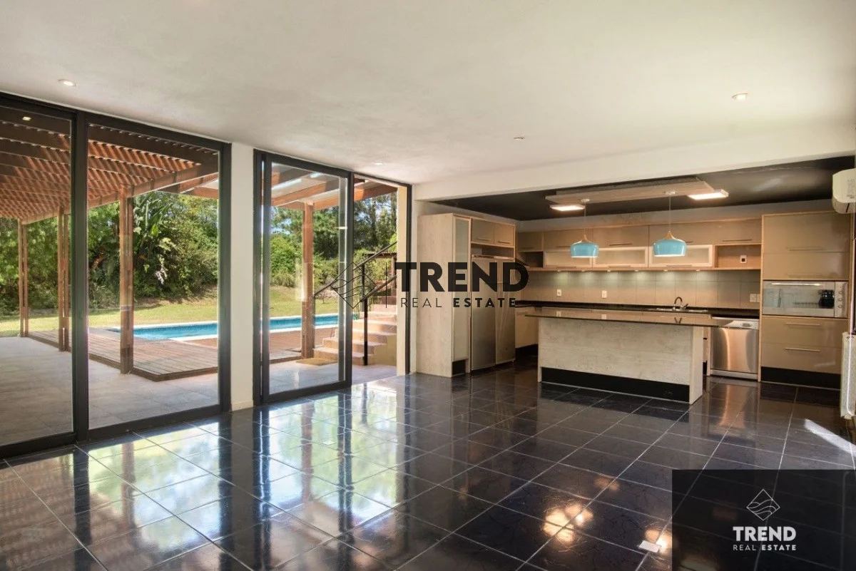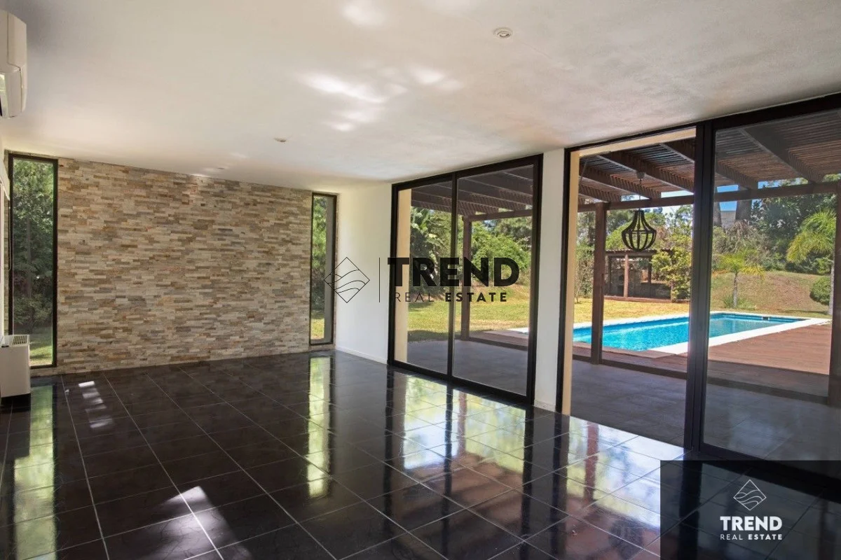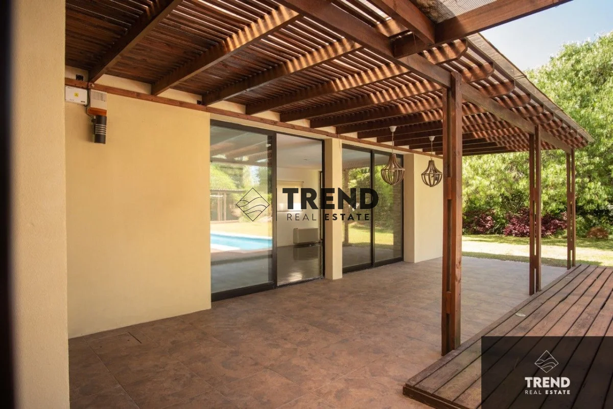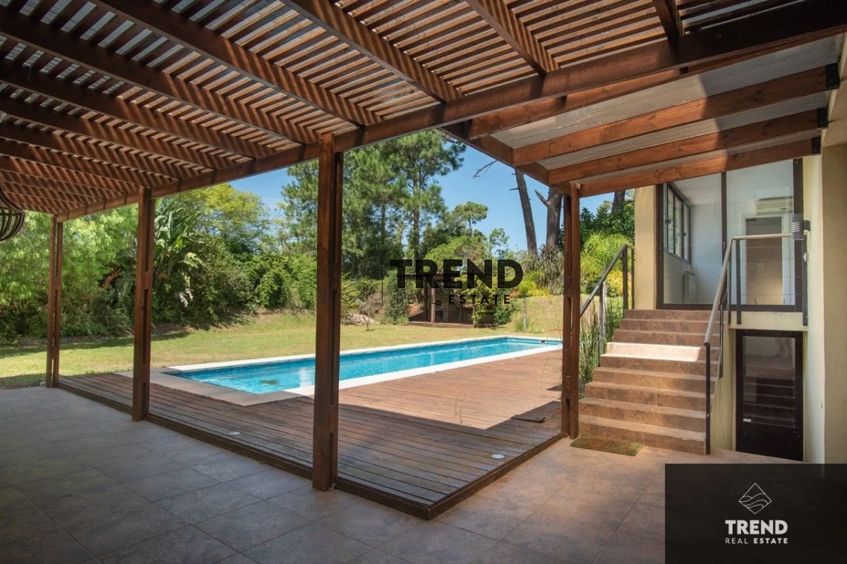 La casa se compone de 3 dormitorios, más dormitorio de huéspedes, más dependencia y 5 baños, garantizando comodidad y privacidad en cada rincón. Entre sus características más destacadas se encuentran una acogedora chimenea, aire acondicionado, y un hermoso jardín que invita a disfrutar de la naturaleza. Además, la propiedad cuenta con una piscina perfecta para relajarse en los días caluroso, . Para mayor comodidad, dispone de 2 cocheras cubiertas.
