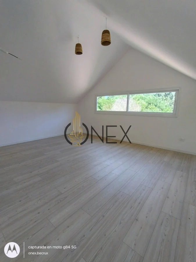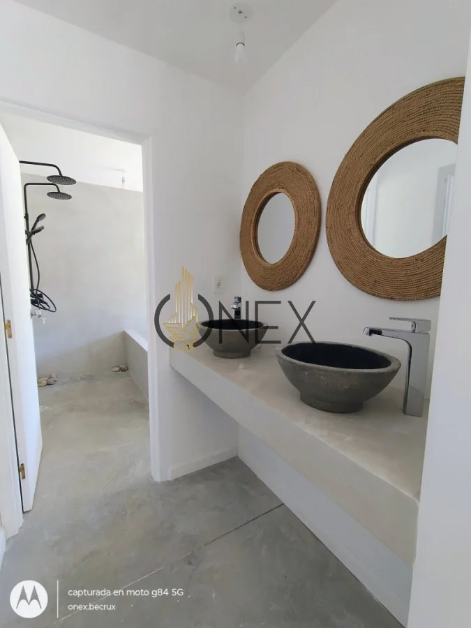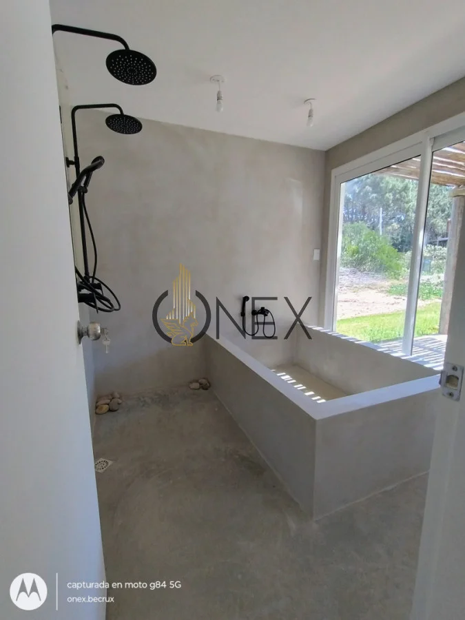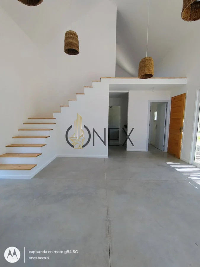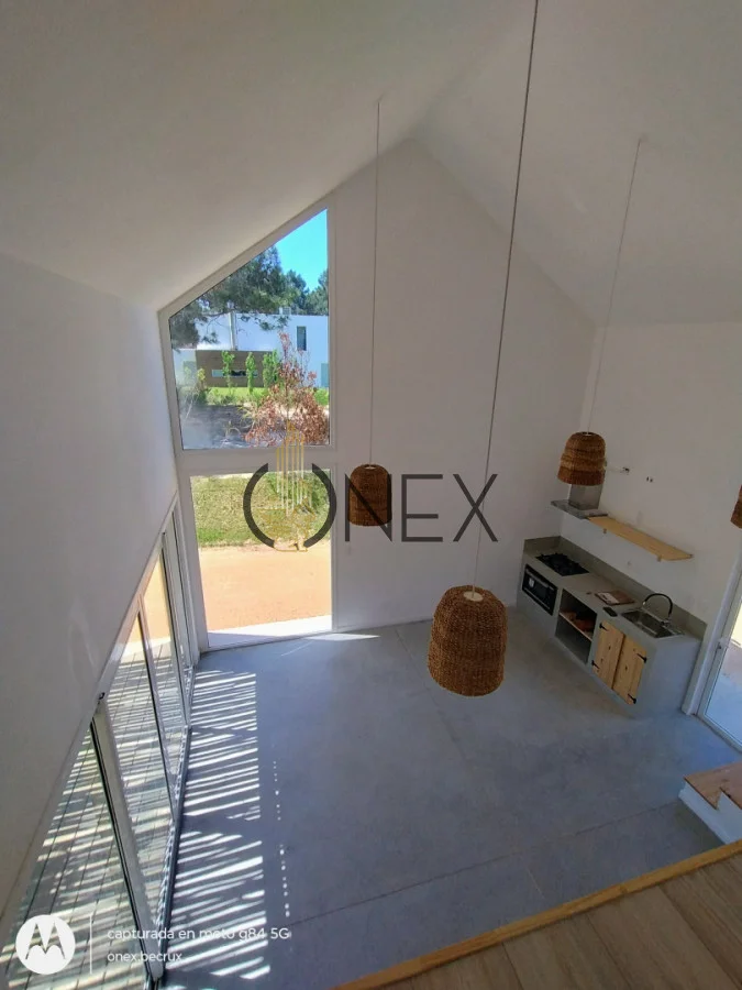 Unidad 1 – Casa de 3 dormitorios y 2 baños • 3 dormitorios • 2 baños completos (uno con bañadera tipo spa) + ducha exterior • Cocina integrada y equipada • Sala de estar de doble altura, muy luminosa y espaciosa • Grandes ventanales con accesos por el frente y por el fondo • Ingreso vehicular independiente • Pisos de hormigón alisado • Instalación lista para aire acondicionado en todos los ambientes • Terraza con pérgola de varejones de eucaliptus y lámparas de yute, que aportan calidez y estilo • Jardín parquizado con plantas nativas, entrada independiente y senda de paso compartida Característica • Terreno individual: 650 m² por unidad • Superficie construida: 90 m² interiores + 30 m² de terraza techada con pérgola • Sistema constructivo: Steel frame, con revestimiento exterior en siding y chapa • Proyecto realizado por arquitecto, con estilo mediterráneo moderno, funcional y cálido Referencia Interna : Tera-3417