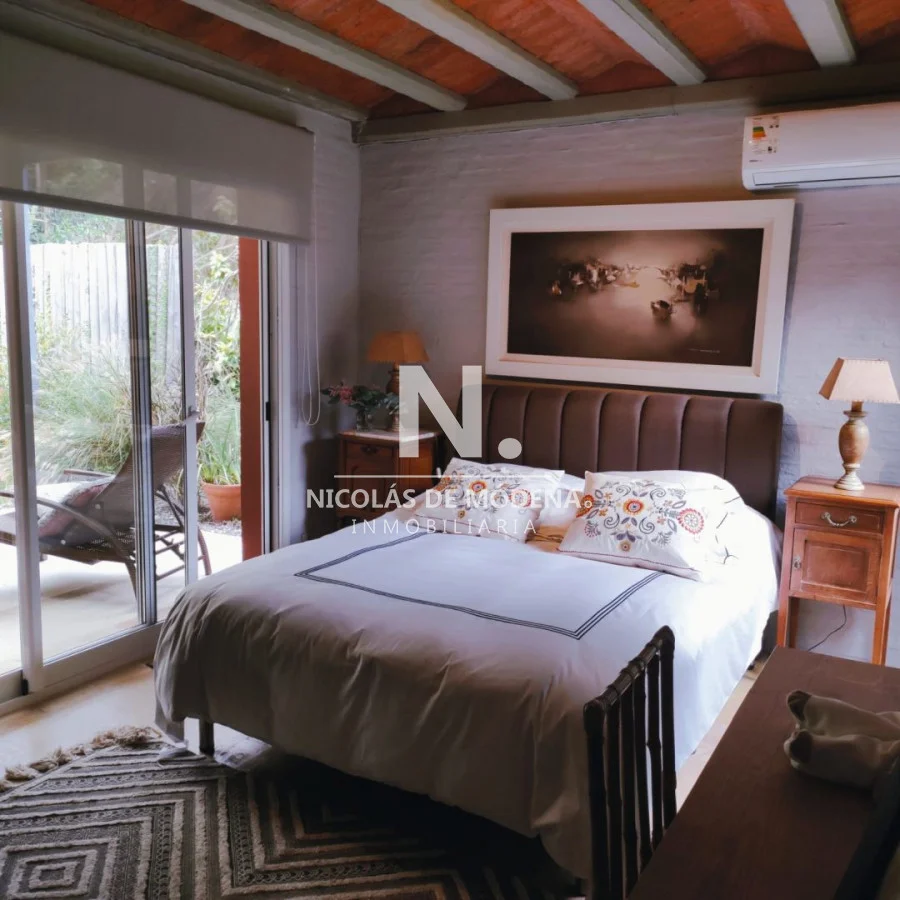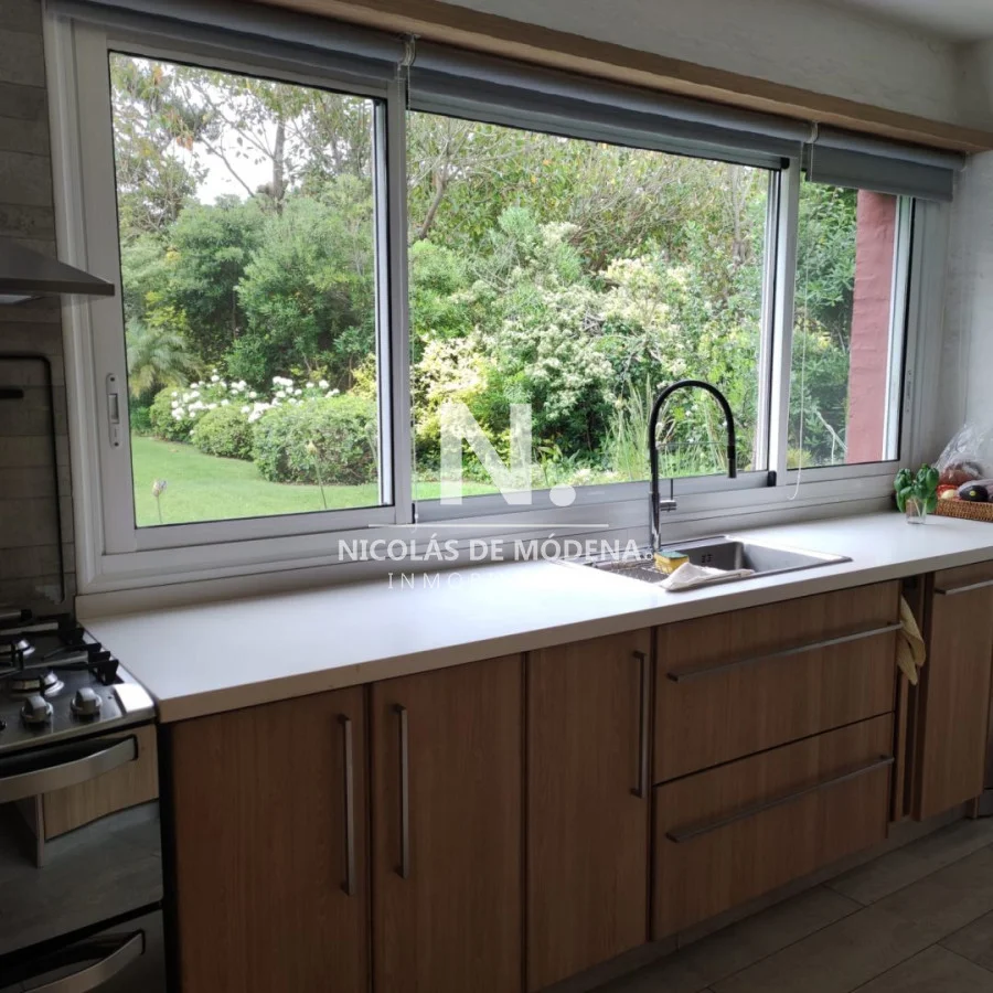La cocina está completamente equipada con anafe, horno, microondas, campana, lavavajilla y placares, pensada para quienes disfrutan de la practicidad y el buen gusto. El living comedor con estufa a leña es un espacio acogedor y luminoso que invita a compartir momentos de relax en un ambiente cálido y sofisticado.
