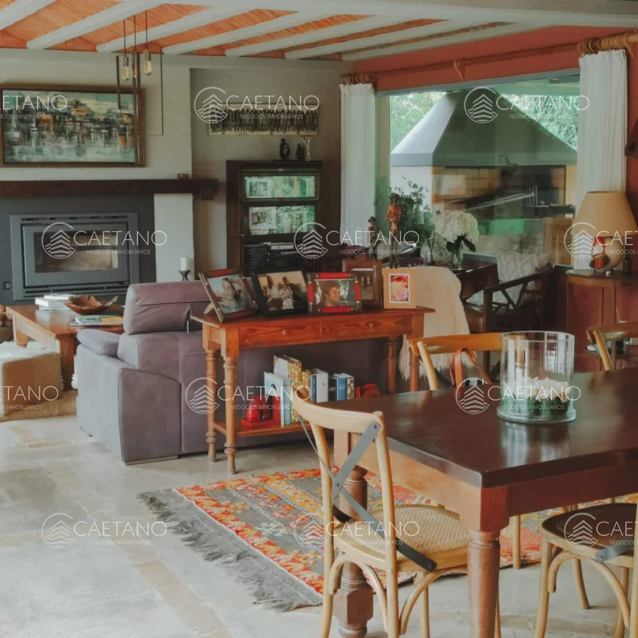 En su interior cuenta con 5 Dormitorios bien equipados con multiples comodidades siendo 3 de ellos en suite, con 4 Baños en total, lo que da una capacidad para 10 personas aproximadamente, con una gran cocina equipada con Anafe - Microondas - Lavavajilla -Campana - Horno - Placard y un hermoso Living Comedor con estufa a leña.