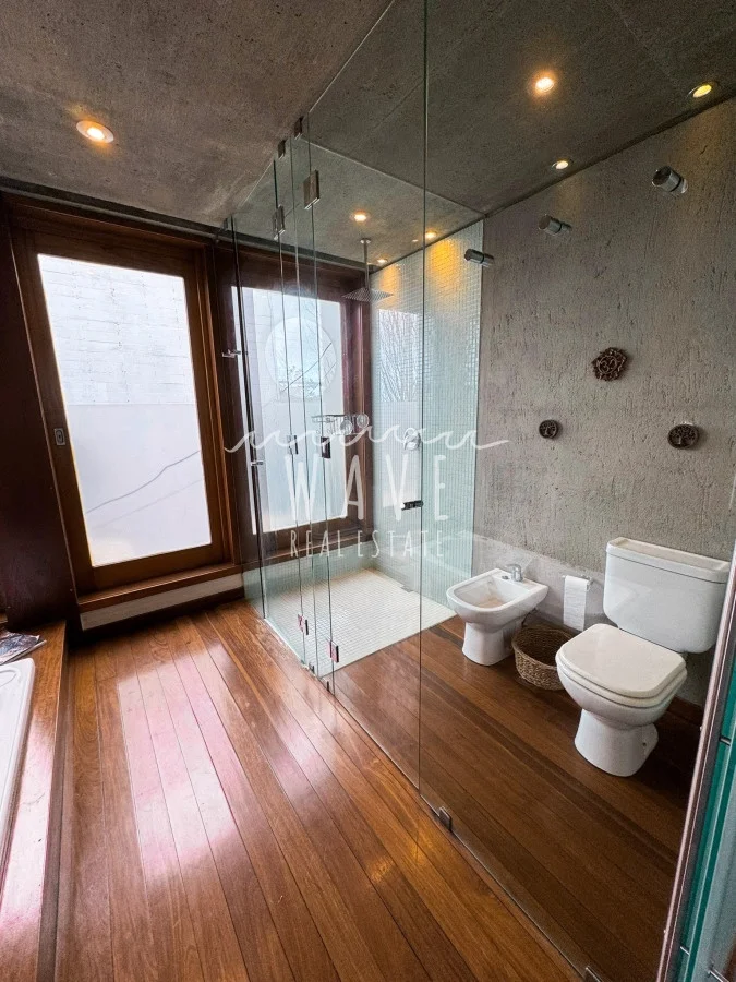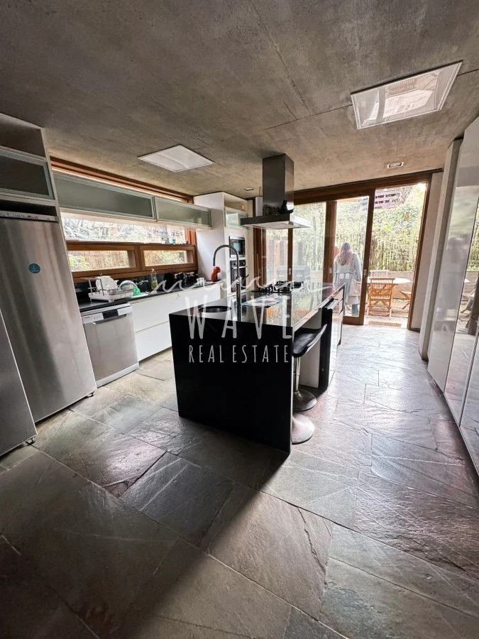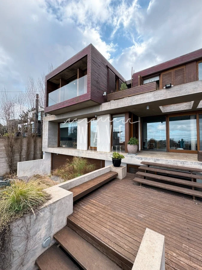 De estilo moderno, y muy bien decorada aloja 10 personas comodamente , muy amplia en 3 niveles, planta baja encontramos cochera cerrada para dos autos, lavanderia y dormitorio de servicio con dos camas y baño en suite, subiendo a siguiente nivel, se desarrolla la planta en un gran living comedor amplio que se integra fácilmente con la piscina y zona de parrilleros, cocina completa, un dormitorio con vista al frente y baño completo. Subiendo a planta alta tenemos tres amplias suites completas con una habitación de distribución donde se encuentra el play room .