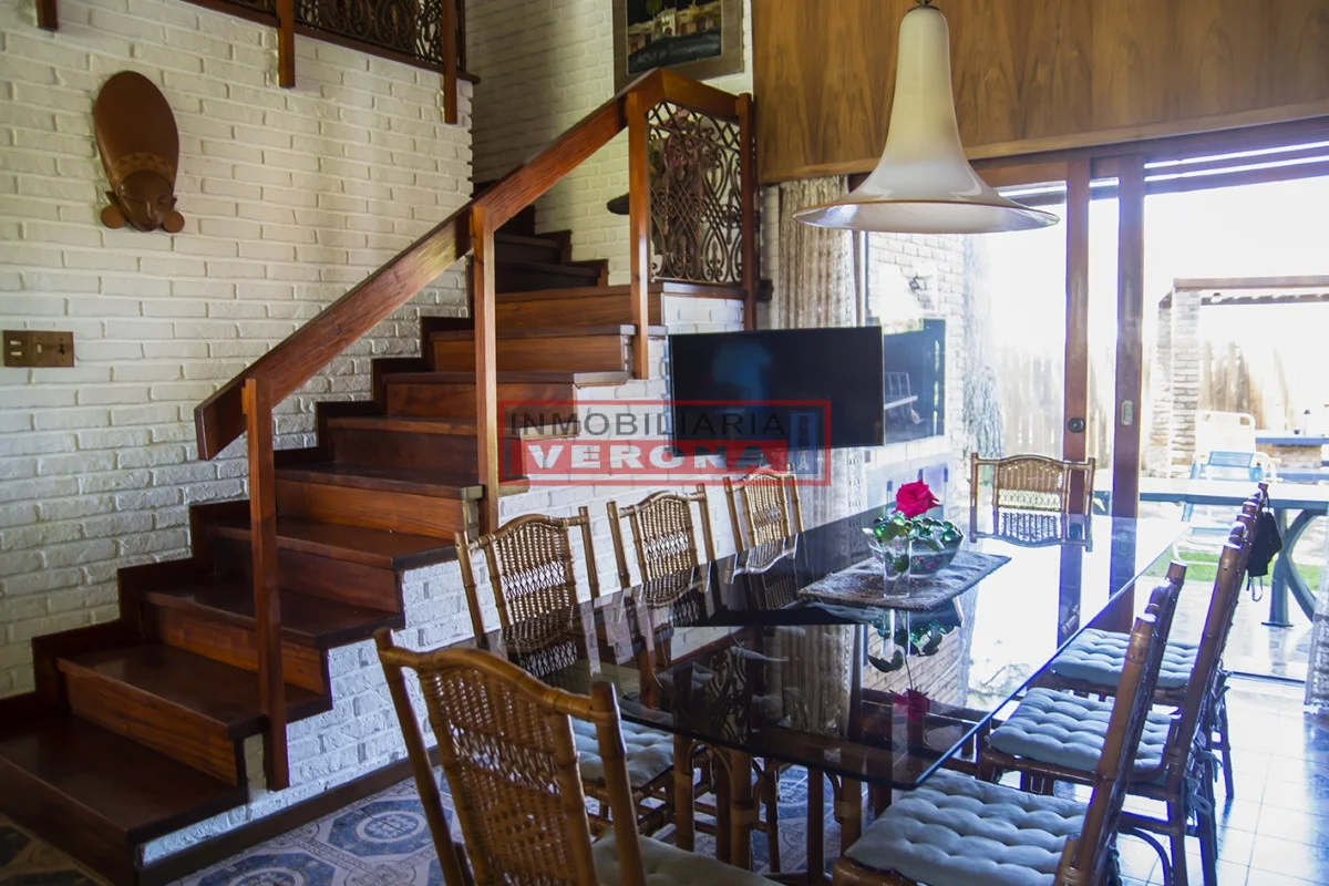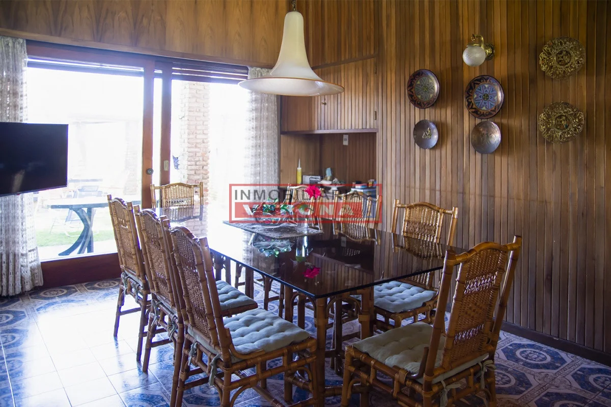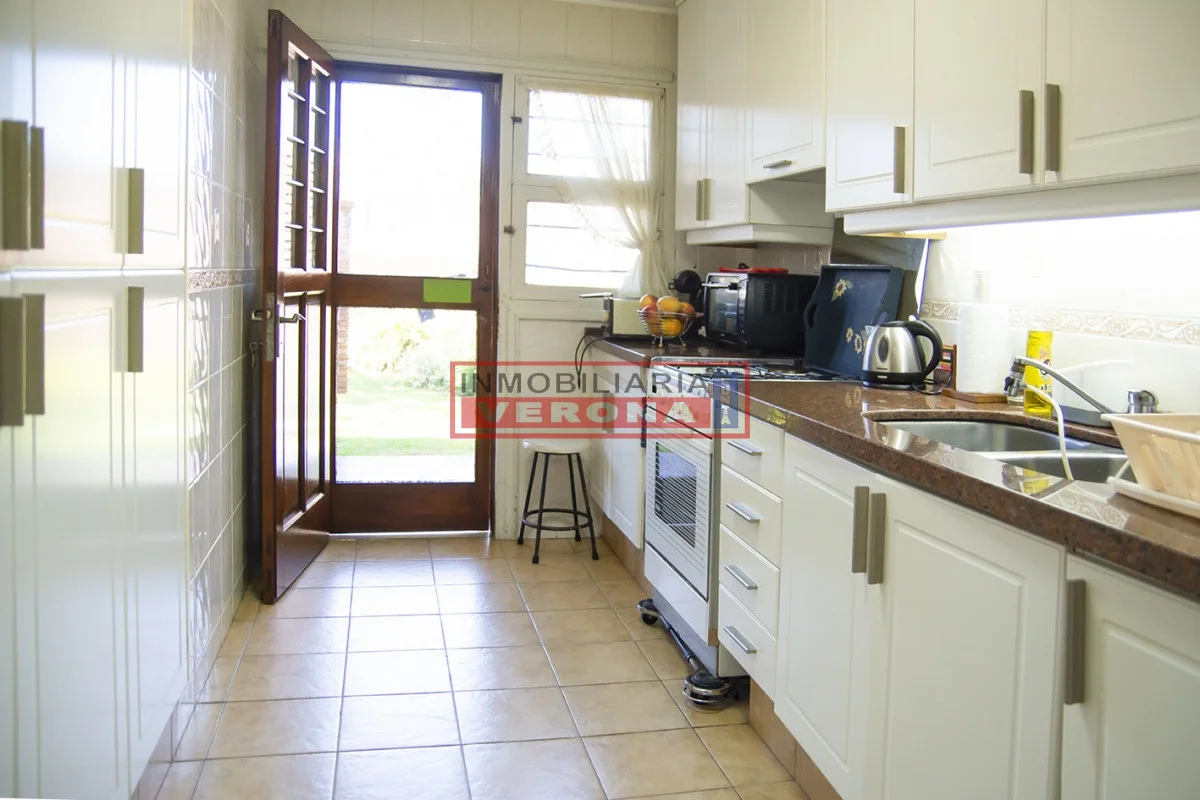 Casa de gran dimensión, cuenta con muebles de confort y descanso para sus huéspedes, totalmente equipada se vende sin adornos ni cuadros Cuenta con 4 Dormitorios 3 Baños 3 Suites , con capacidad para 8 personas , 6 camas, Cocina Bien Equipada, Living , Comedor. Equipamiento : Lavadero - Cocina a Gas - Microondas - WiFi - Lavarropas - Heladera Con Freezer - Licuadora - Tostadora - Exprimidora - Cafetera - Aire Acondicionado - T.V. - Horno - Placard en dormitorios - Placard en cocina - Campana - Terreno : 600 m2 Edificado : 300 m2 Inmobiliaria VERONA PUNTA Consulte con nuestros asesores! Referencia Interna : Tera-9095