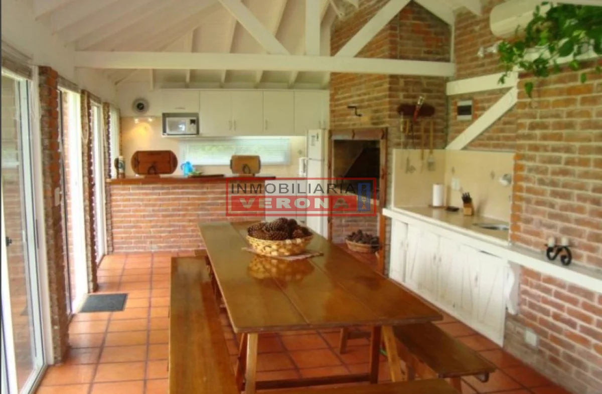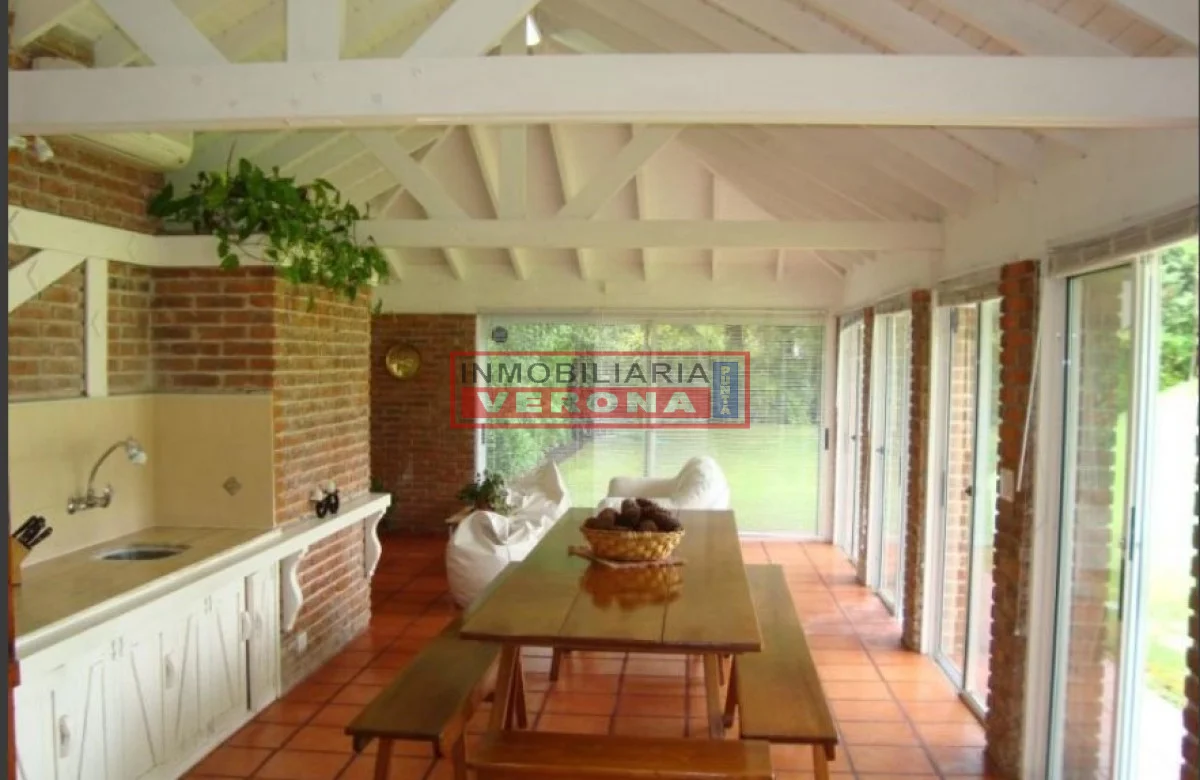 Living con estufa a leña, Comedor. Acogedora galería al jardín. Master suite con terraza y jacuzzi. 3 amplios dormitorios en semi-suite con 2 baños. Gran playroom con estar intimo. Habitación de huéspedes en suite. Cocina con office. Lavadero interior y exterior. Dependencia de servicio integrada. Piscina para grandes y chicos, climatizada y solárium. Gran barbacoa equipada con cocina completa. Estar intimo y baño social.