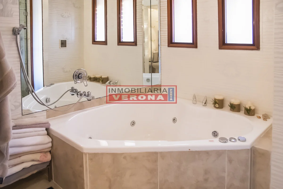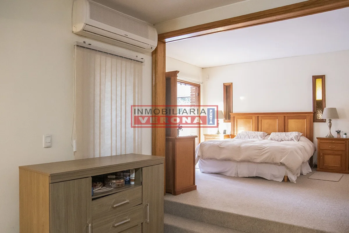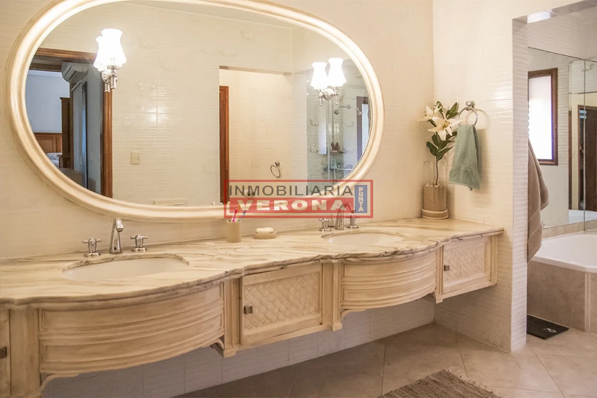 En el prestigioso barrio Lugano, uno de los más residenciales y tranquilos de Punta del Este, se encuentra esta amplia y elegante propiedad diseñada para disfrutar del máximo confort. Con un terreno de 1.600 m² y una superficie edificada de 440 m², esta casa ofrece espacios generosos y funcionales, ideales tanto para vivir todo el año como para vacacionar en un entorno exclusivo. La residencia cuenta con 7 dormitorios y 5 baños, incluyendo 4 suites, lo que garantiza privacidad y comodidad para toda la familia y sus invitados. Sus amplios ambientes integran un living y comedor muy luminosos, perfectos para reuniones sociales, además de una cocina completa equipada con todo lo necesario para quienes disfrutan de la gastronomía. Entre su equipamiento destacan: lavadero, cocina a gas, microondas, WiFi, lavavajillas, heladera con freezer, licuadora, tostadora, horno, campana y aire acondicionado, además de placares en dormitorios y cocina que optimizan la organización del espacio.