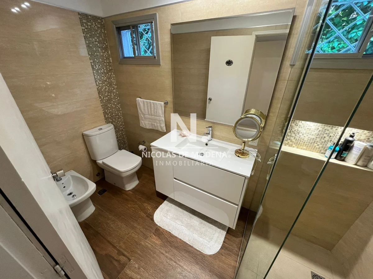 El exterior es otro de sus grandes atractivos: un hermoso terreno parquizado, con riego sectorizado, que se convierte en un oasis privado donde relajarse, disfrutar del sol o proyectar momentos inolvidables al aire libre.