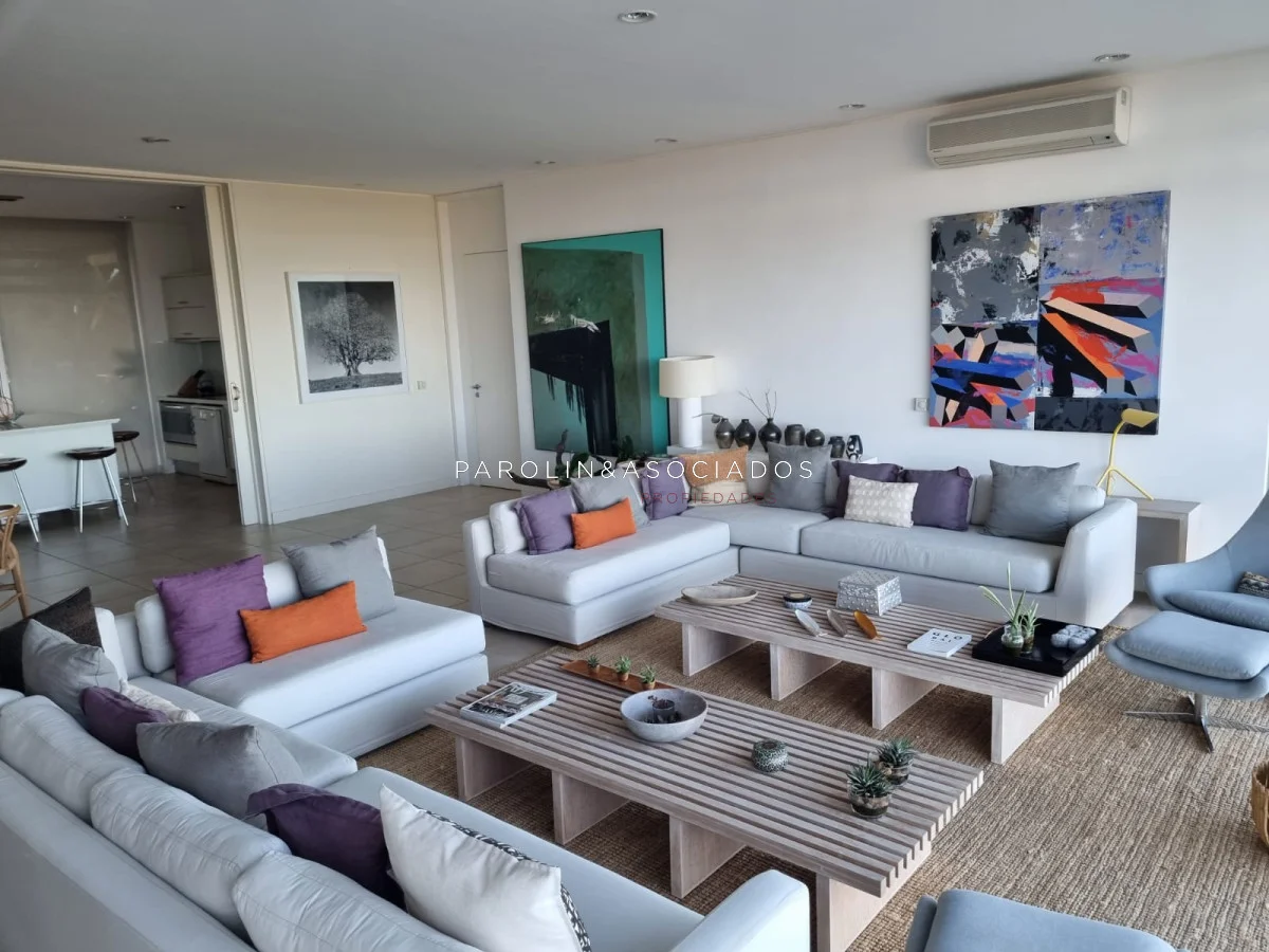 Apartamento en Brava, ubicado en una zona privilegiada, a solo 50 metros del mar. ¡Frente al mar! Características de la unidad: - 3 dormitorios, 3 baños, 3 suites - Capacidad para 8 personas (5 camas) - Cocina bien equipada - Living y comedor amplios - Dormitorio de servicio con baño Equipamiento: - Lavadero - Anafe - Microondas - Lavarropas - Lavavajillas - Heladera con freezer - Tostadora - Cafetera - Aire acondicionado - Televisor - Horno - Placard en dormitorios y cocina - Campana extractora Servicios y Amenities: - Recepción 24 horas - Piscina - Gimnasio - Wi-Fi - Playroom - Servicio de mucama - Solarium - Vigilancia - Sala de juegos - Cocheras de cortesía No dudes en consultar con nuestros asesores y anímate a agendar tu visita. Consulte con nuestros asesores en Parolin and Asociados Propiedades. Referencia Interna : Tera-7391