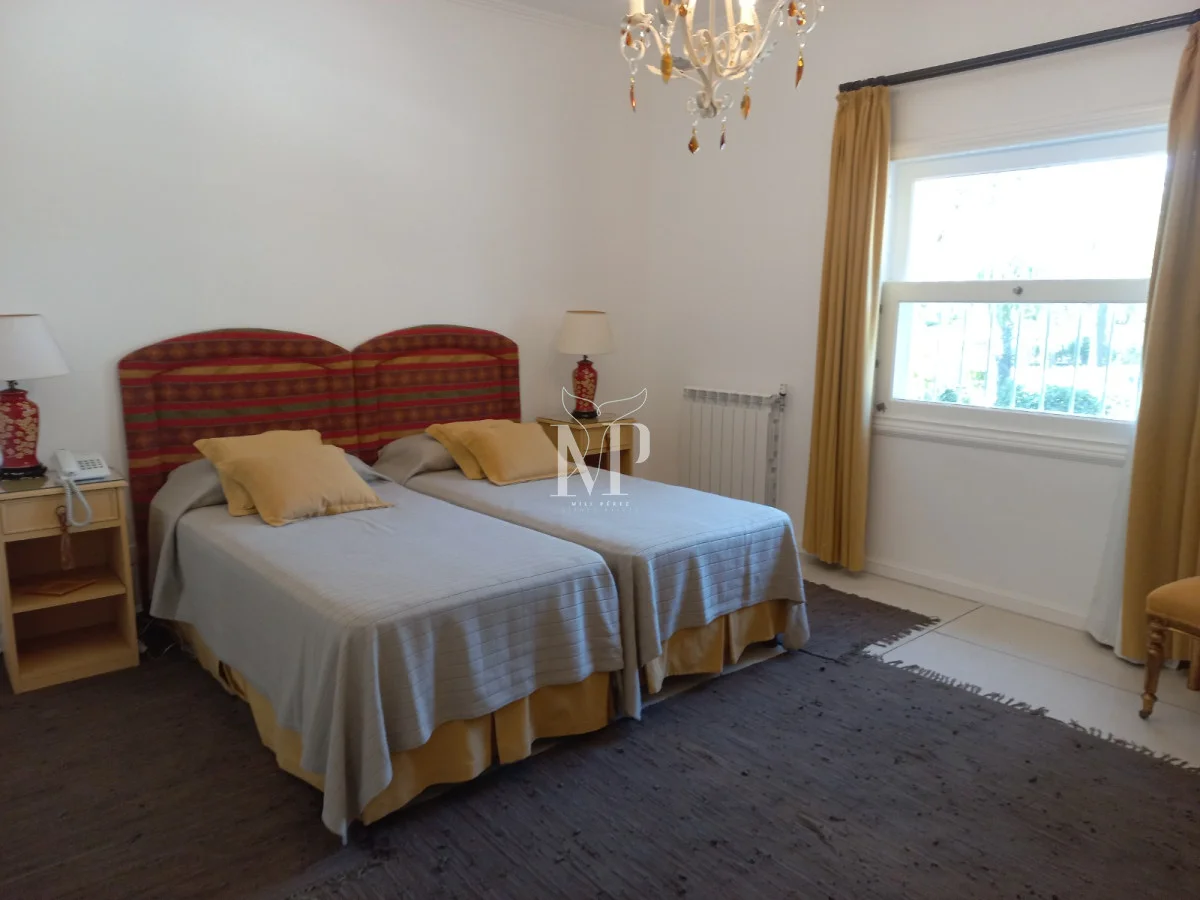 En zona residencial tranquila. Excelente ubicación proximo al area de restaurantes. Espectacular propiedad de estlo clasico. 1.000 m2 edificados sobre lote de 9.000 m2 Living con sala de estar y hogar a leña. Cocina definida completa con comedor diario. 5 dormiorios (2 de ellos con hogar a leña) 5 baños (3 suits) Terraza con vista al bellos jardin. Areas parquizadas. Gran piscina con deck, perfola. Parrillero. Consulte a nuestros asesores yc oordine su visita. Referencia Interna : Tera-90