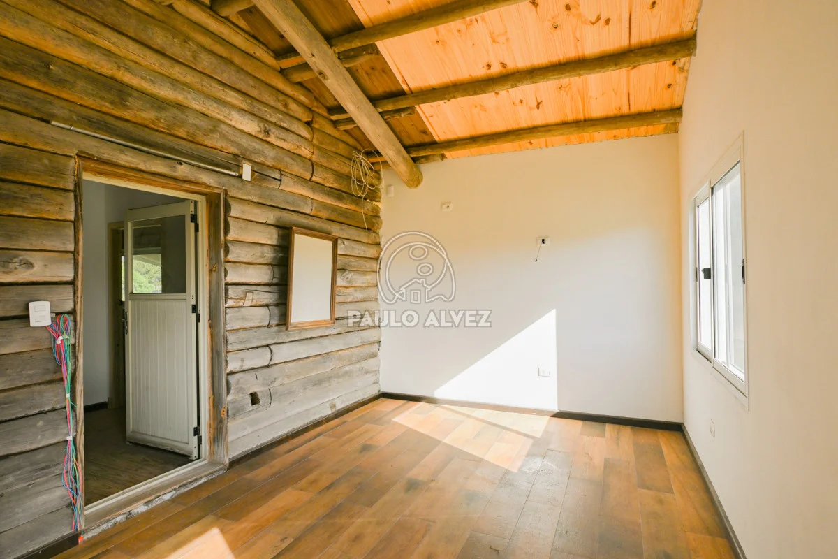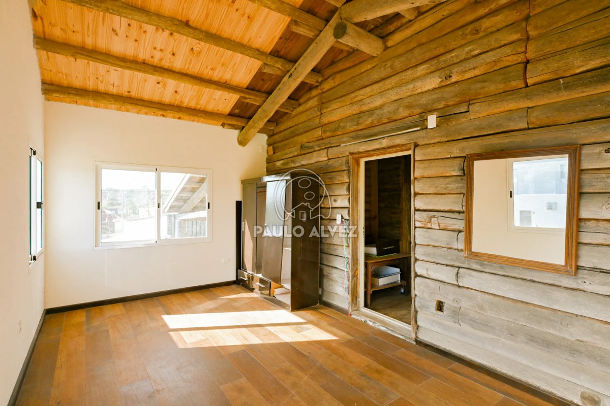 Propiedad ubicada en la ciudad de Piriápolis, en la zona de Tierra Calma. Emplazada sobre terreno de 500 m², 159m² de construcción en madera, con aberturas de aluminio, techo de chapa, cielorraso de madera, pisos en cerámica y paredes de troncos. Distribuida en dos plantas: Planta baja: Luminoso living, cocina independiente con muebles alto y bajo mesada y salida a patio, baño completo con mampara de vidrio. Cochera cubierta. Planta alta: Dos dormitorio definido con vista a las sierras. Predio completamente cercado. Oportunidad ideal para quienes buscan tranquilidad y estar rodeados de naturaleza. Consúltanos para más información.