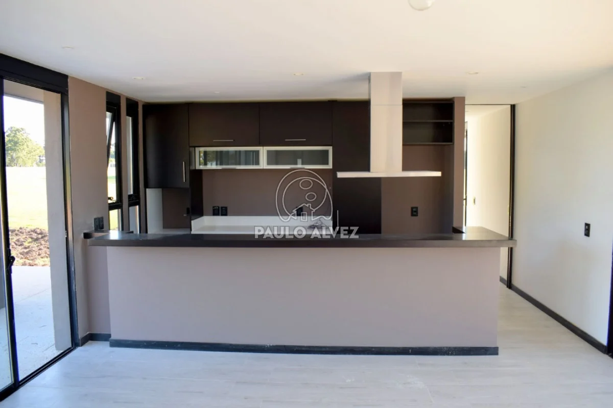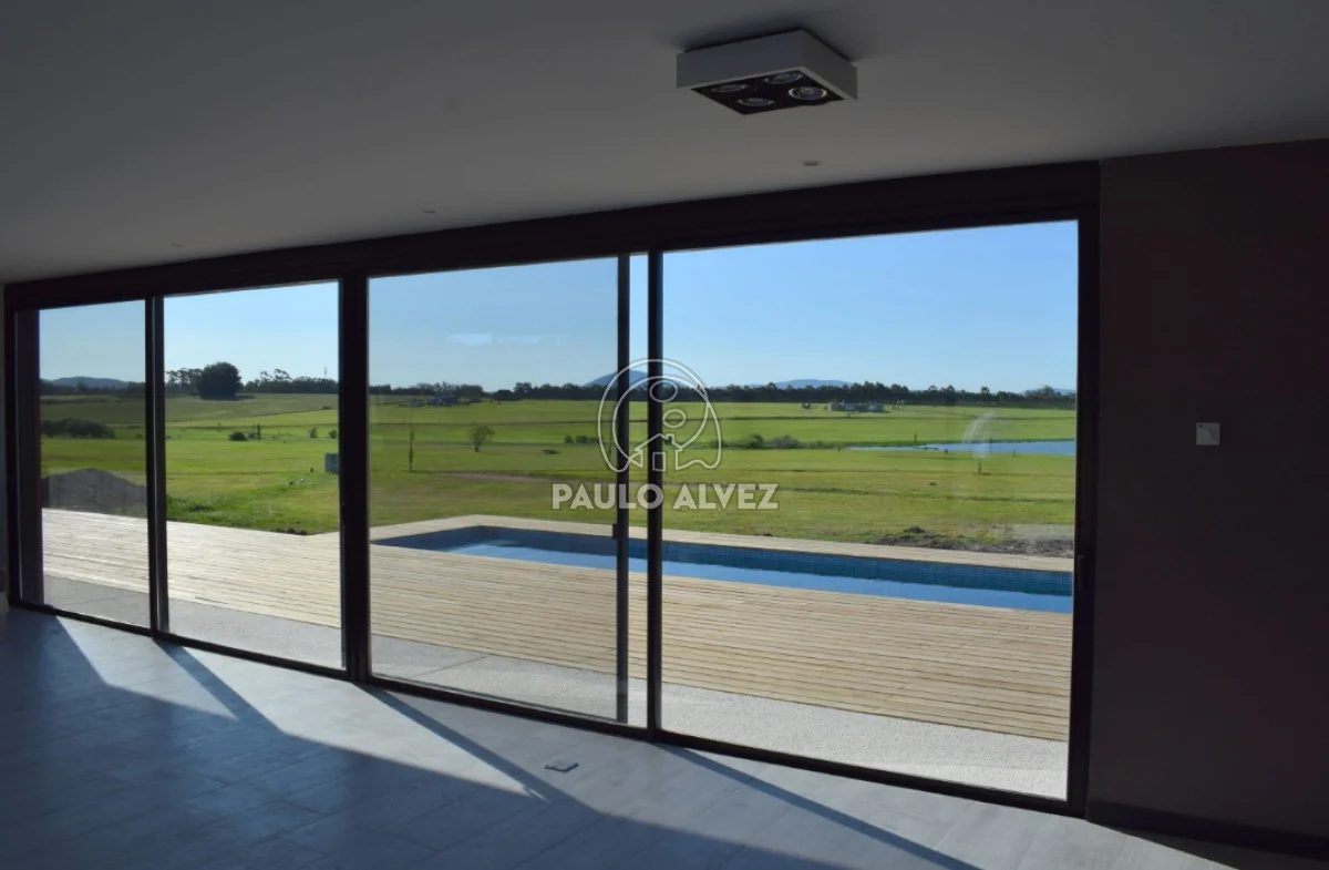 Propiedad de construcción tradicional de diseño moderno y minimalista, con equipamiento básico y grandes aberturas en todos los ambientes que aportan excelente aprovechamiento de la luz natural, integración con la naturaleza y hermosas vistas. Living comedor amplio con estufa a leña con detalles en piedra, cocina con muebles definida por barra, dos dormitorios cómodos con placares y dos baños. Deck con piscina, vista al lago interno y a los cerros y parrillero. Por más información o para coordinar una visita contáctenos.