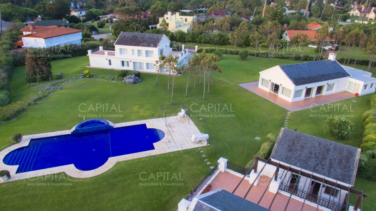 Casa huéspedes: con living comedor, cocina definida amplia, dos Dormitorios con un baño en plata baja. Planta alta un gran dormitorio con baño en suite y estar muy amplio. Terraza generosa con vista hacia ambos lados. Pegado casa de caseros con dos dormitorios con dos baños y cocina integrada al Living comedor.