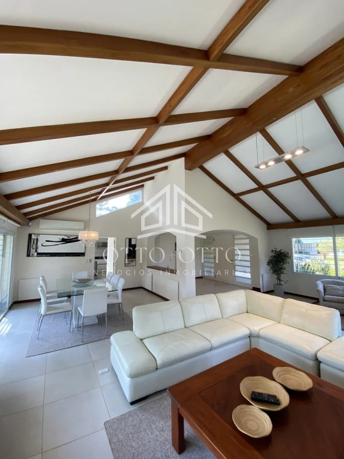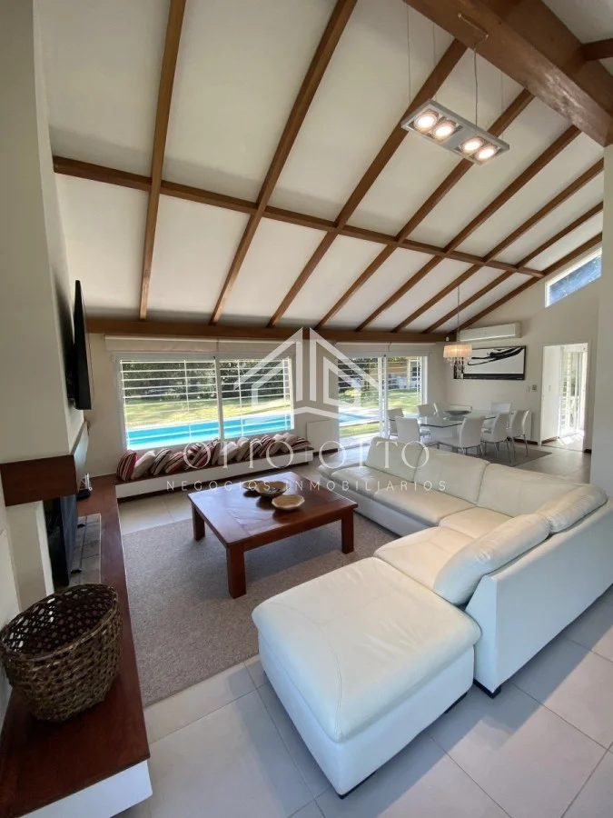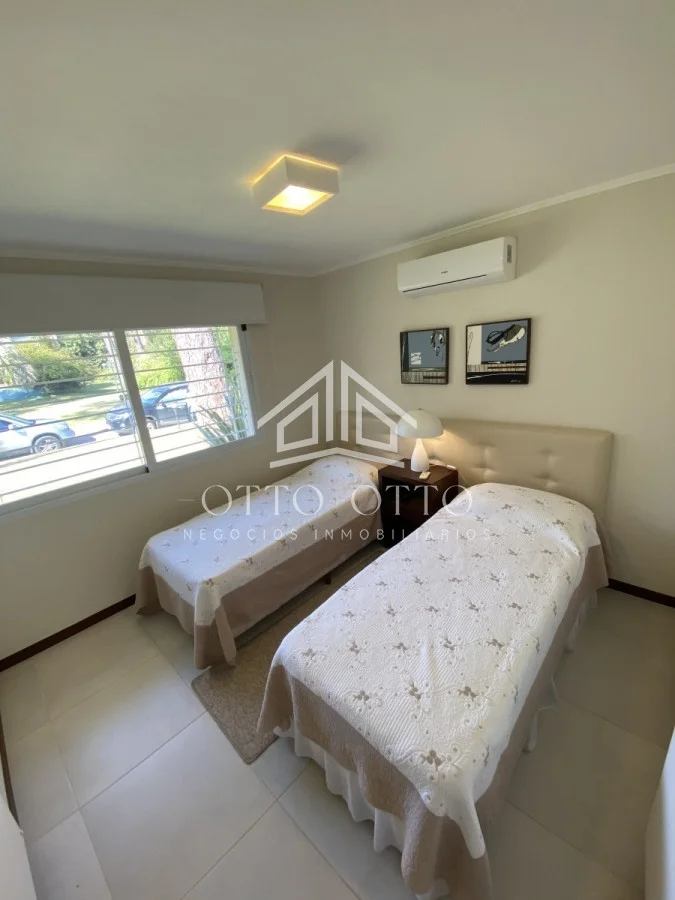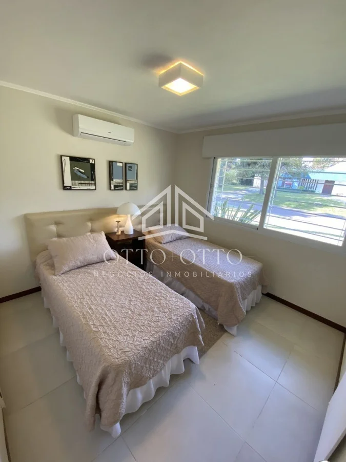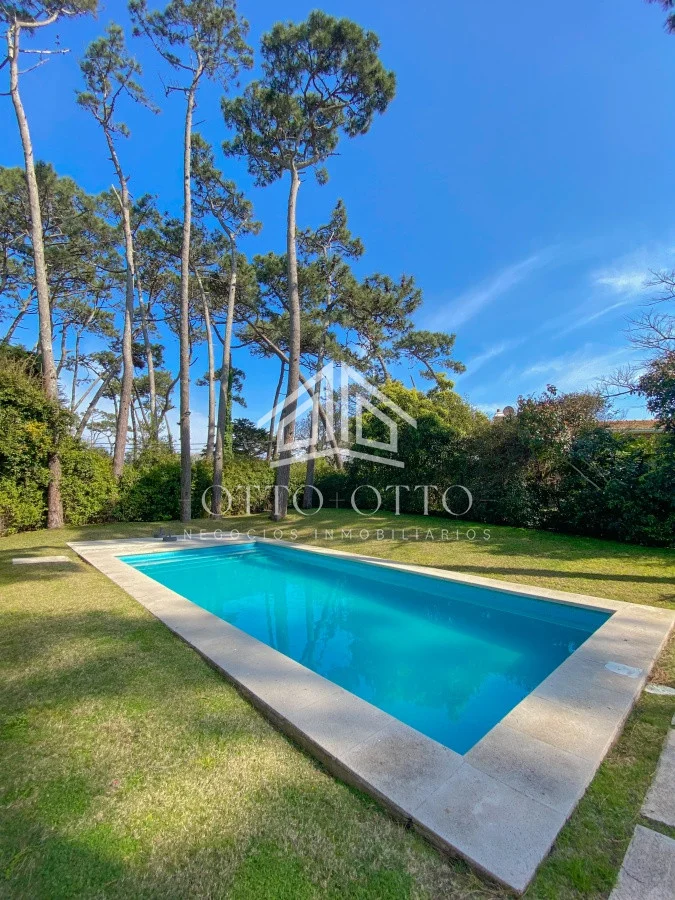 Casa 4 DORMITORIOS en Playa Mansa, Punta del Este. En la mejor zona de la Playa Mansa, cerca de Supermercado Devoto y a pocos minutos de la Península. Excelente entorno. Remodelada totalmente, sobre un terreno de 1.000 m2 y construidos 250 m2. La casa se distribuye en una planta: Hall de ingreso, Living amplio con estufa a leña, comedor con acceso a jardín, cocina completa, toilette, 4 dormitorios, 3 baños (2 de ellos en suites), dependencia de servicio con baño, lavadero, parrillero techado, piscina, cochera, perímetro cercado. Todos los ambientes incluyendo dependencia cuentan con aire acondicionado frio/calor. Aberturas de aluminio con vidrio Blindex. Pisos y baños realizados con materiales de primera calidad. Living y dormitorios equipados con televisores Led. Piscina climatizada con bomba de calor. Riego automático. Iluminación exterior automatizada con foto células.