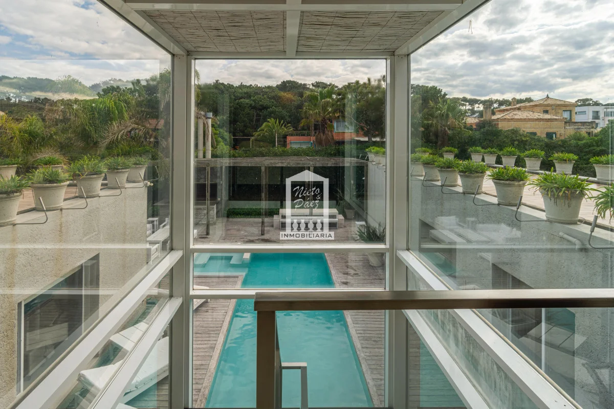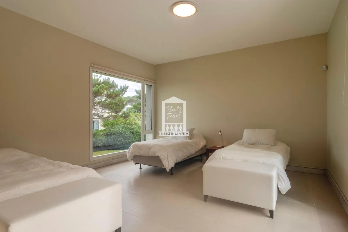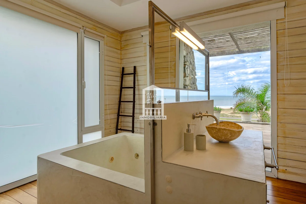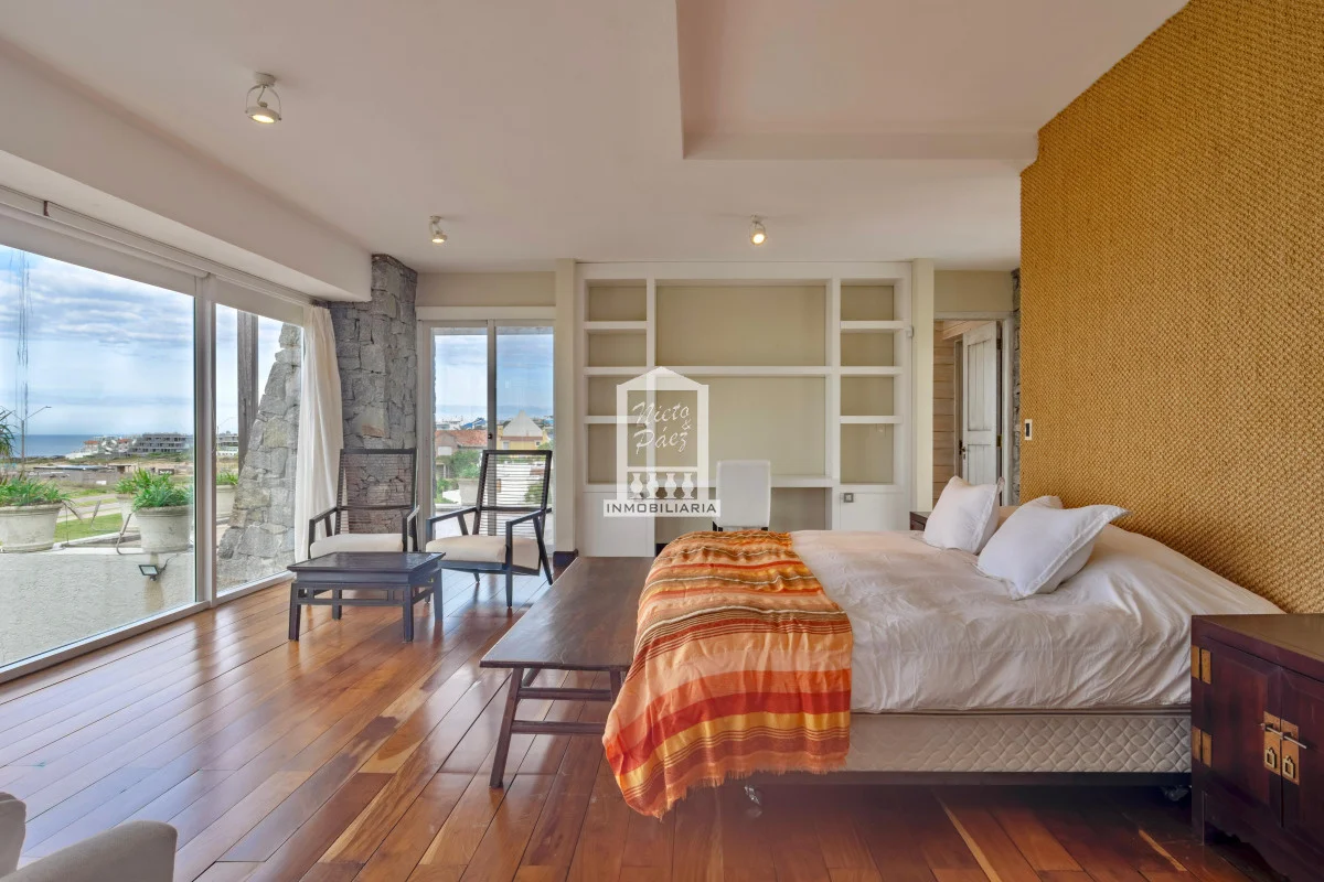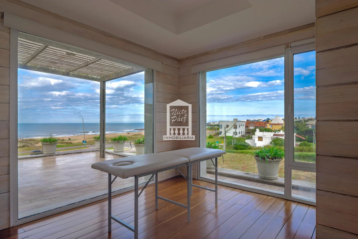 En planta alta se encuentra la suite principal con plena vista al mar, amplio vestidor, baño con hidromasaje, terraza con living de jardín. También en planta alta, sala de masajes con baño.