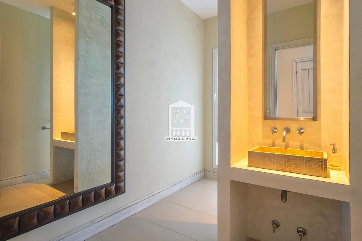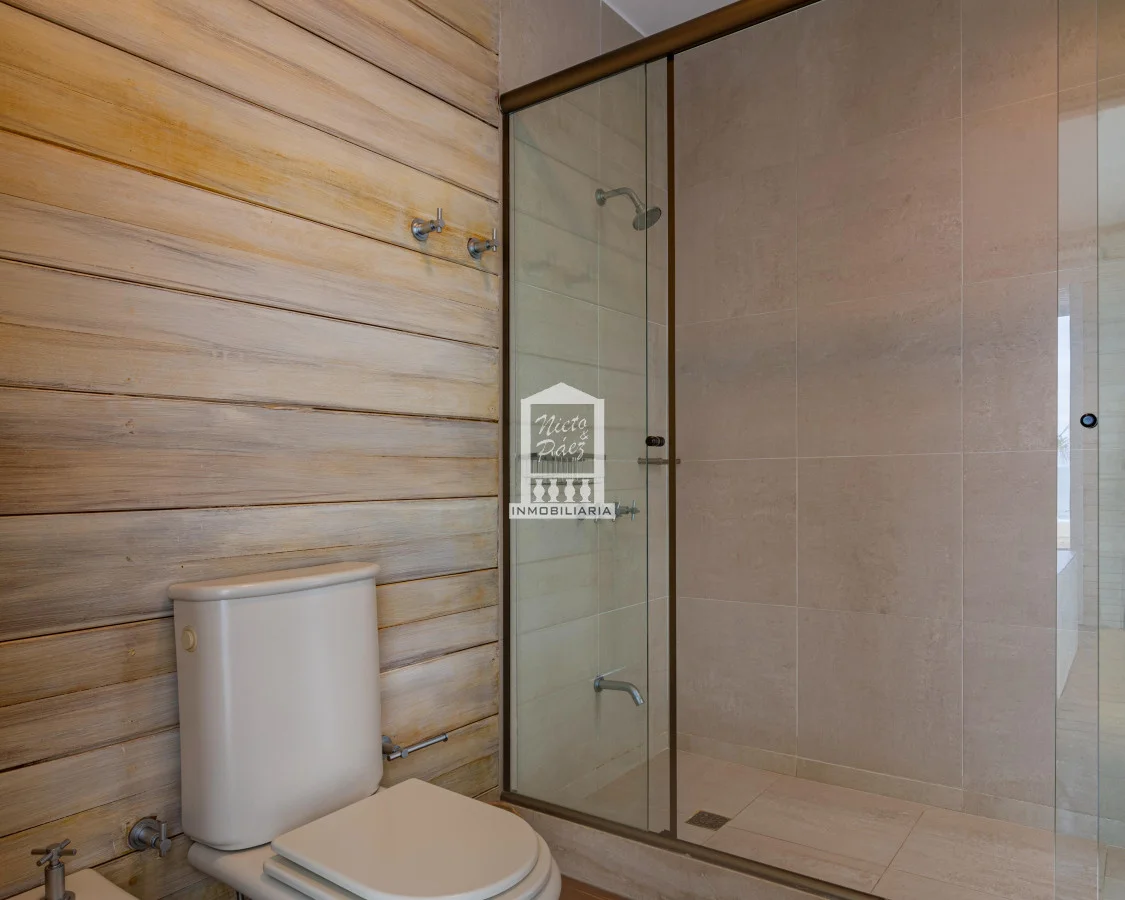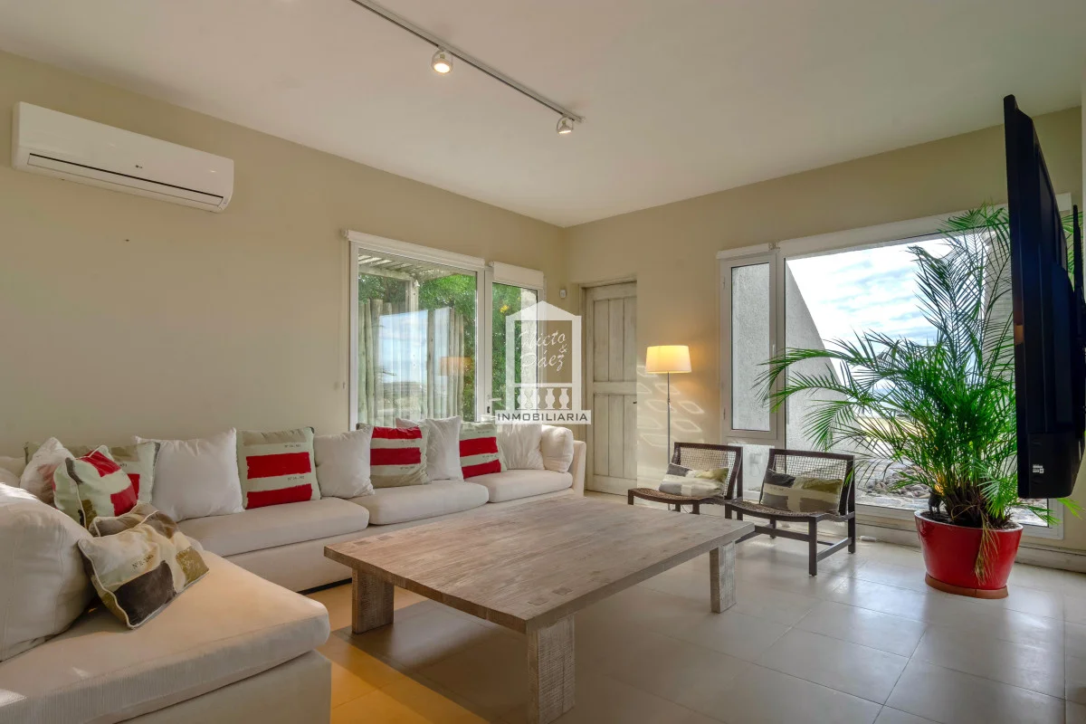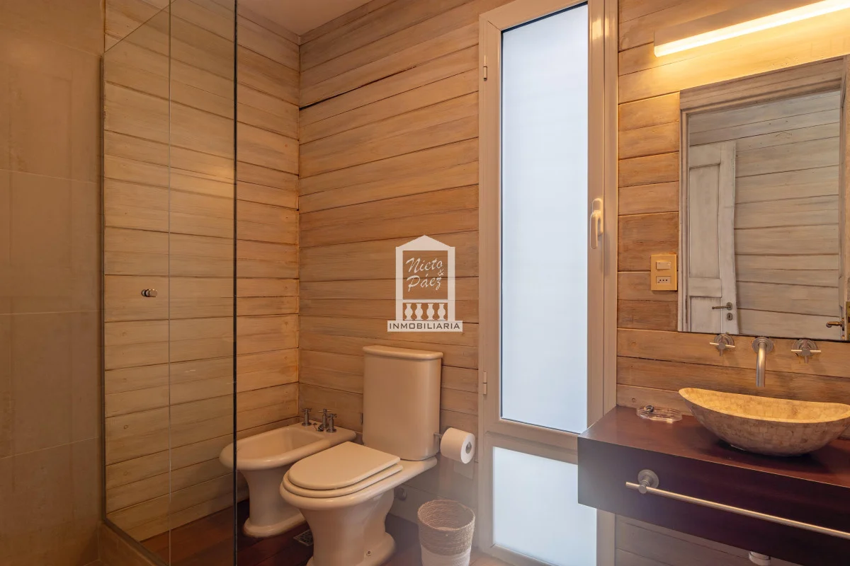 En planta alta se encuentra la suite principal con plena vista al mar, amplio vestidor, baño con hidromasaje, terraza con living de jardín. También en planta alta, sala de masajes con baño.