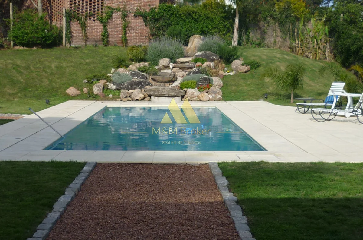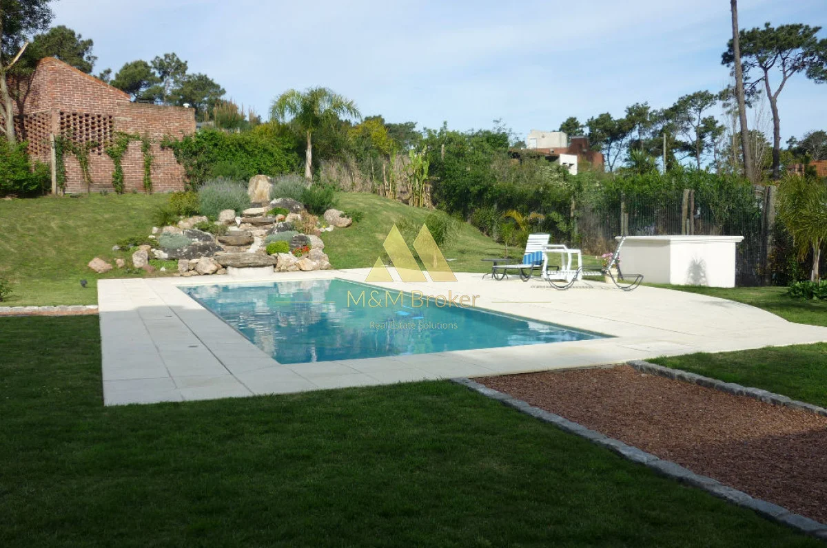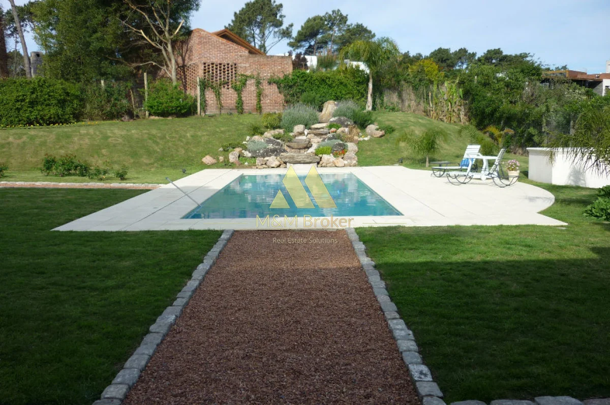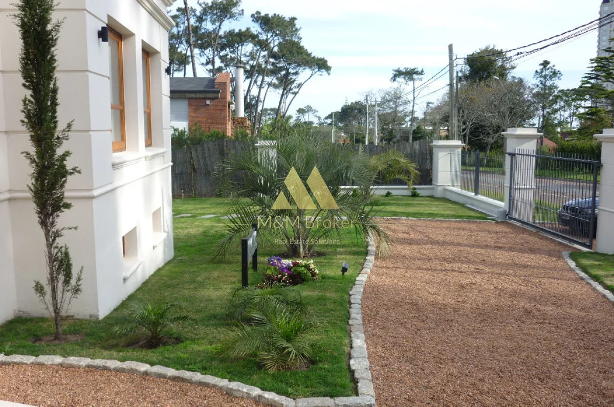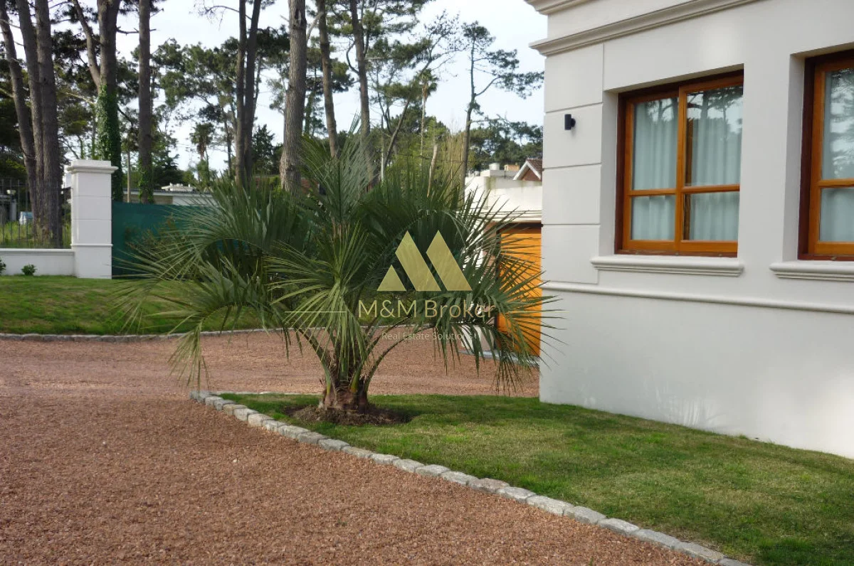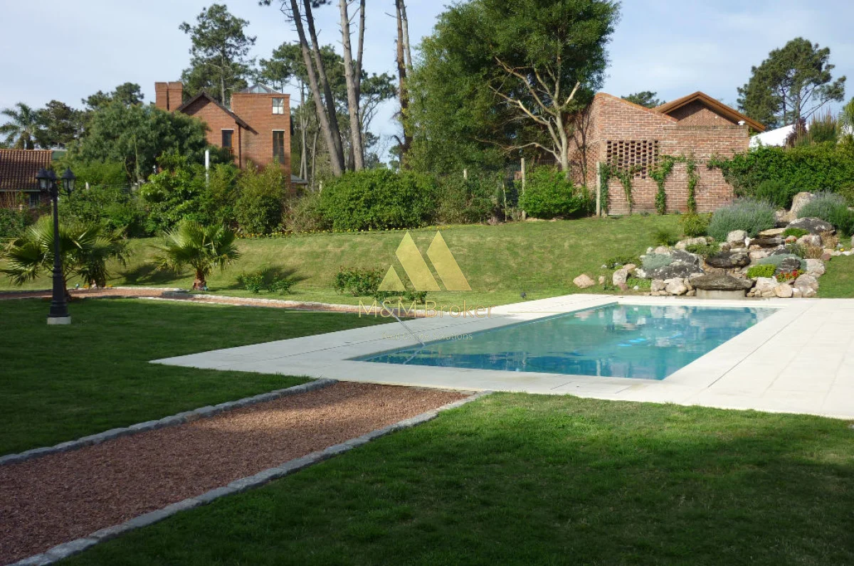 A pocas cuadras del mar, importante casa de estilo, 5 suites, gran recepcion, 2 livings, comedor, cocina, amplia barbacoa con cava, piscina climatizada, sauna, doble garage, casa de caseros y lavadero.