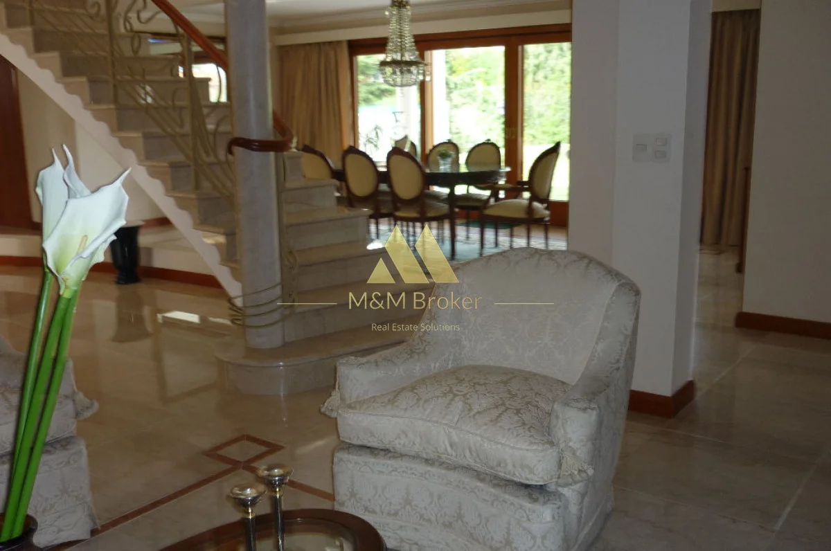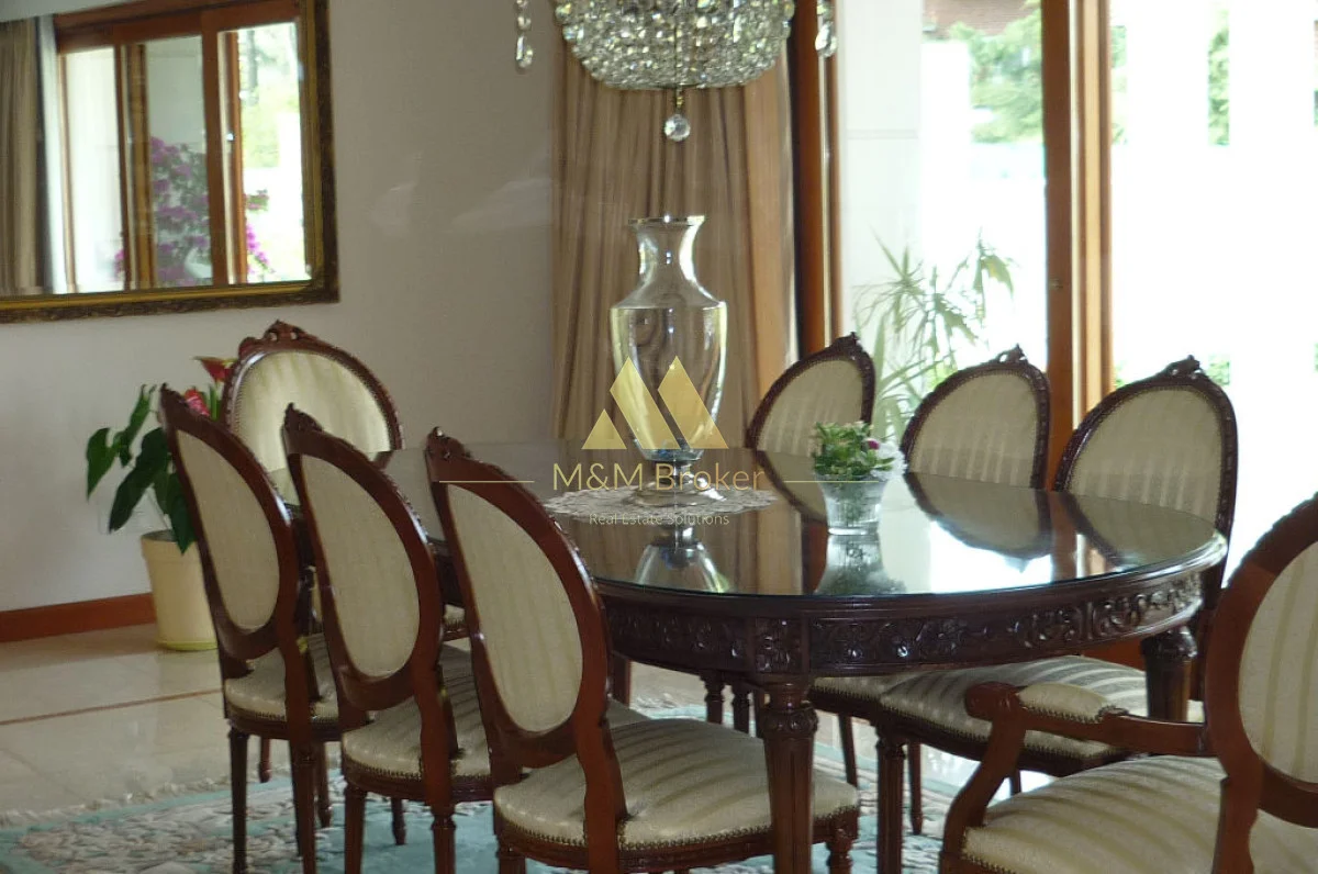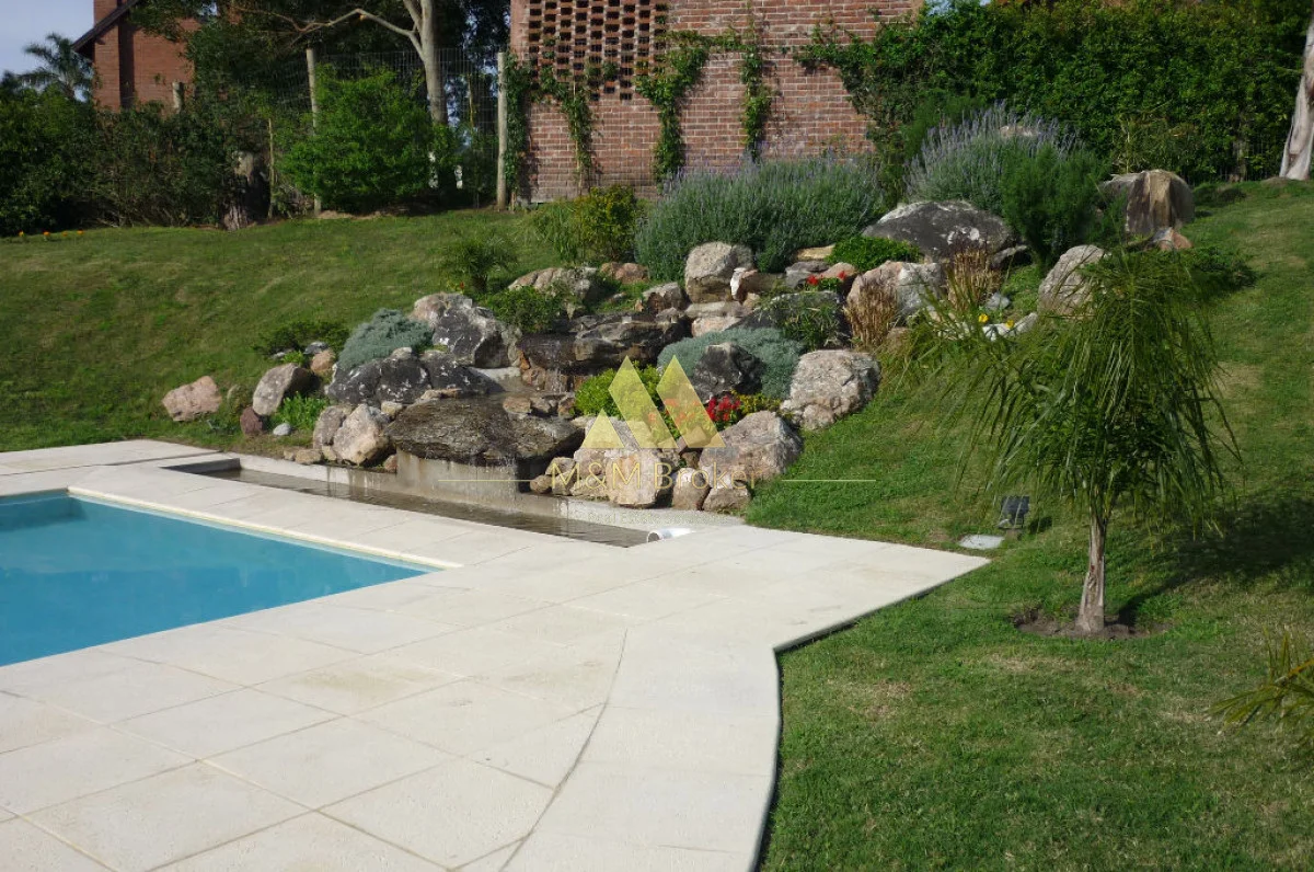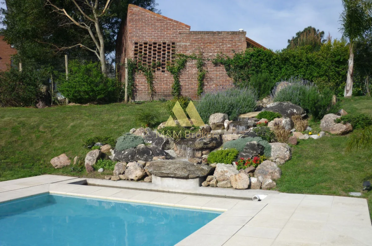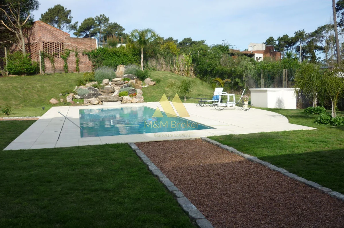 A pocas cuadras del mar, importante casa de estilo, 5 suites, gran recepcion, 2 livings, comedor, cocina, amplia barbacoa con cava, piscina climatizada, sauna, doble garage, casa de caseros y lavadero.
