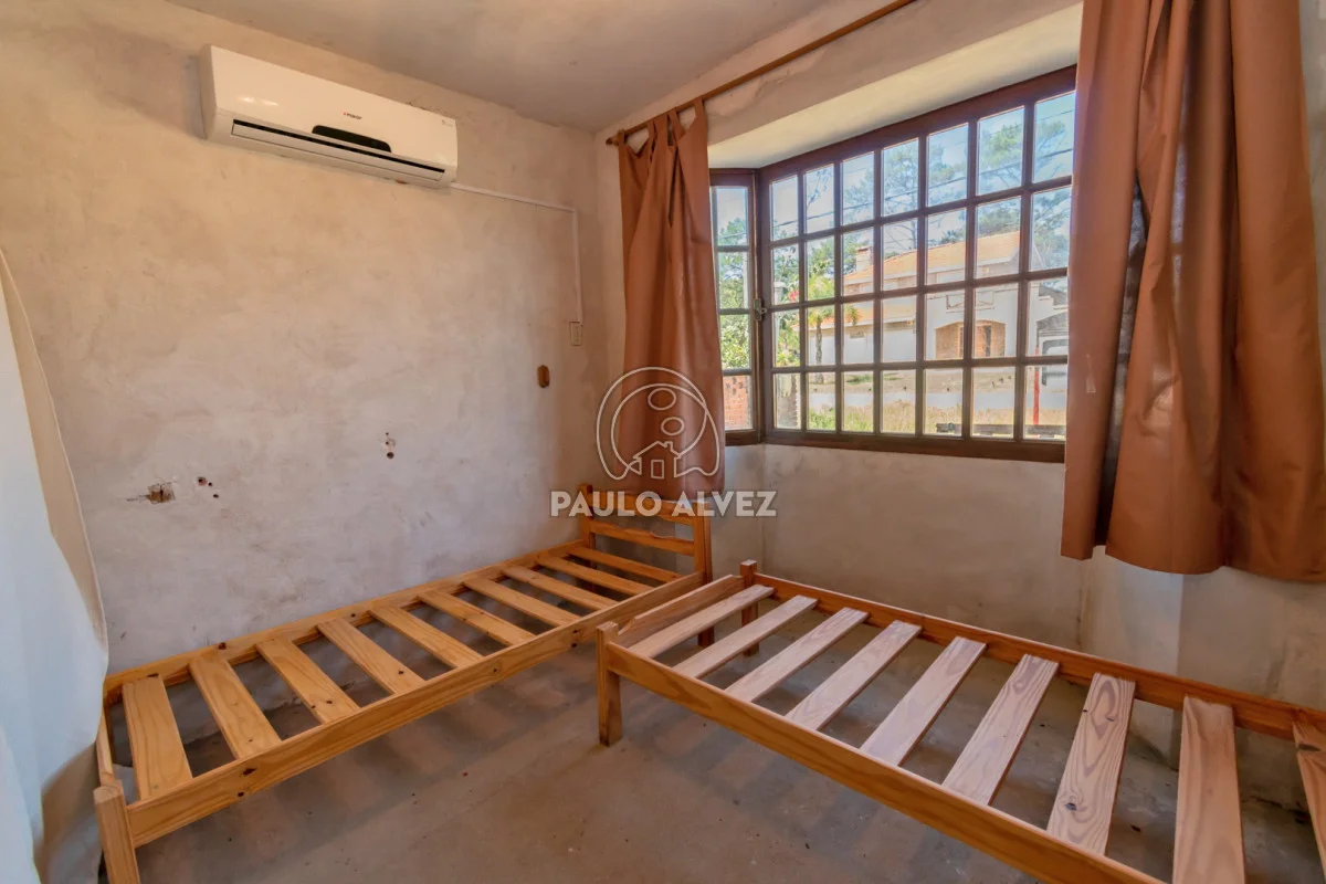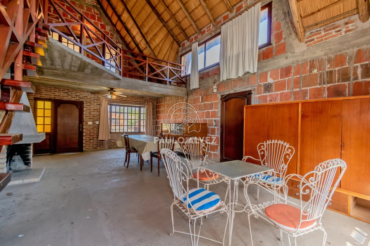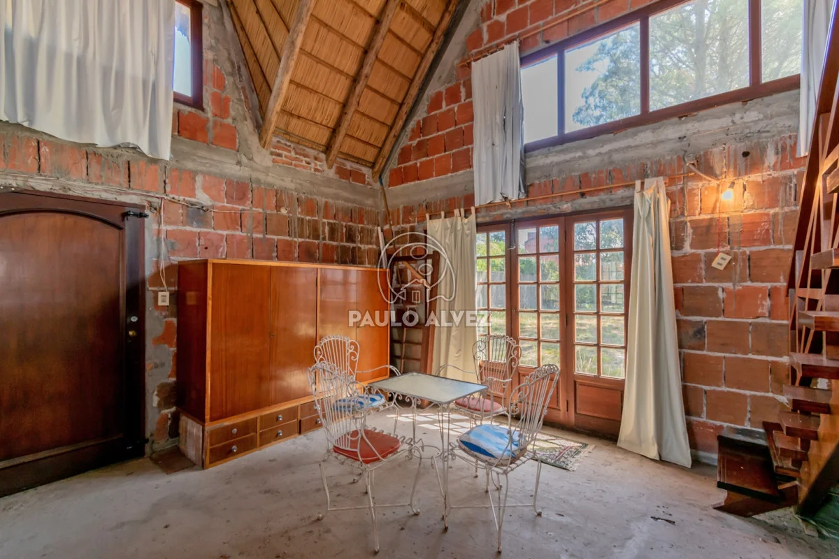 Propiedad en uno de los barrios más codiciados de Piriápolis a tan solo 250 metros del mar. Emplazada sobre predio de 488m², 112.62m² edificados. Construcción tradicional, techo de quincho. Distribuida en dos plantas; planta baja: living-comedor con estufa a leña, cocina definida, dormitorio principal y dos baños. Planta alta; ingreso por escalera hacia un descanso, segundo dormitorio y tercer dormitorio, baño completo con mampara de vidrio. Fondo con hermoso parque. Excelente ubicación para vivir todo el año. No dude en consultar por más información.