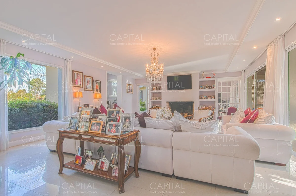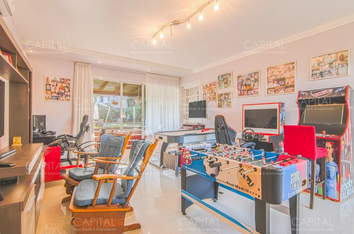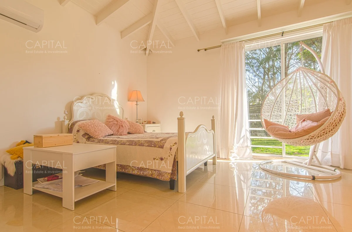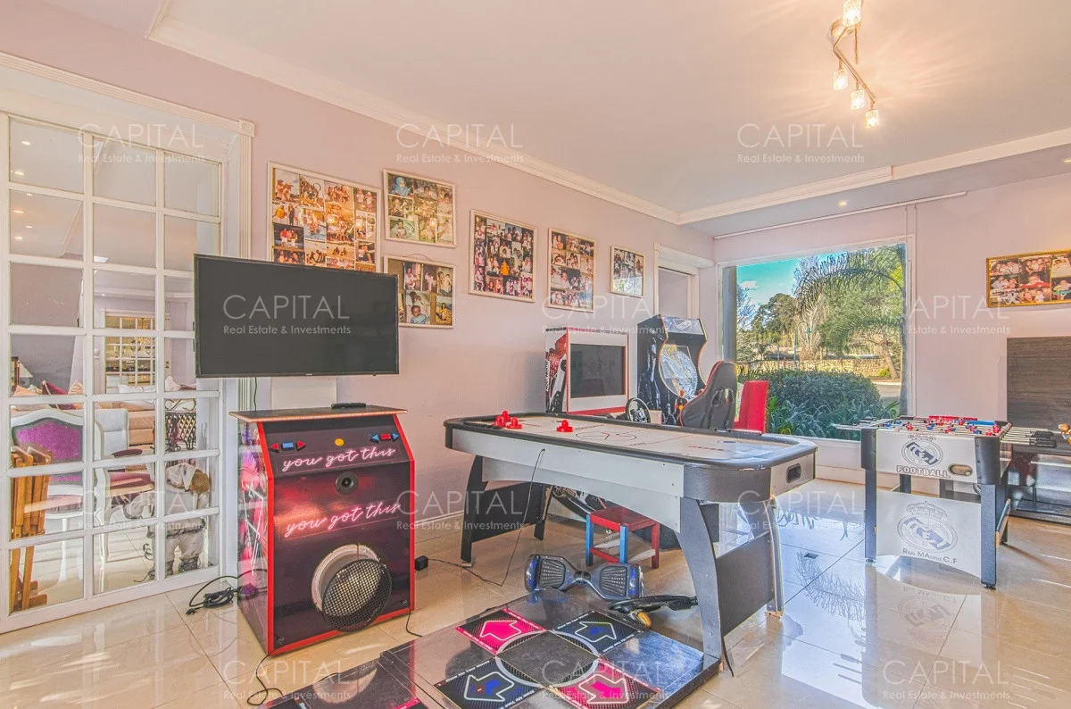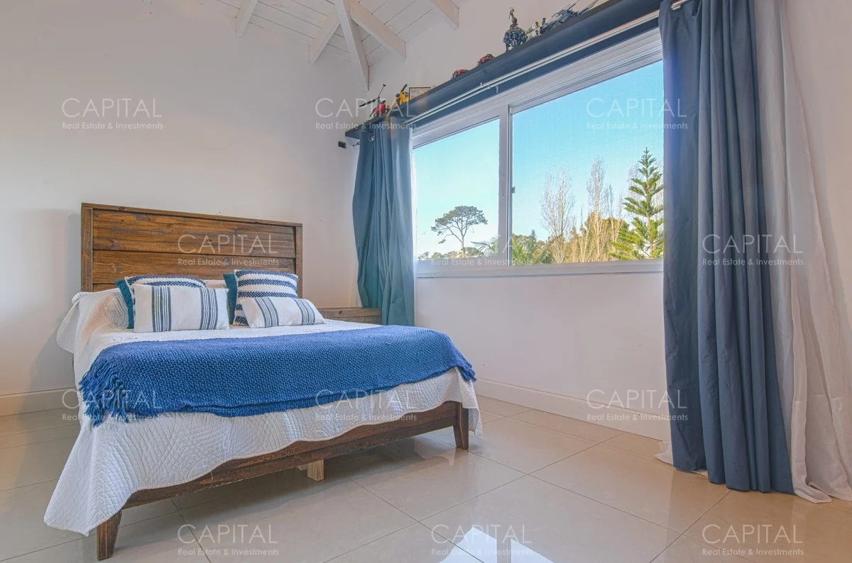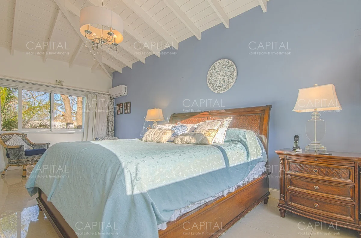 Casa en Venta en Barrio Privado de Punta del Este Tiene 5 dormitorios, 4 de ellos en suite con vestidores todos, 5 baños, 3 de ellos con bañeras y ducha Living de 80 m más sala de juegos separado, comedor separado, Cocina amplia Parrillero de 100 m Pérgola de70 m Piscina de 11x4.5 Lavadero Todas las habitaciones con aire Estufa a leña en el living Televisión en todos los ambientes Cuenta con 5 Dormitorios 5 Baños 5 Suites Cocina : Amplia, Living Comedor Terreno : 1491 m2 Edificado : 500 m2 Consulte con nuestros asesores. Referencia Interna : Tera-31695