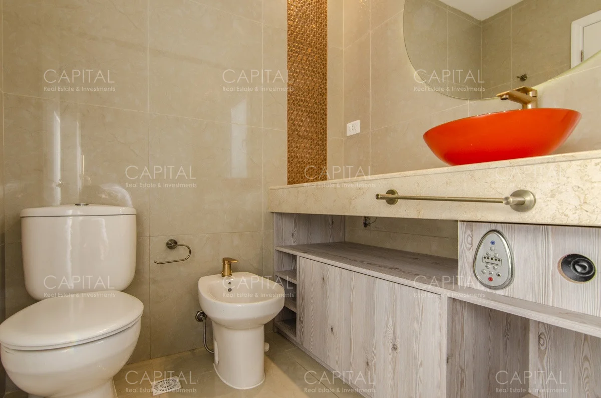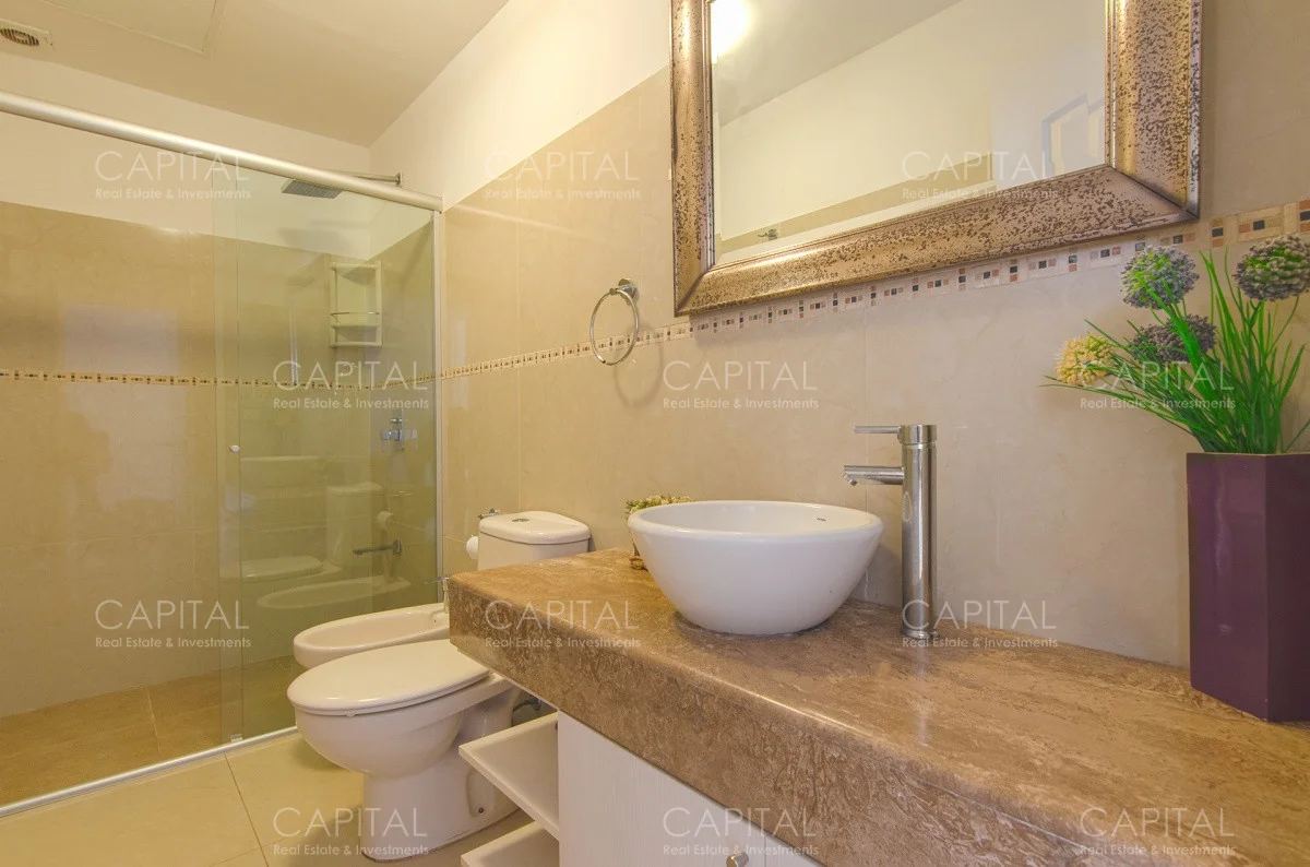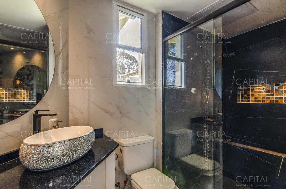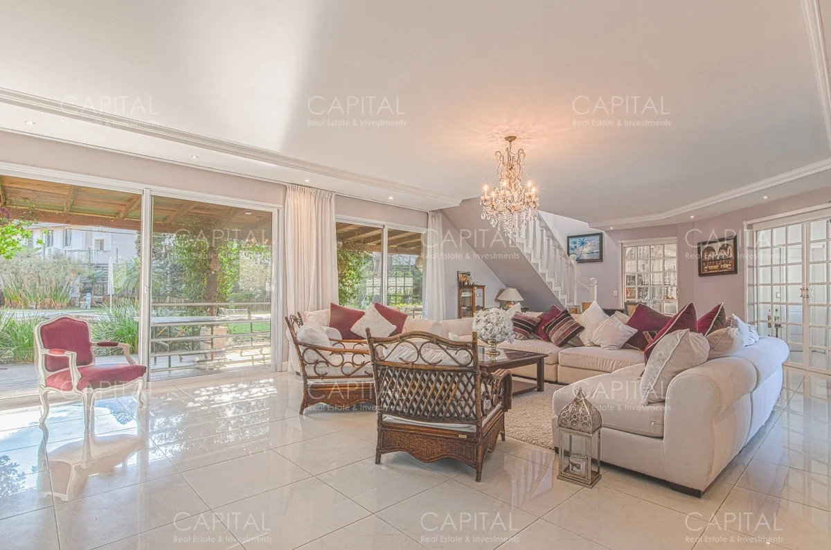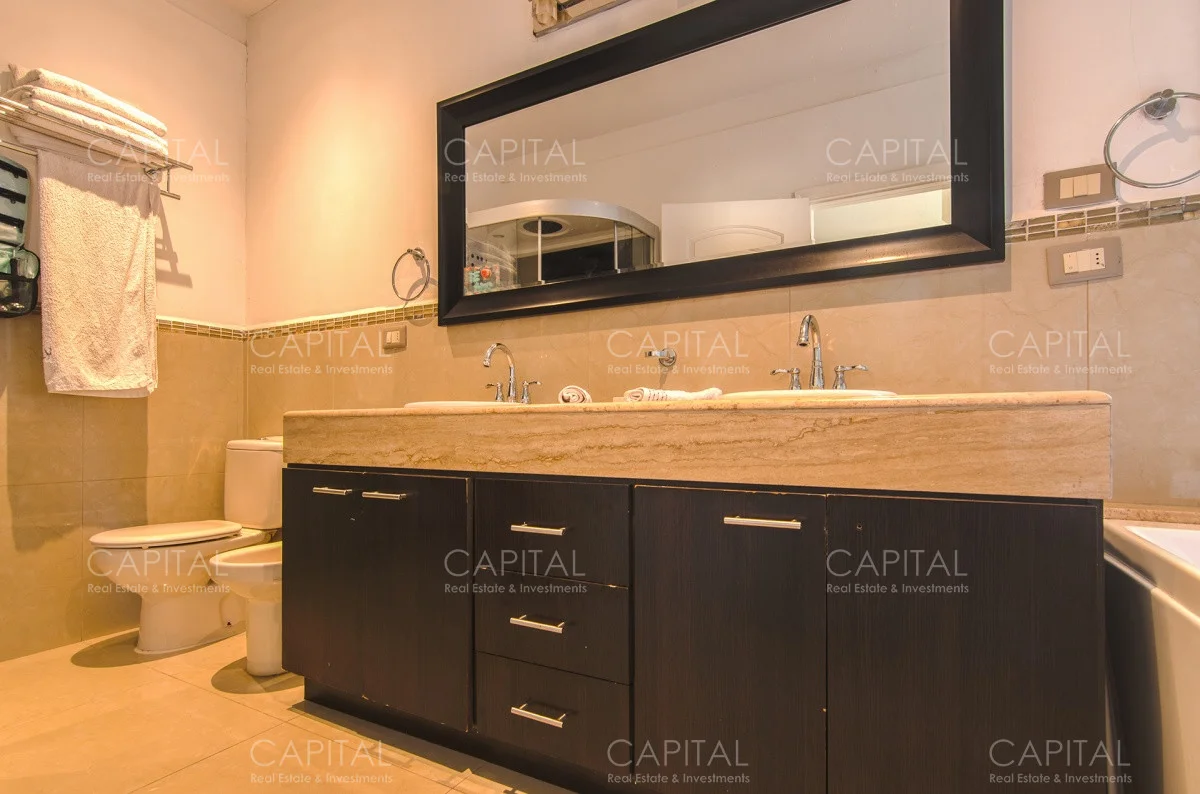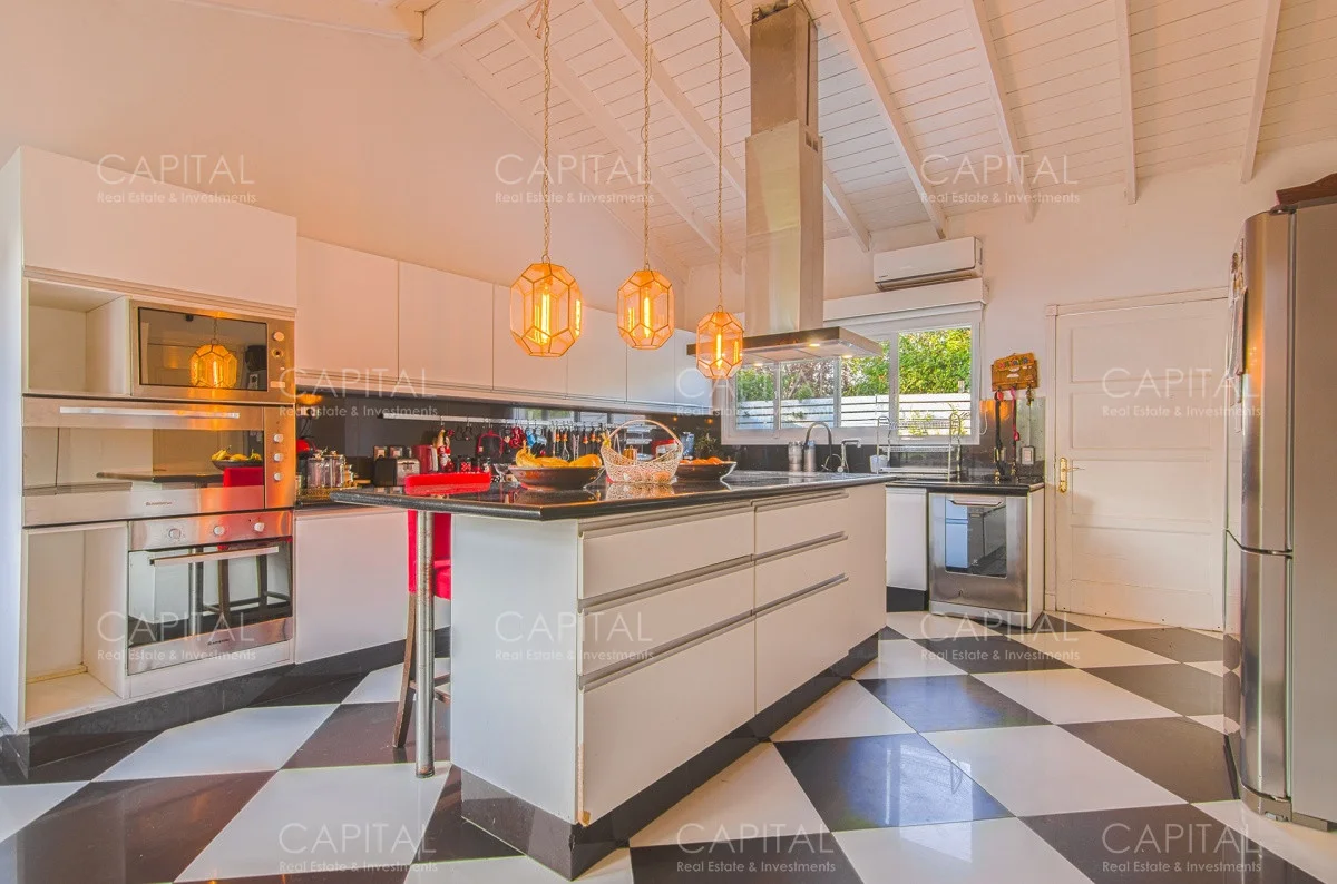 Casa en Venta en Barrio Privado de Punta del Este Tiene 5 dormitorios, 4 de ellos en suite con vestidores todos, 5 baños, 3 de ellos con bañeras y ducha Living de 80 m más sala de juegos separado, comedor separado, Cocina amplia Parrillero de 100 m Pérgola de70 m Piscina de 11x4.5 Lavadero Todas las habitaciones con aire Estufa a leña en el living Televisión en todos los ambientes Cuenta con 5 Dormitorios 5 Baños 5 Suites Cocina : Amplia, Living Comedor Terreno : 1491 m2 Edificado : 500 m2 Consulte con nuestros asesores. Referencia Interna : Tera-31695