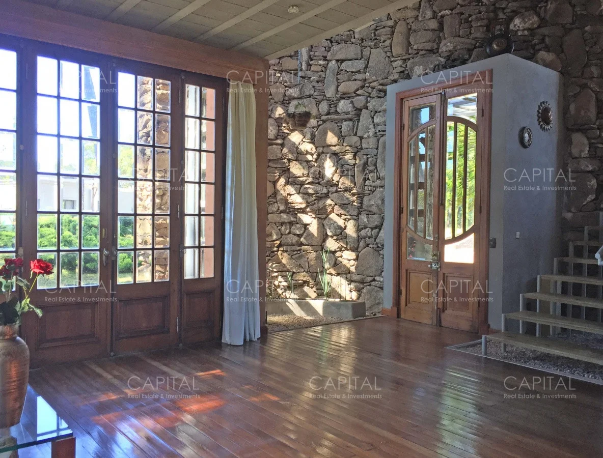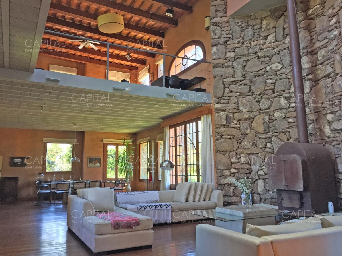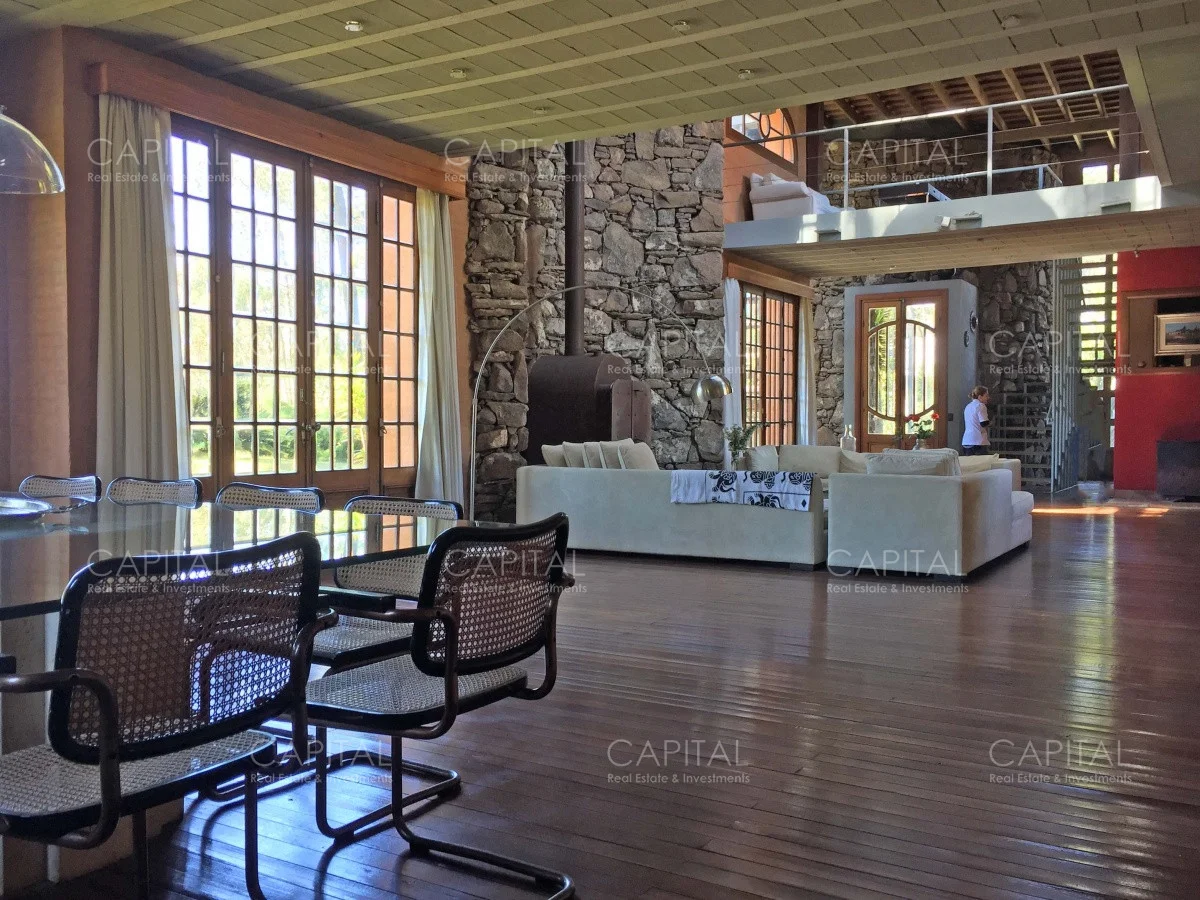 Desarrollada en dos plantas, en la primera tenemos un gran living-comedor en doble altura con estufa inteligente. Cuenta con toilette y una gran cocina con lavadero. La barbacoa tiene parrillero, horno de pizza, hogar a leña y grandes ventanales de piso a techo con salida al jardín.