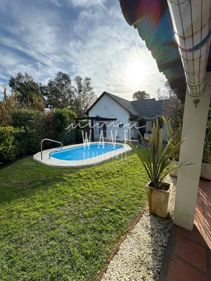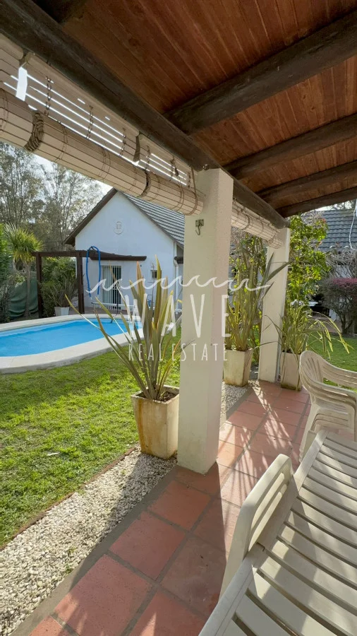 La Barra, a 1 cuadra del arroyo, zona El Tesoro, casa de 3 dormitorios, 2 baños, piscina climatizada, jardín, parrillero. Muy disfrutable y cómoda para vacacionar o para vivir todo el año, por su excelente ubicación. Referencia Interna : Tera-4451