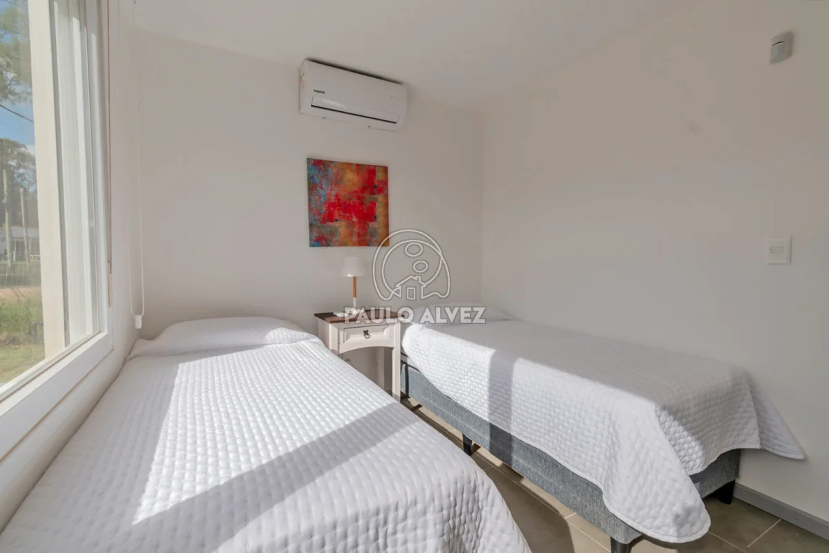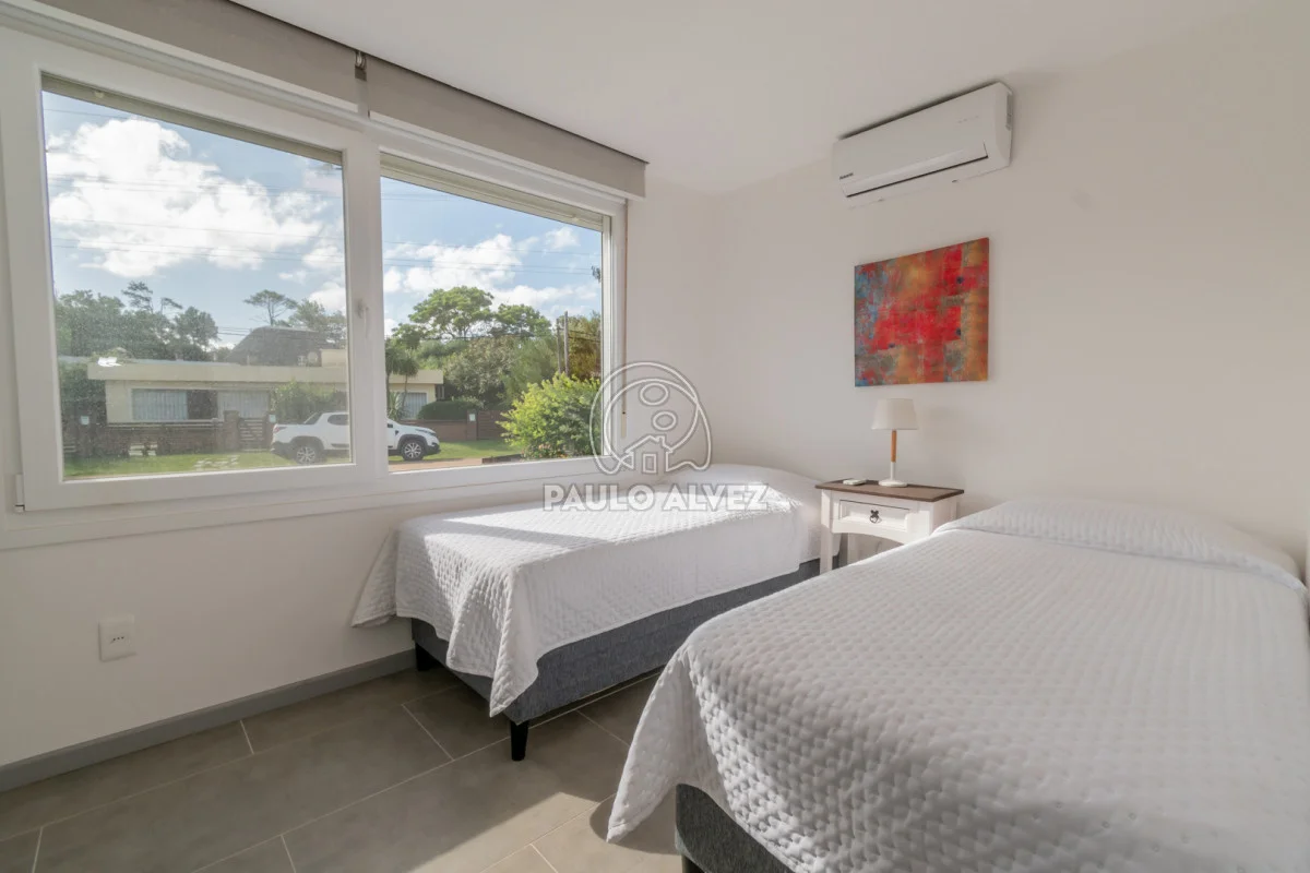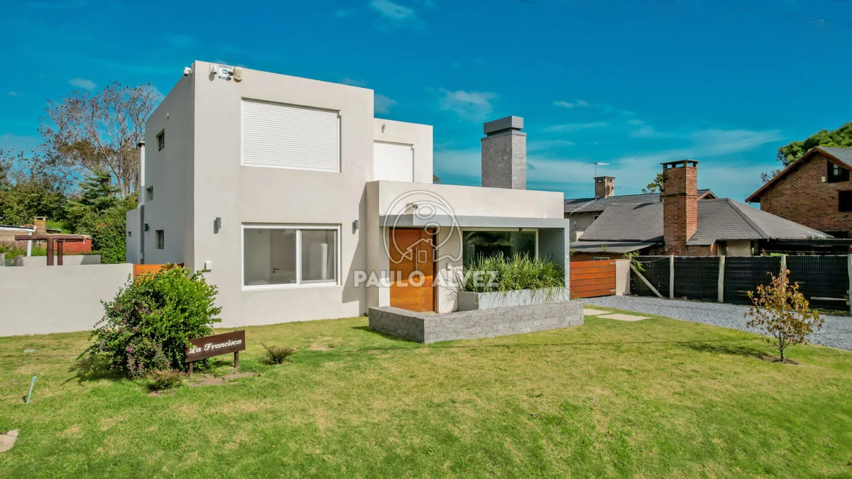 La Francisca a 150 metros del mar!! Ubicada en el corazón de San Francisco. Moderna construcción de dos plantas,  distribuida por living luminoso con estufa a leña, aire acondicionado, comedor y cocina definida por barra.Primer  dormitorio al frente. Baño completo.  Acceso a planta alta por cómoda escalera, dormitorio matrimonial luminoso , cómodo tercer dormitorio, todos los dormitorios cuentan con aire acondicionado. Segundo baño completo. Parrillero cubierto, tercer baño. Jardín al fondo con piscina climatizada. Acceso para coches.