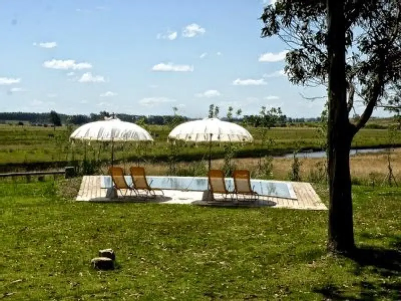 Esta chacra cuenta con una capacidad para alojar aprox. 22 personas en un entorno natural inigualable. Todos los dormitorios equipados con aire acondicionado. Living comedor, cocina, deck con muelle y tajamar con espectaculares vistas. Son tres casas y dos bungalows totalmente independientes. La casa principal consta de dos dormitorios, dos baños, living, comedor-cocina integrada y escritorio. La 2da casa con deck decorado estilo marroquí de frente al arroyo, consta de dos dormitorios, un baño, living comedor con cocina integrada, y parrilla. Los dos bungalos constan con dos camas individuales y un baño; equipados con heladera, microondas y tv satelital. La cuarta casa cuenta con un dormitorio, baño, estufa a leña y aire acondicionado, placares amplios y una luminosa cocina. Ubicada a tan sólo 8 kilómetros de José Ignacio y a 15km de La Barra.