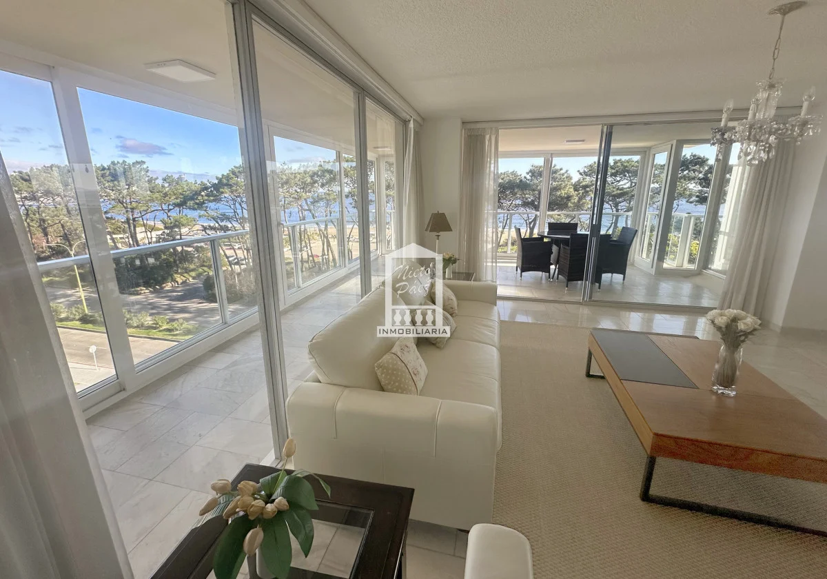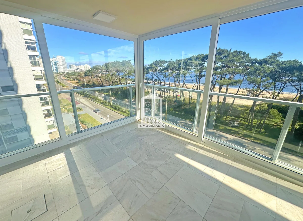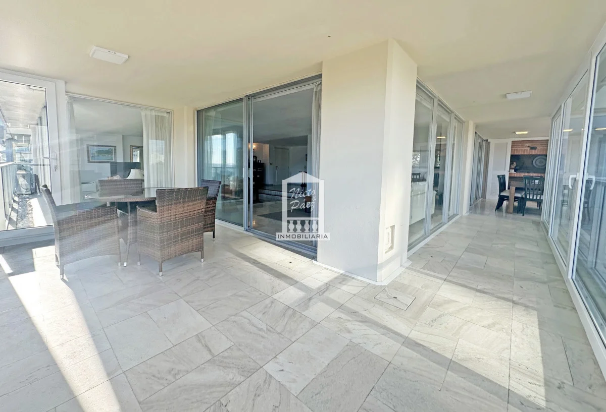 Terraza enorme en L con parrillero propio, con vistas al mar. La terraza cuenta con cerramientos nuevos.