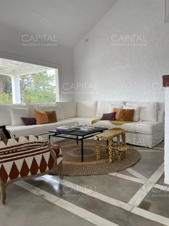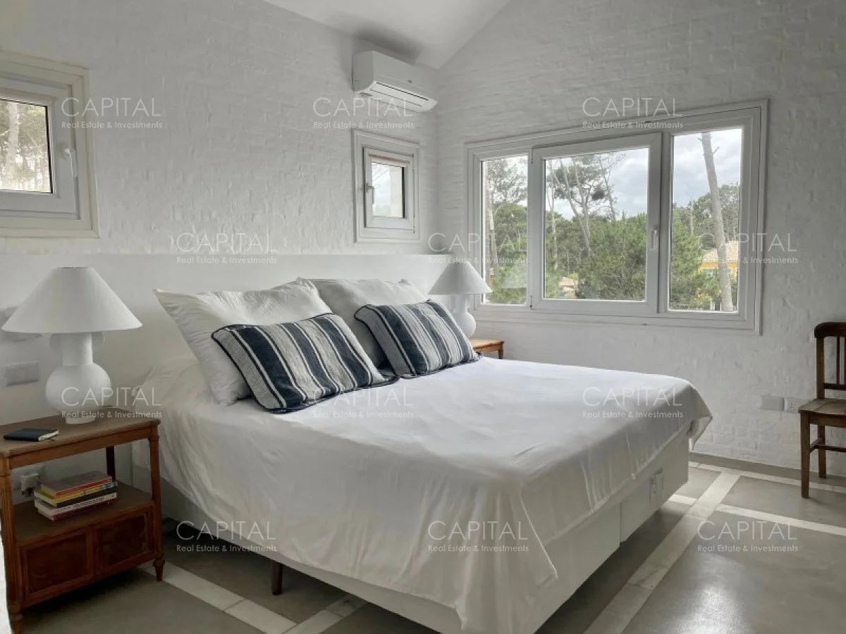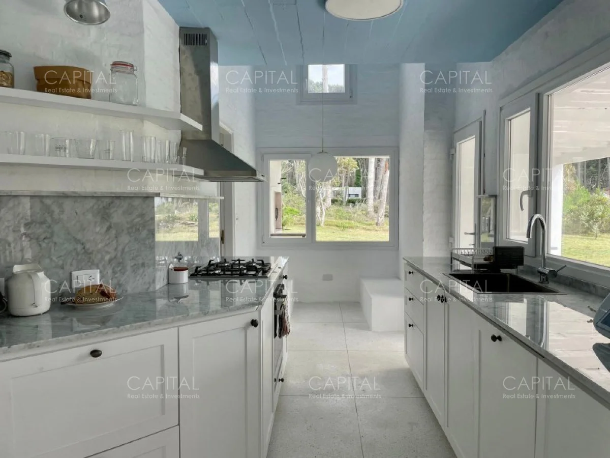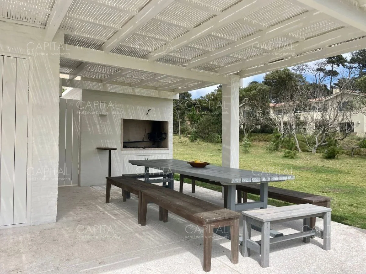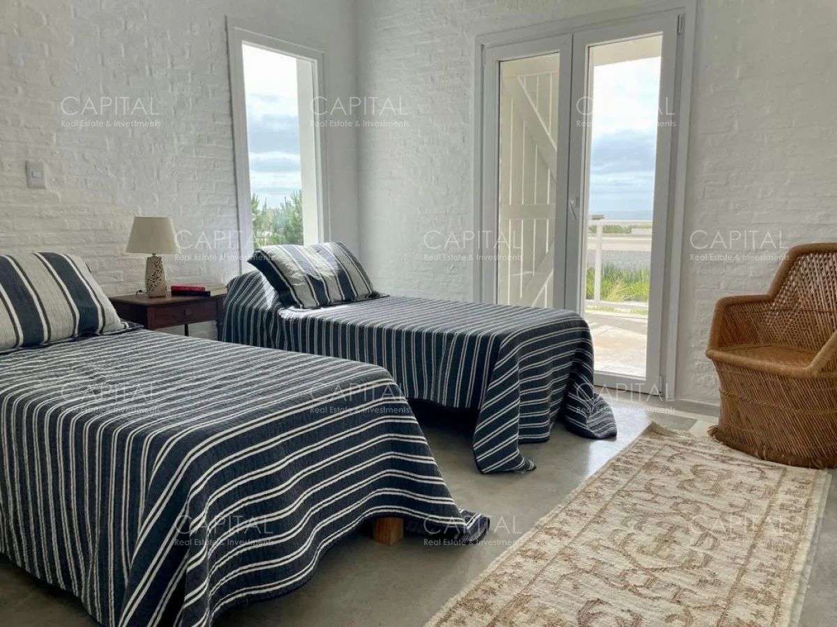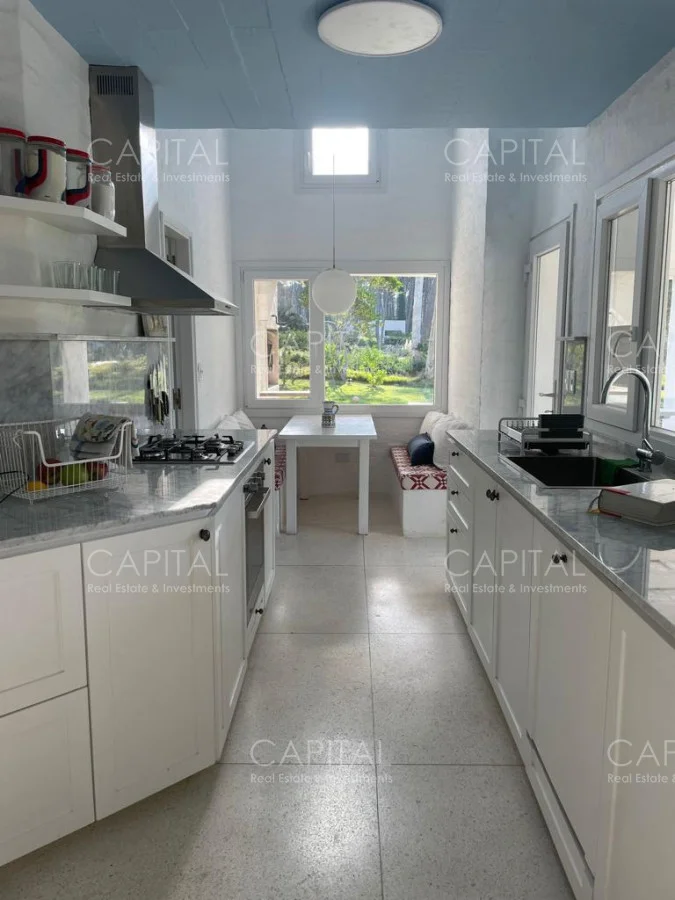 Excelente casa de cuatro dormitorios, dos de ellos en suite, más dormitorio de servicio con baño. Cuenta con living comedor, cocina, terraza con vista al mar, parrillero techado y garage.
