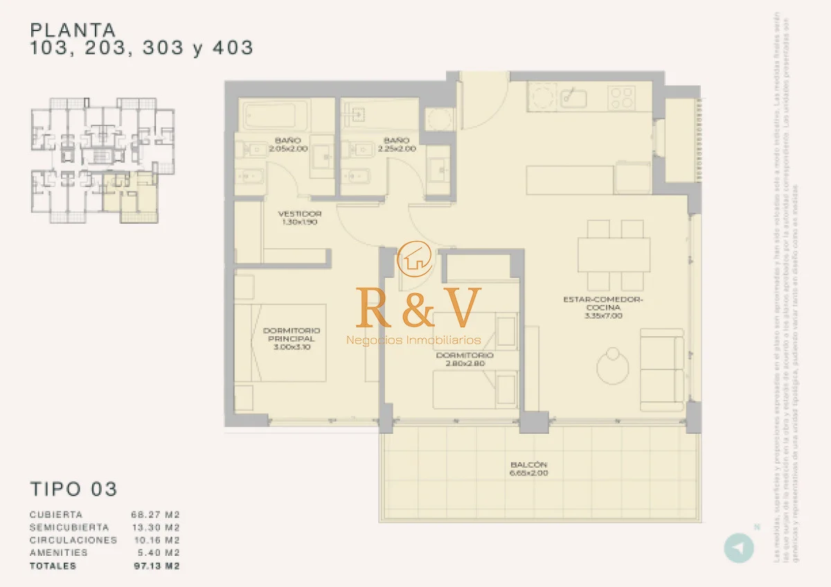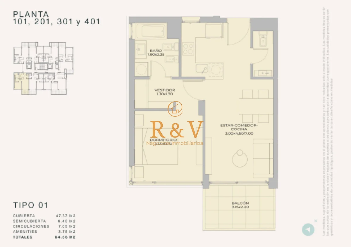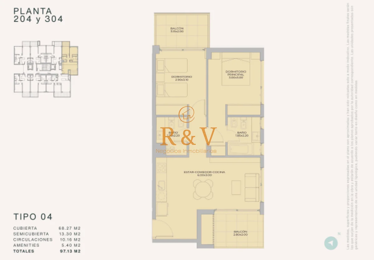 Con una superficie total de 65 m², este espacio ha sido diseñado para maximizar la luz natural y la sensación de amplitud. La cocina integrada se conecta armoniosamente con el living y el comedor, creando un ambiente ideal para disfrutar de momentos inolvidables con familiares y amigos. Además, contarás con el servicio de mucamas, asegurando que tu hogar siempre esté impecable.