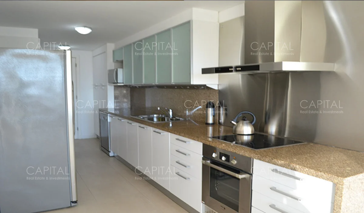 Amplio living comedor, balcón terraza con cerramiento, baño social, tres dormitorios en suite, amplia cocina con comedor diario, dependencia de servicio en suite, terraza lavadero, garaje para dos autos.