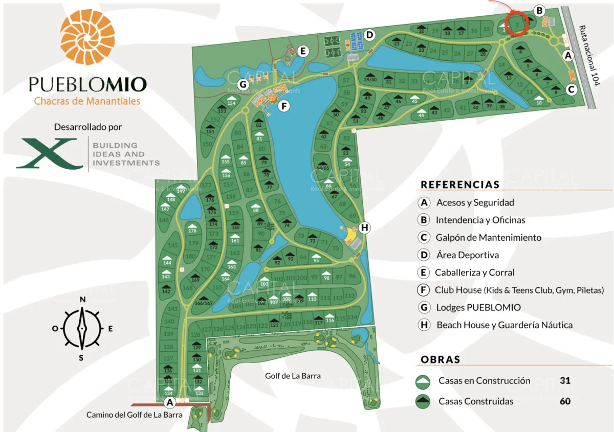Excelente lote en barrio cerrado Pueblo Mio ubicado en Ruta 104 en Manantiales. Barrio con seguridad y amenities rodeado con mucha naturaleza.. Cuenta con 4.000 mts ideal para tu hogar rodeado de naturaleza y a pocos minutos del mar...