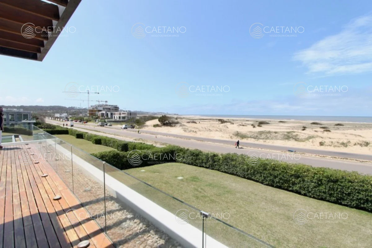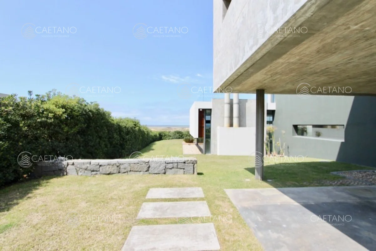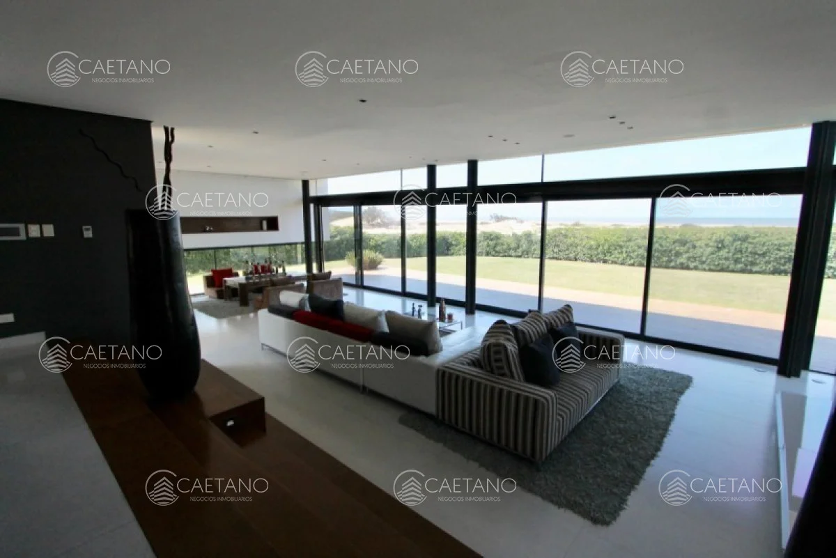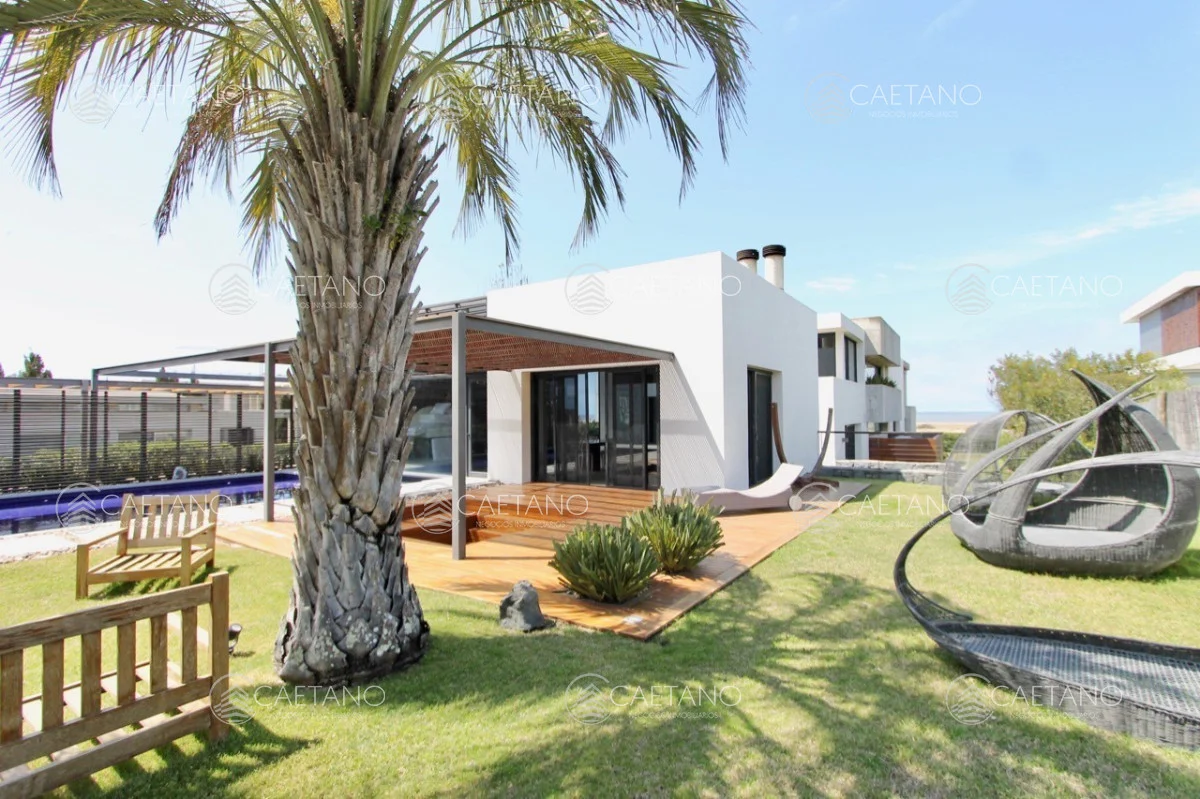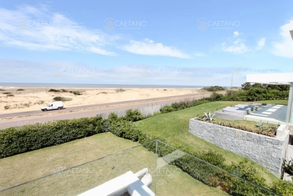 Ubicada en primera línea al mar en Laguna Blanca. Diseño moderno con terreno muy bien aprovechado, vistas abiertas a la playa y seguridad. Cuenta con amplio living comedor con chimenea, toilette y cocina con comedor diario. Suite principal con terraza, vestidor y jacuzzi, y 2 suites más playroom. Subsuelo con cava de vinos, dormitorio con baño y proyector para cine. Barbacoa cerrada con parrillero y pileta climatizada. Salida al jardín con chill out y pileta exterior. Área de servicio con lavadero, dependencia de servicio con cucheta, baño completo y garaje para 2 autos. Jardín que rodea toda la casa. Sistema de domótica integrada, alarma y cámaras.