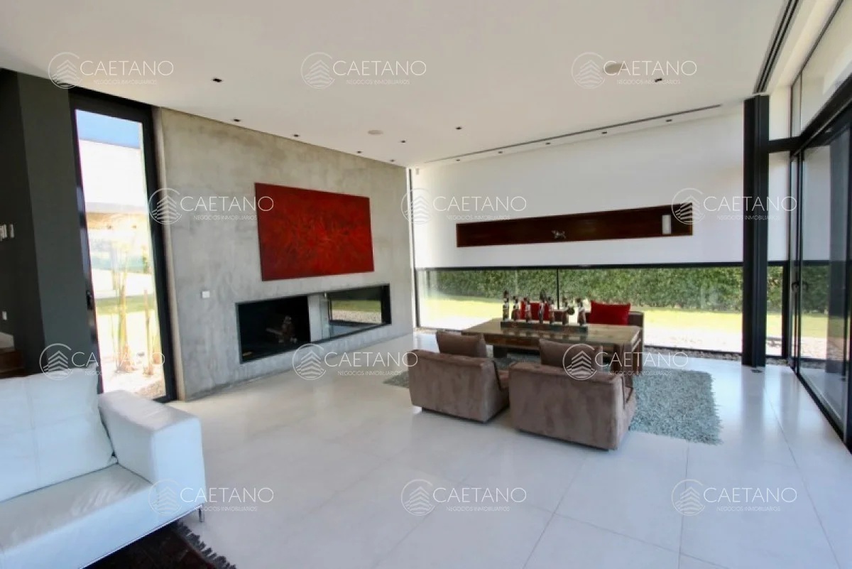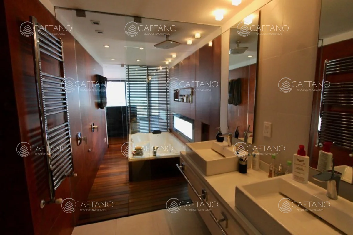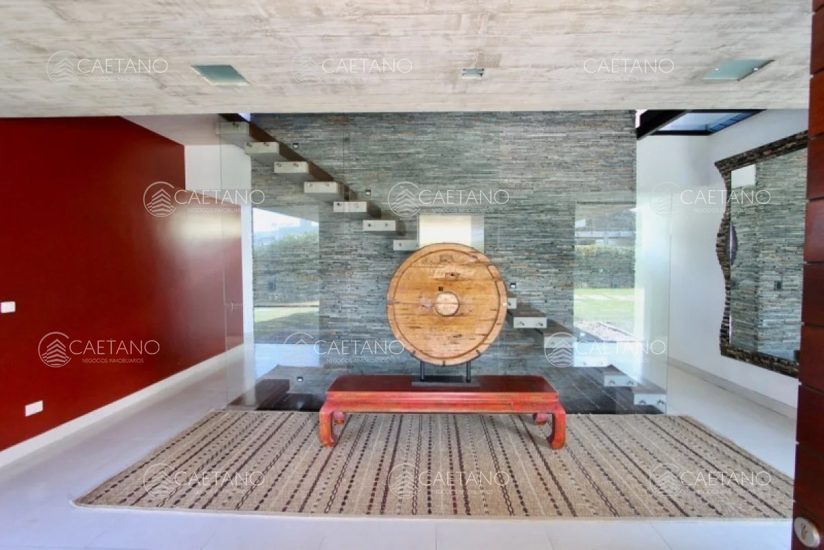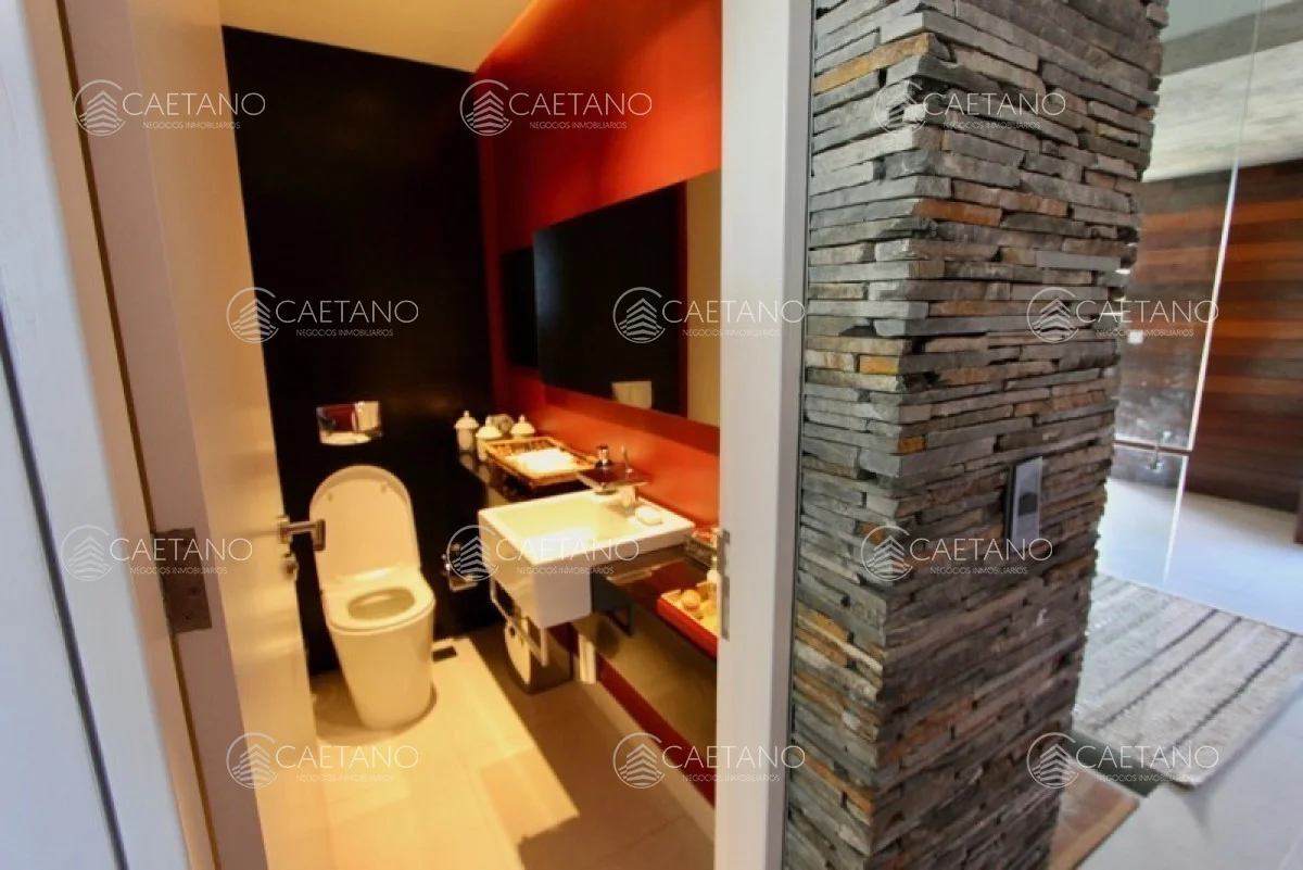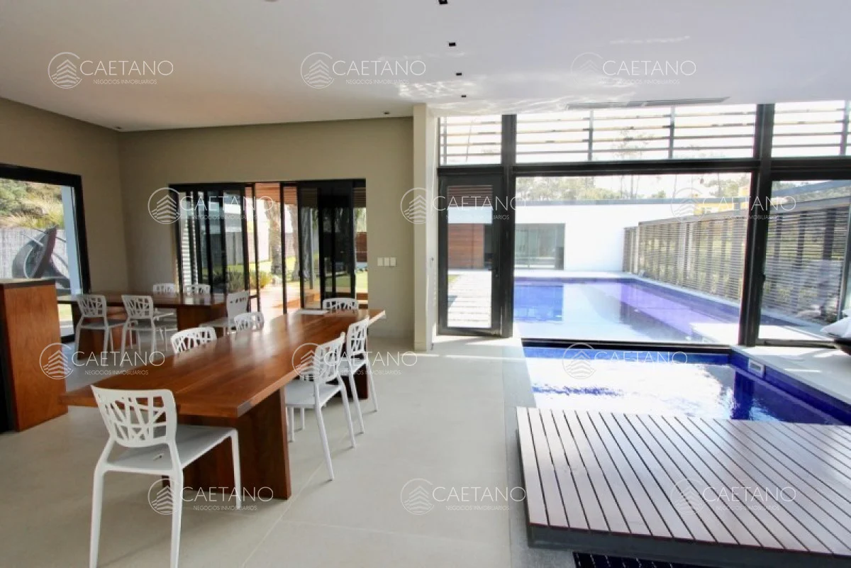 Ubicada en primera línea al mar en Laguna Blanca. Diseño moderno con terreno muy bien aprovechado, vistas abiertas a la playa y seguridad. Cuenta con amplio living comedor con chimenea, toilette y cocina con comedor diario. Suite principal con terraza, vestidor y jacuzzi, y 2 suites más playroom. Subsuelo con cava de vinos, dormitorio con baño y proyector para cine. Barbacoa cerrada con parrillero y pileta climatizada. Salida al jardín con chill out y pileta exterior. Área de servicio con lavadero, dependencia de servicio con cucheta, baño completo y garaje para 2 autos. Jardín que rodea toda la casa. Sistema de domótica integrada, alarma y cámaras.