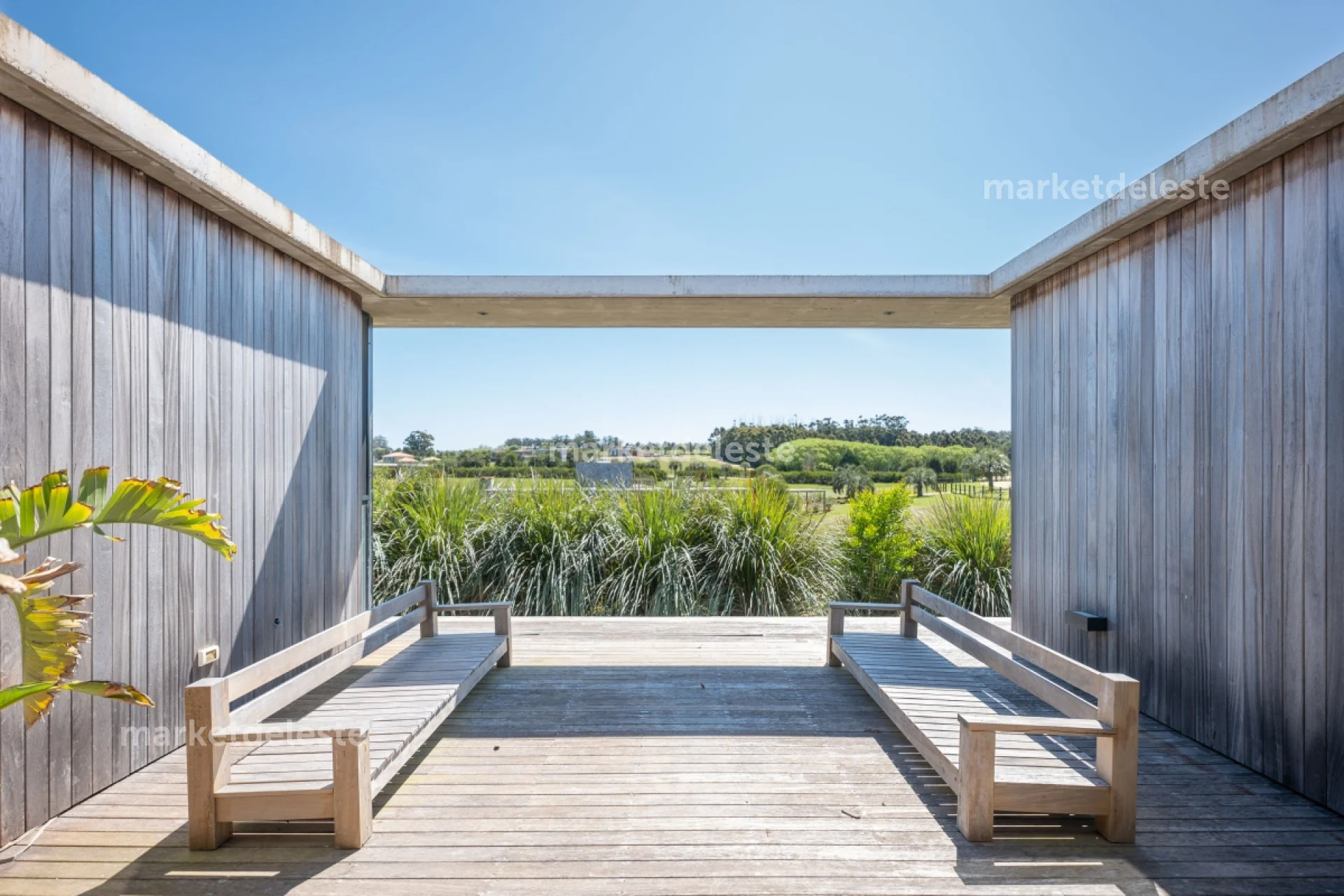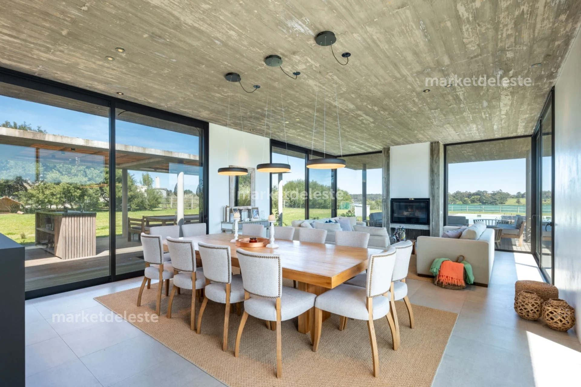 Esta magnifica casa de 4 dormitorios, 5 baños es la definición de lujo y confort. Sumamente luminosa, de amplios ventanales con vistas al verde, lagos y espectaculares arboledas. La casa consta de 2 modulos principales, en el modulo principal se encuentra el living comedor, cocina, comedor diario y toilette, seguido de este bloque, se encuentra el segundo bloque con 3 dormitorios en suite. Separaado casa con dormitorio de huespedes.