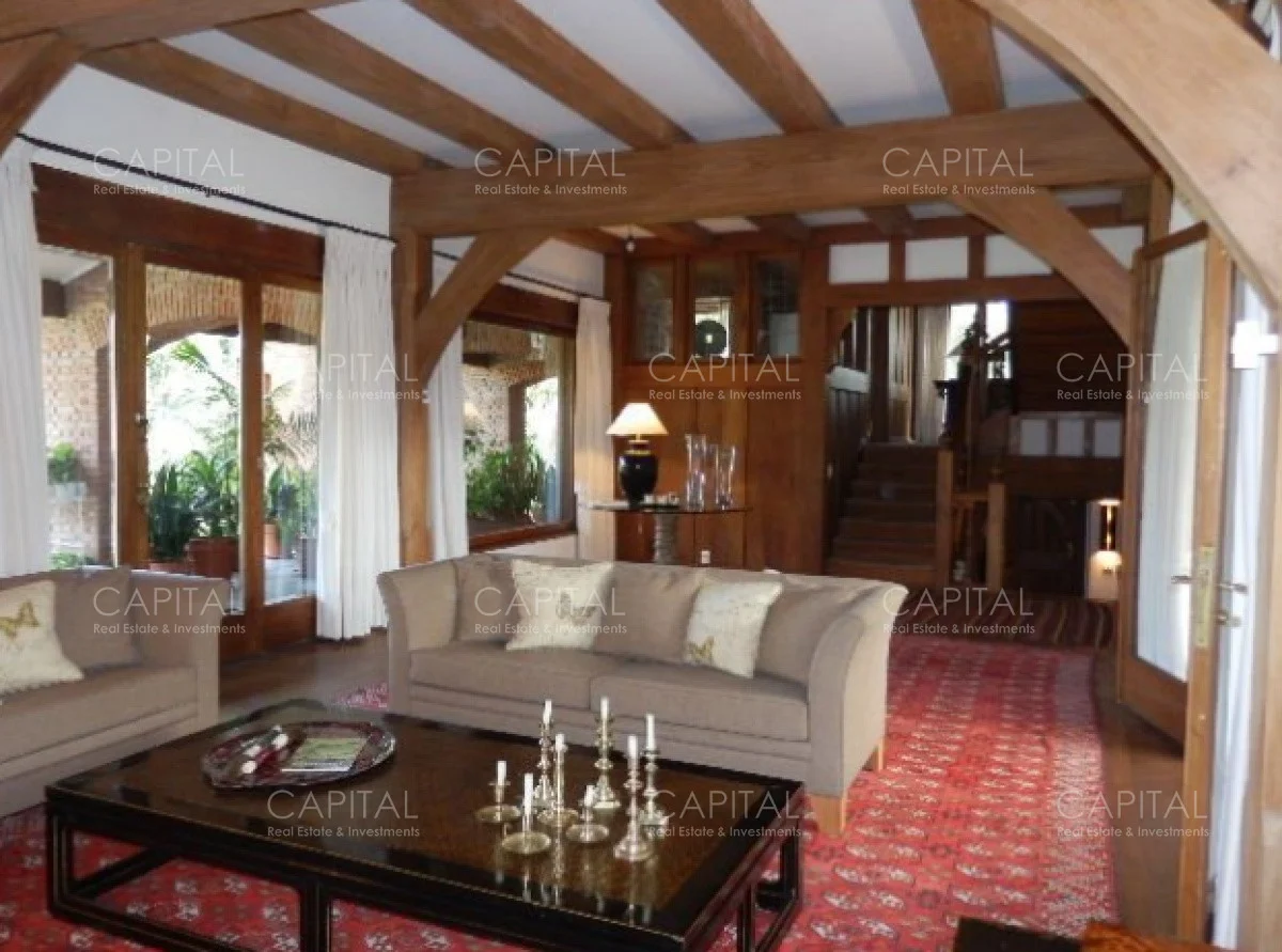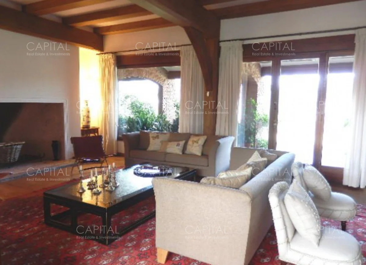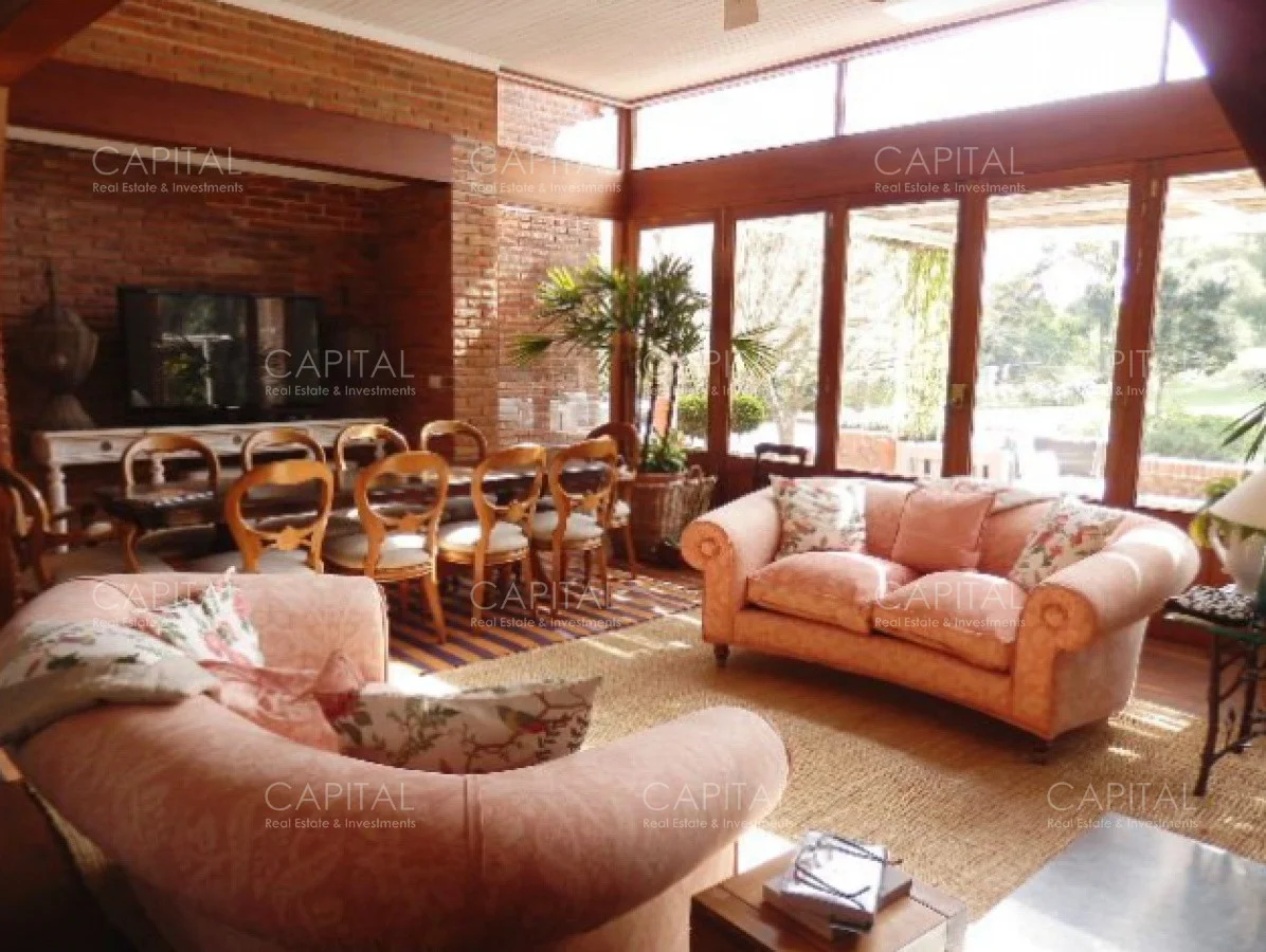 Expendida casa en el Golf frente a Beverly Hills. Espectacular predio con salida a dos importantes calles. Brabacoas, Piscina climatizada, Cava de vinos, biblioteca . Madera de lapacho Brasilero , ascensor, calefacción con radiadores. Calderas italianas a Gasoil para calefaccionar la Pileta . Amplios living con salidas a la pileta y el jardín.