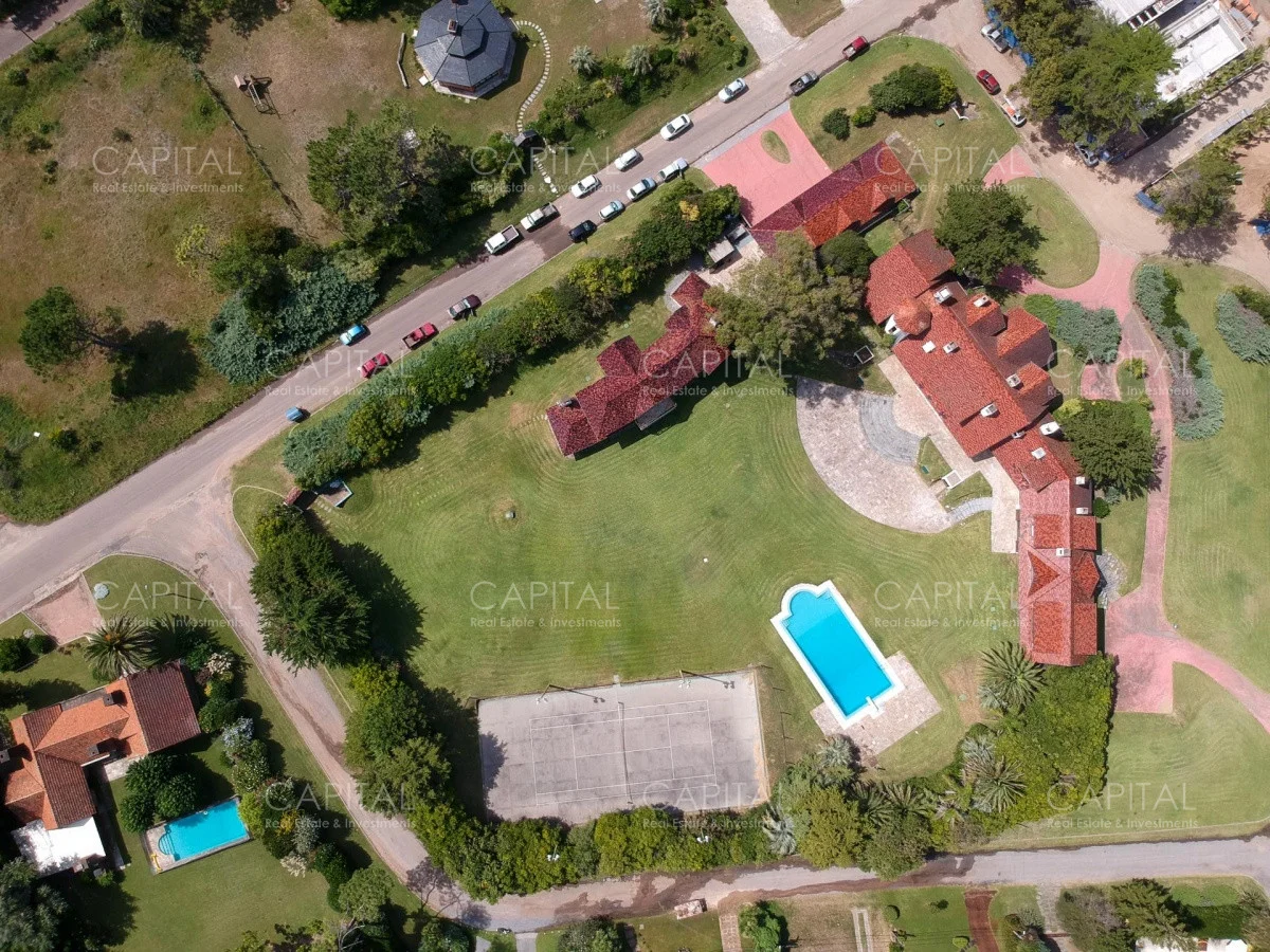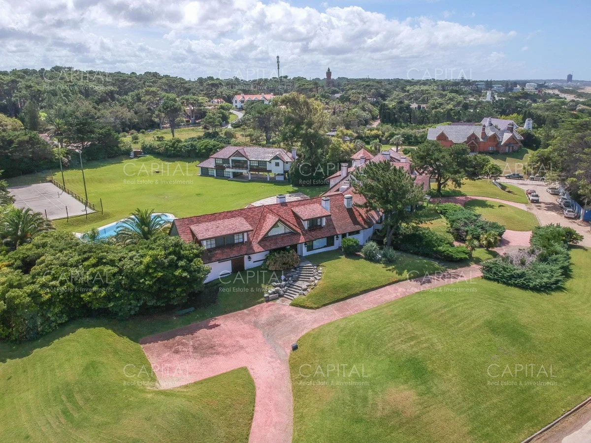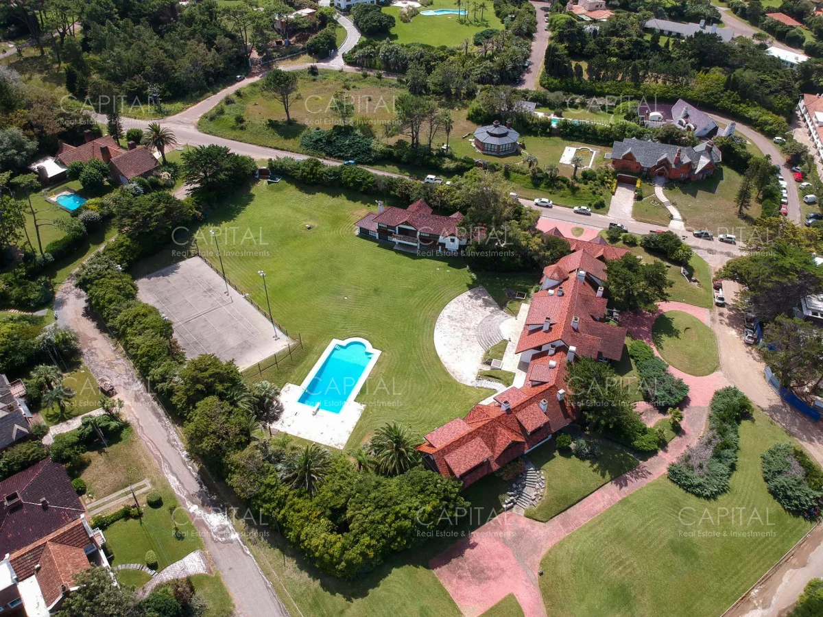 La Casa Principal de 1304m2 construidos sobre un lote de 8.723 m2, con tres plantas, cuenta con once dormitorios, nueve de ellos en suite y diez baños.