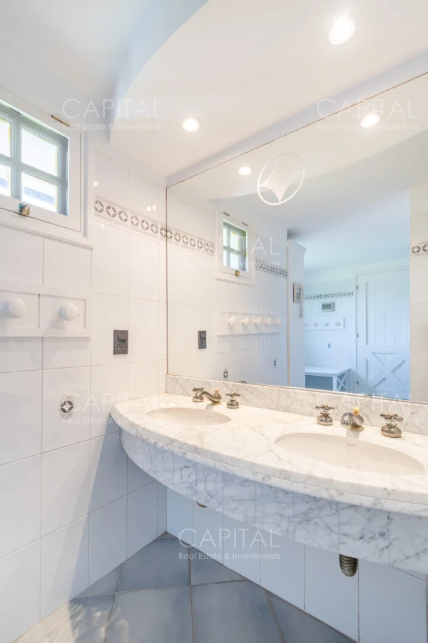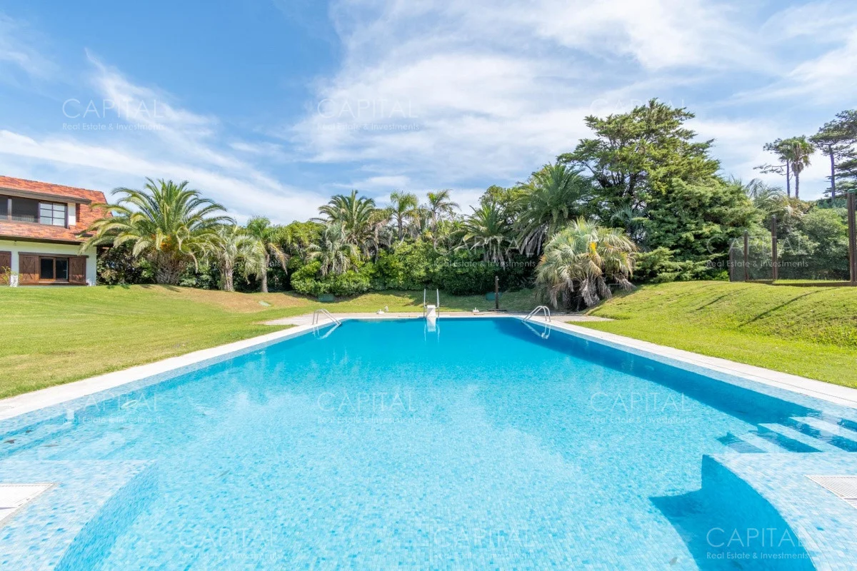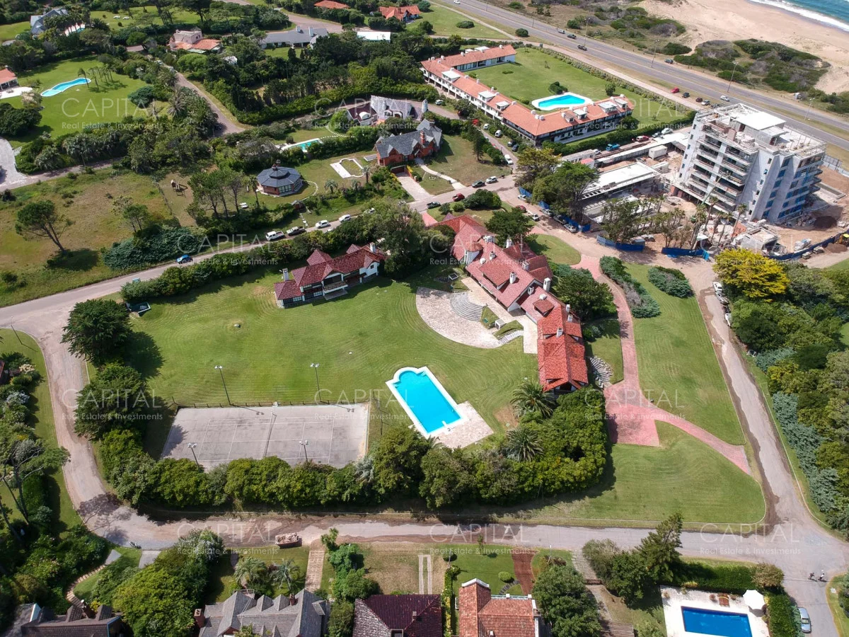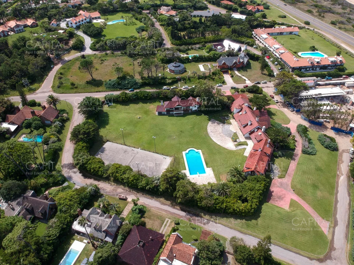 La Casa Principal de 1304m2 construidos sobre un lote de 8.723 m2, con tres plantas, cuenta con once dormitorios, nueve de ellos en suite y diez baños.