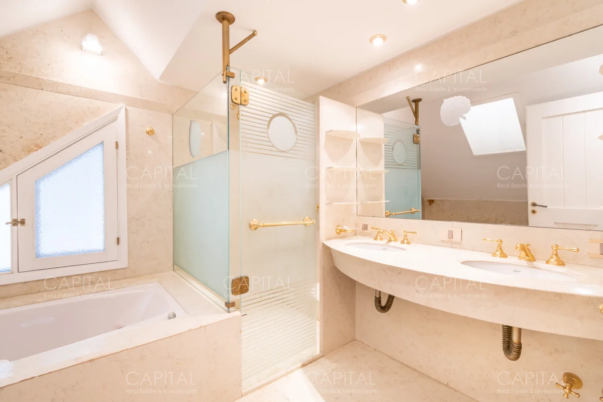 La casa cuenta con sistema de sonido, central telefónica, aires acondicionados y losa radiante, agua caliente a gas.